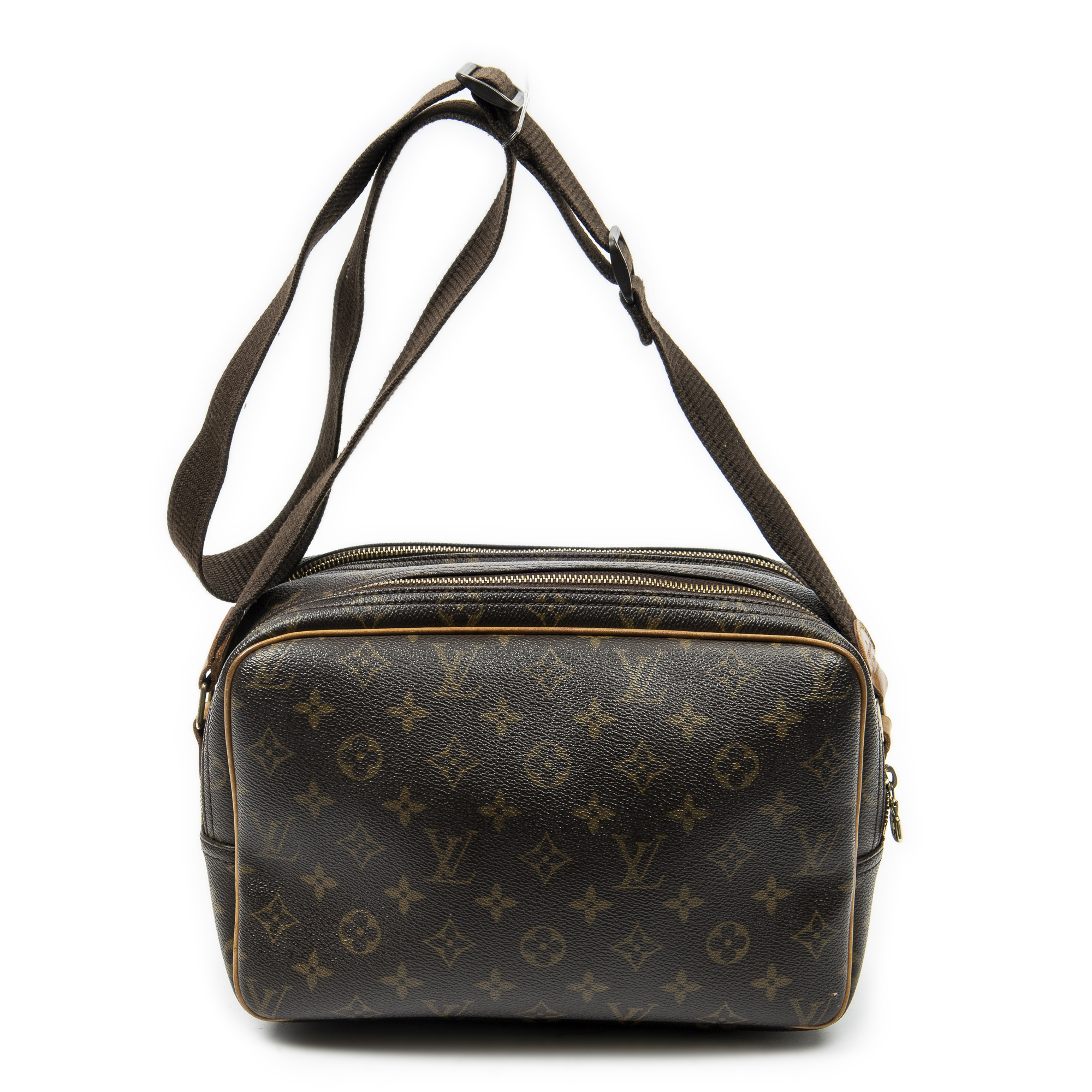 Louis Vuitton Shoulder Bag Reporter PM in Brown Monogram Canvas and Golden Brass hardware. The product is in Very Good Condition (AB).