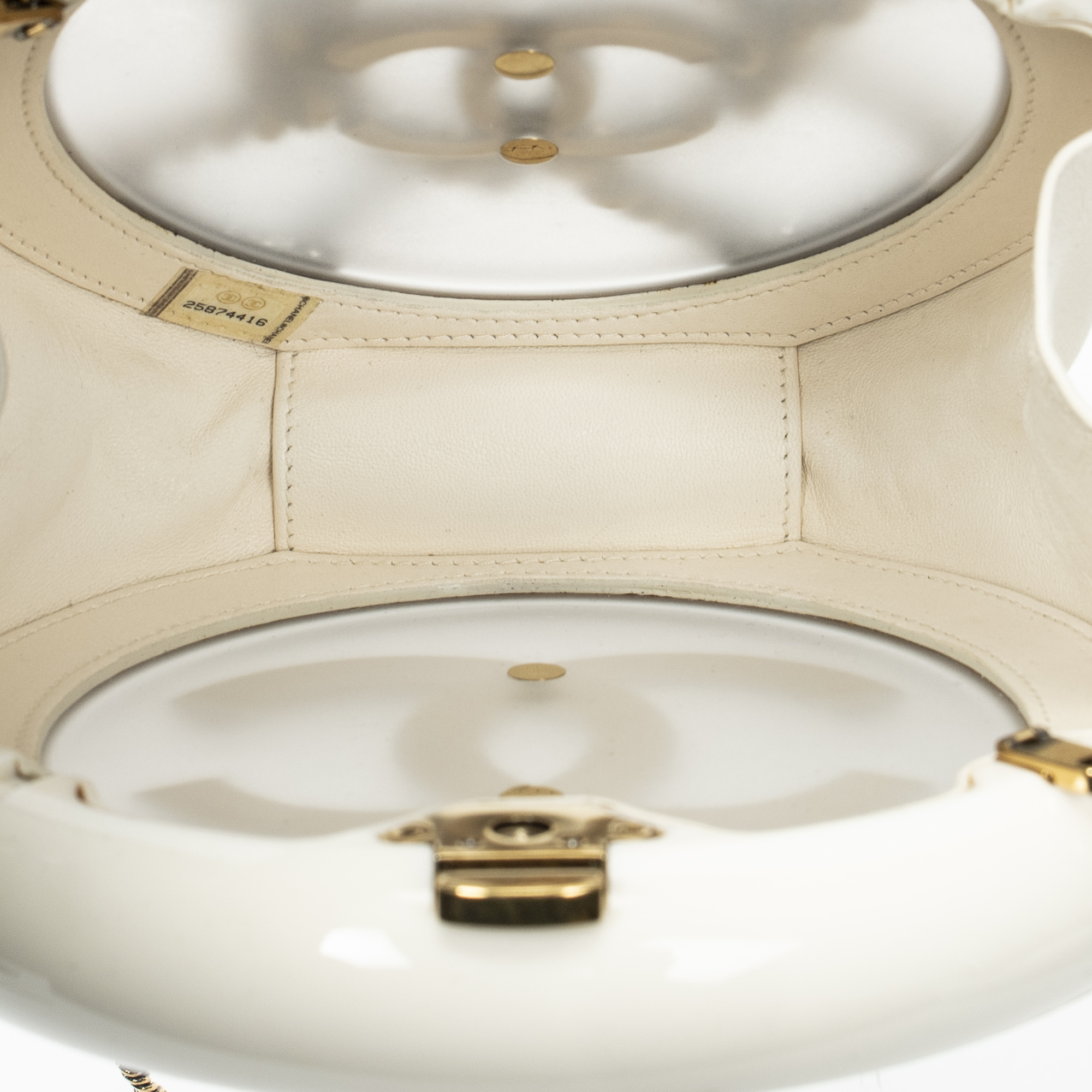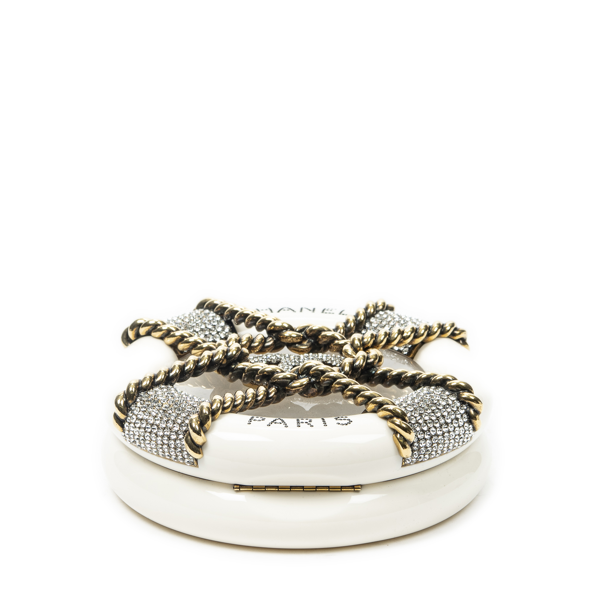 Description : Chanel Shoulder Bag Rescue Wheel Minaudière Bag in White/Gold Resin Canvas and Gold hardware. The product is in Excellent Condition (A). Dimensions: 17x17x6 cm SKU: ABC1692 Serial number: 25874416 (2018) Accessories Included: Sticker; card; dustbag Delivery: We have a 5 to 7 business days delivery policy, hassle-free and duties/tariffs included! BrandCo Paris finds rare and top condition items at great deals, they are worth your patience! Shop with confidence - All BrandCo Paris items are carefully selected and authenticated by our team of experts. All the items come with an authenticity certificate and packaging delivered by BrandCo Paris. Item Condition Grading Table N (Like New) AA (Perfect Condition) A (Excellent Condition) AB (Very Good Condition) B (Good/Fair)