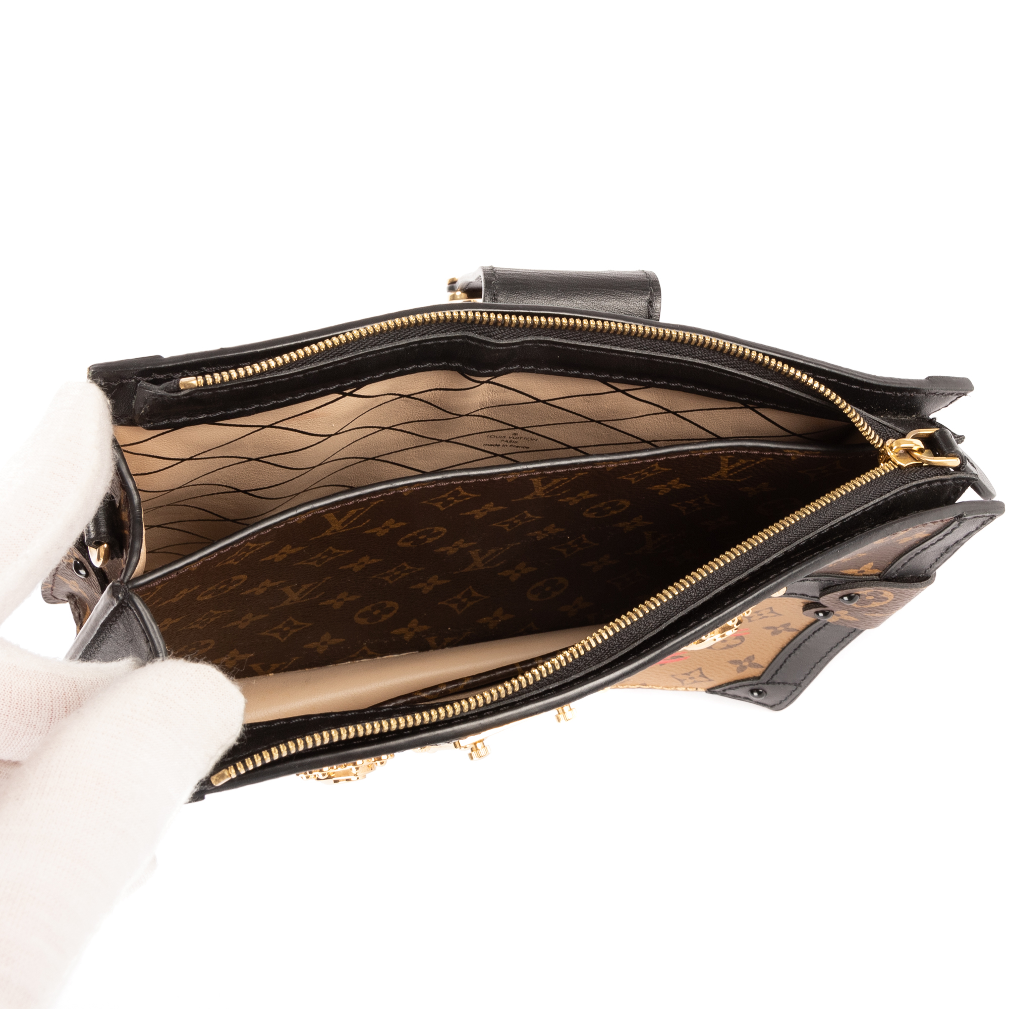 Louis Vuitton Shoulder Bag Reverse Trunk Clutch in Brown Monogram Canvas and Golden Brass hardware. The product is in Excellent Condition (A).