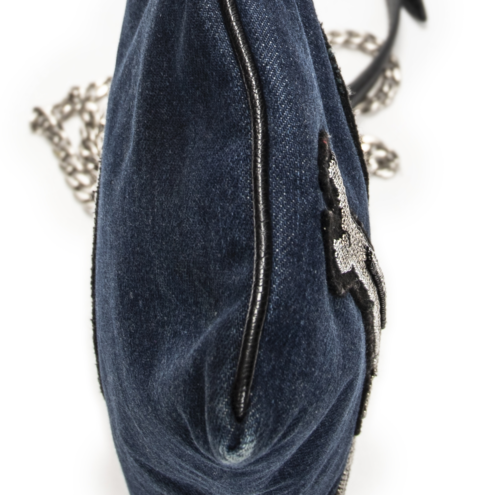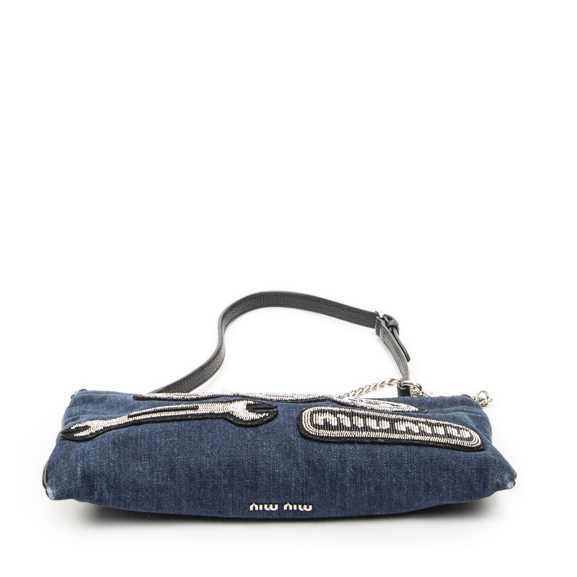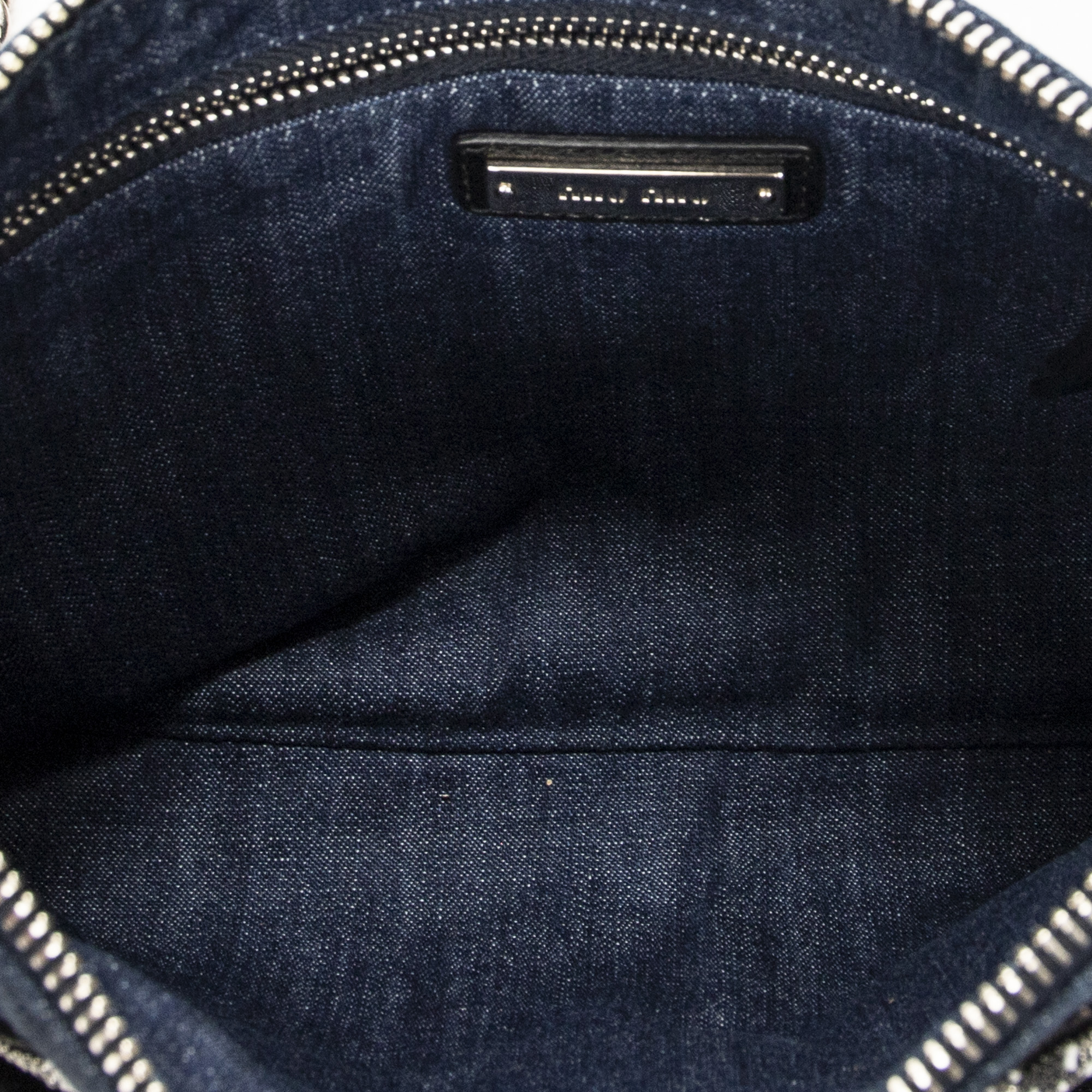 Miu Miu Shoulder Bag Rock Chain Pochette Bag in Blue Denim Denim Pop Canvas and Silver hardware. The product is in Excellent Condition (A).