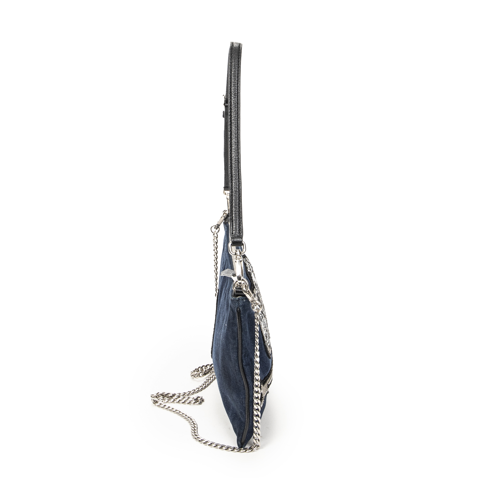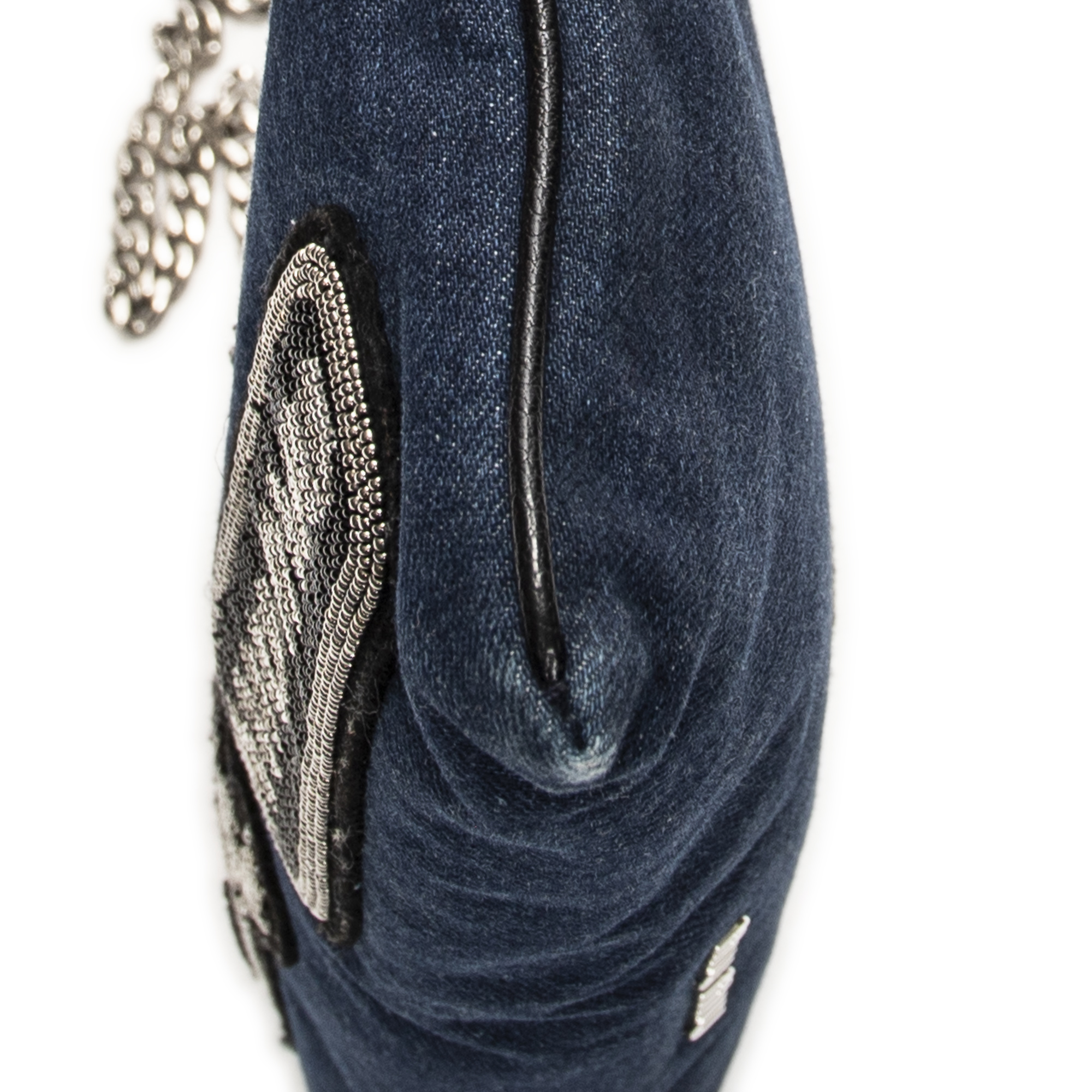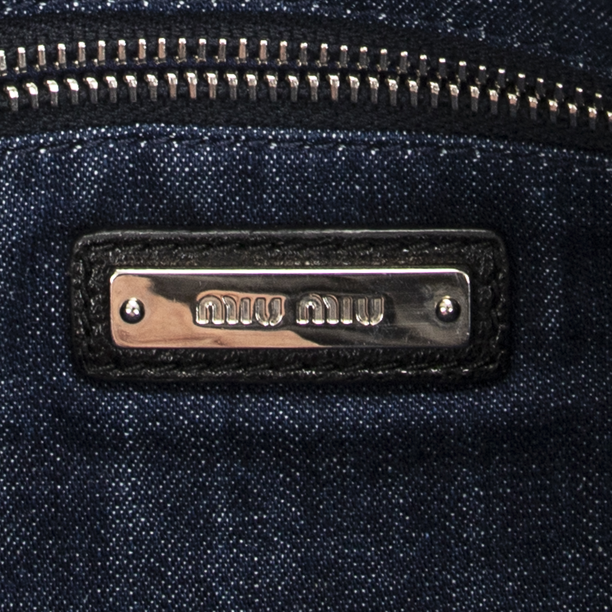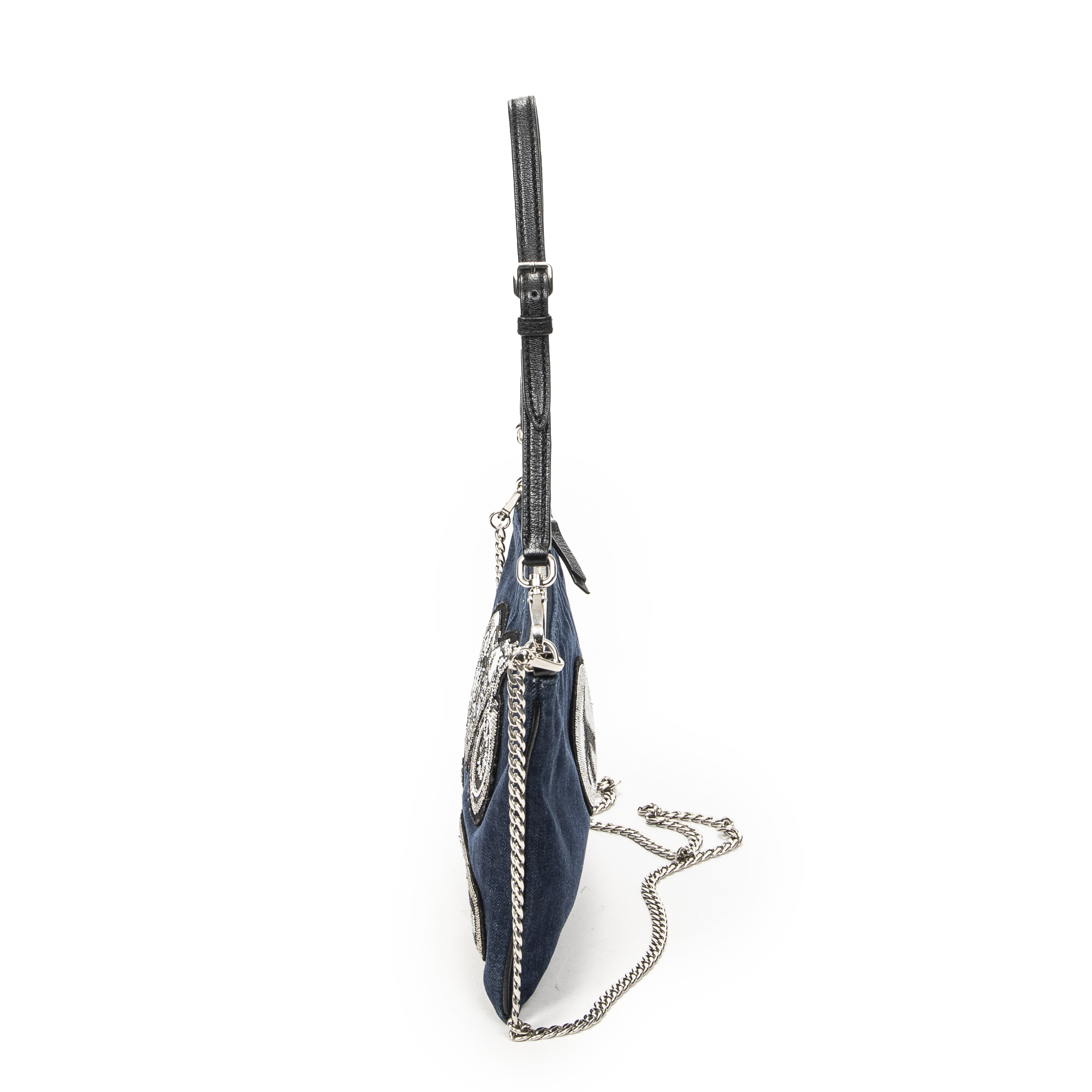 Miu Miu Shoulder Bag Rock Chain Pochette Bag in Blue Denim Denim Pop Canvas and Silver hardware. The product is in Excellent Condition (A).