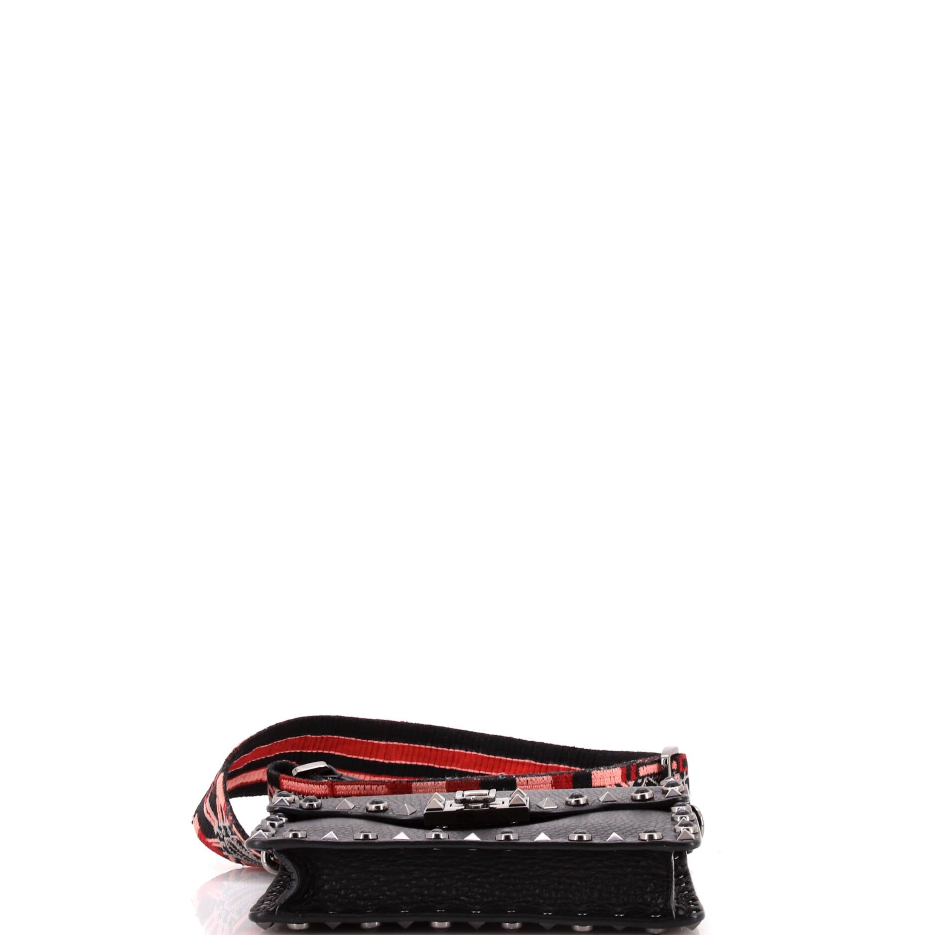 Valentino Shoulder Bag Rockstud Flip Lock Flap Small in Black Grained Calfskin Leather and Silver hardware. The product is in Excellent Condition (A).