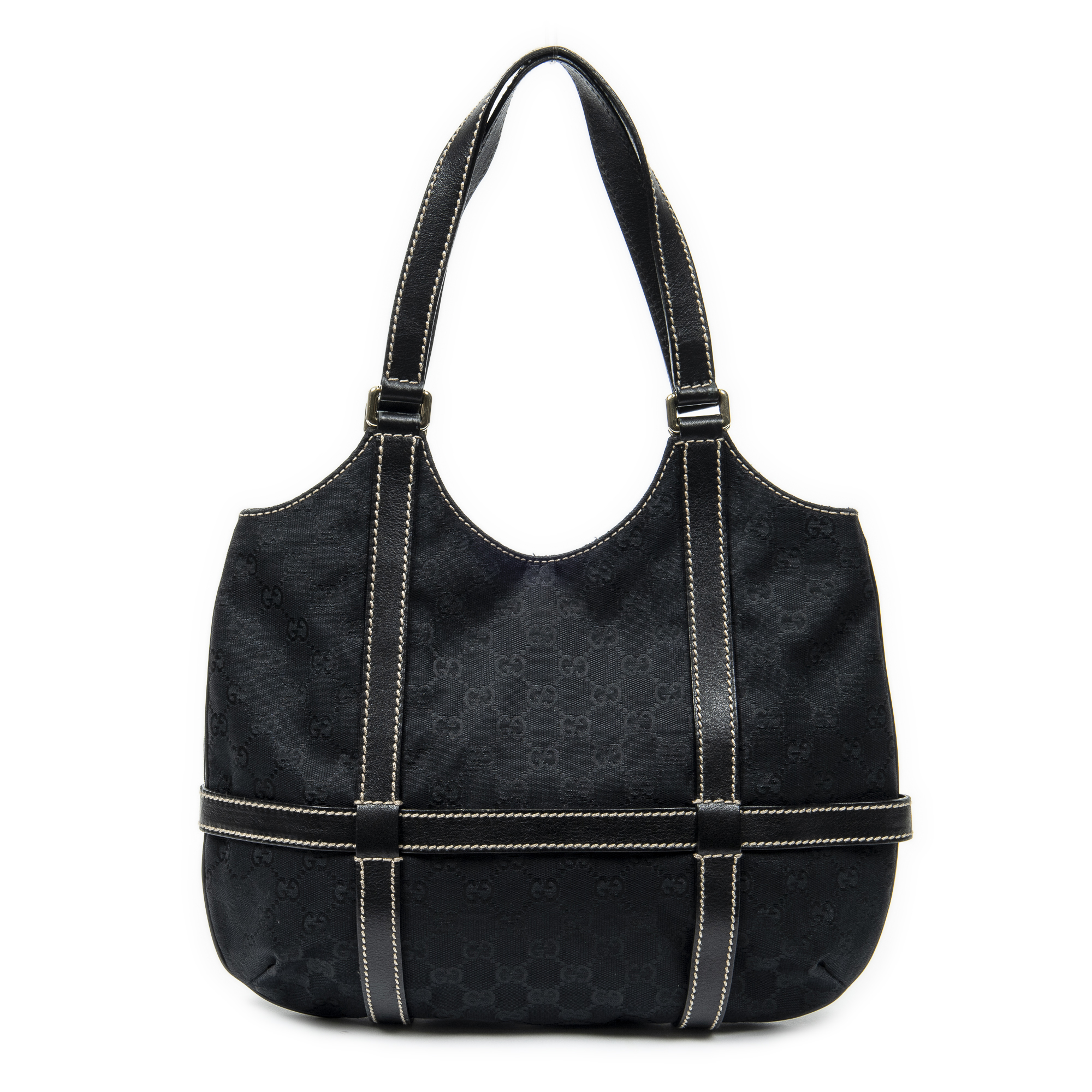 Gucci Shoulder Bag Royal Hobo in Black Monogrammed Canvas and Gold hardware. The product is in Excellent Condition (A).