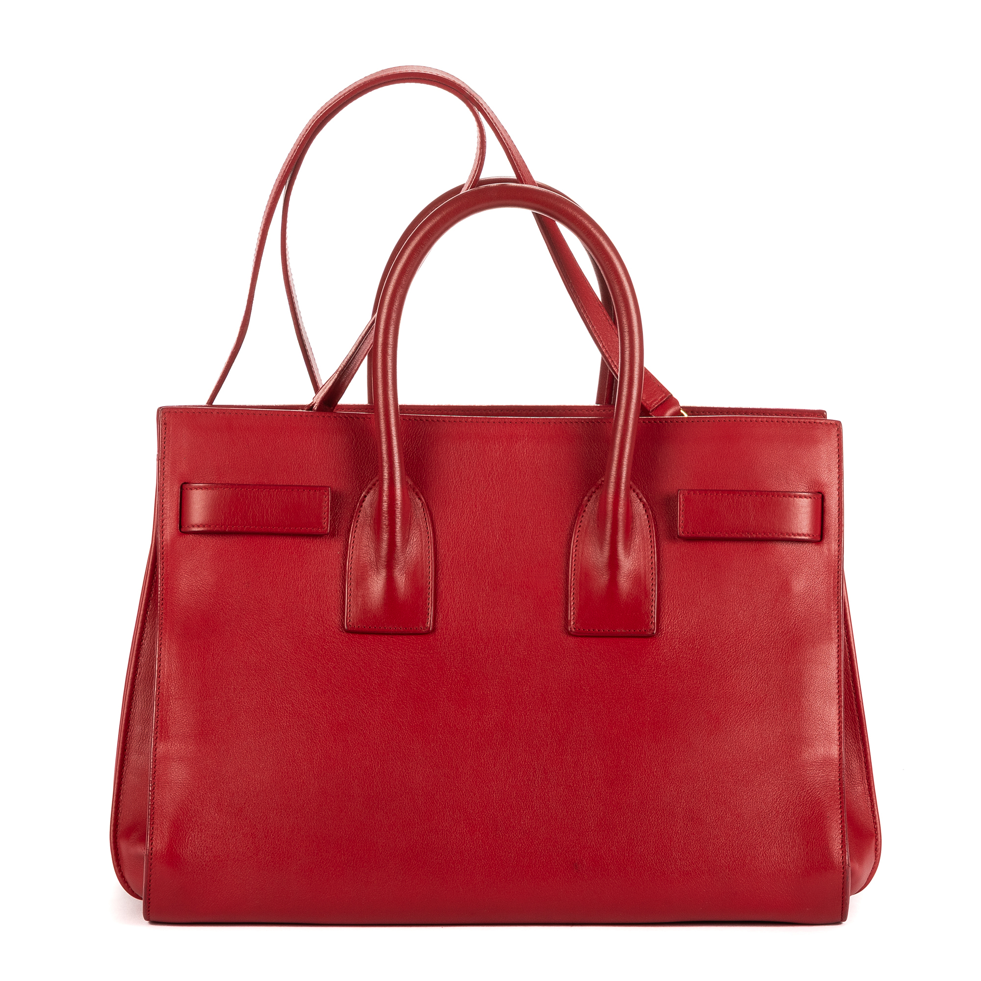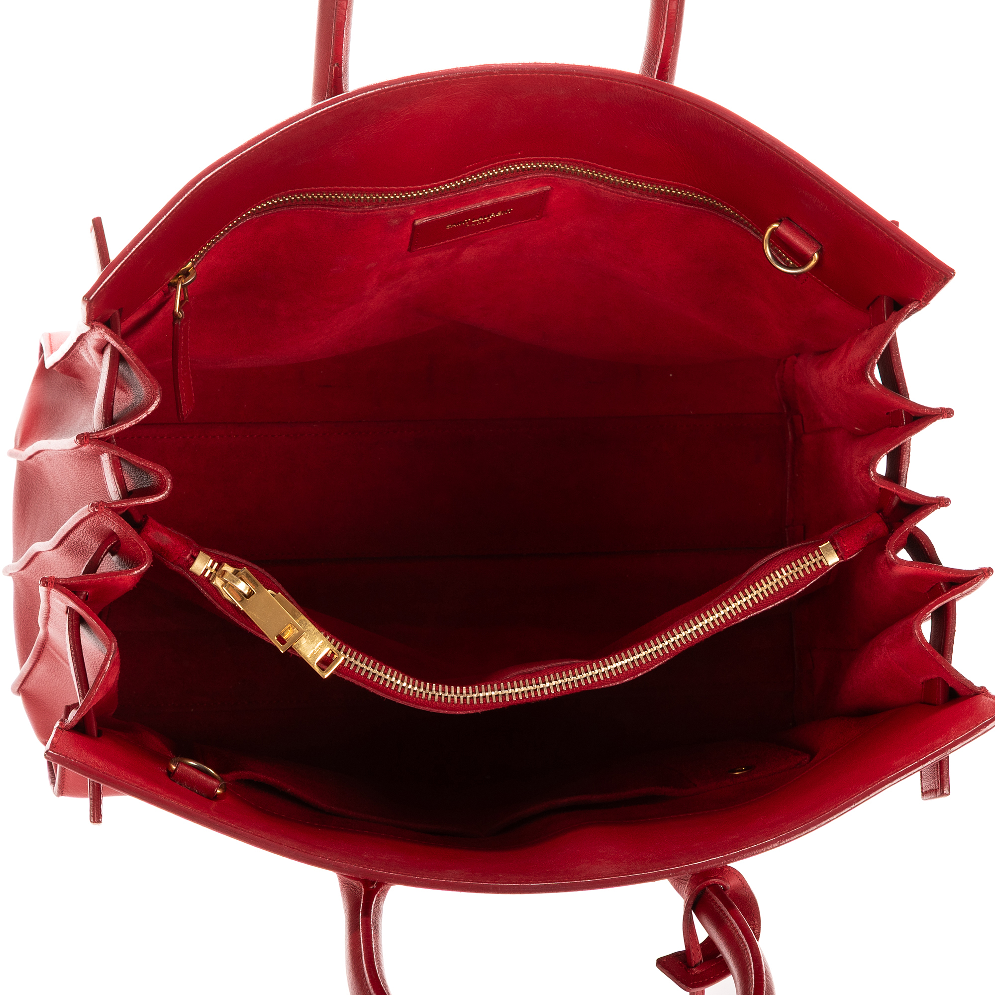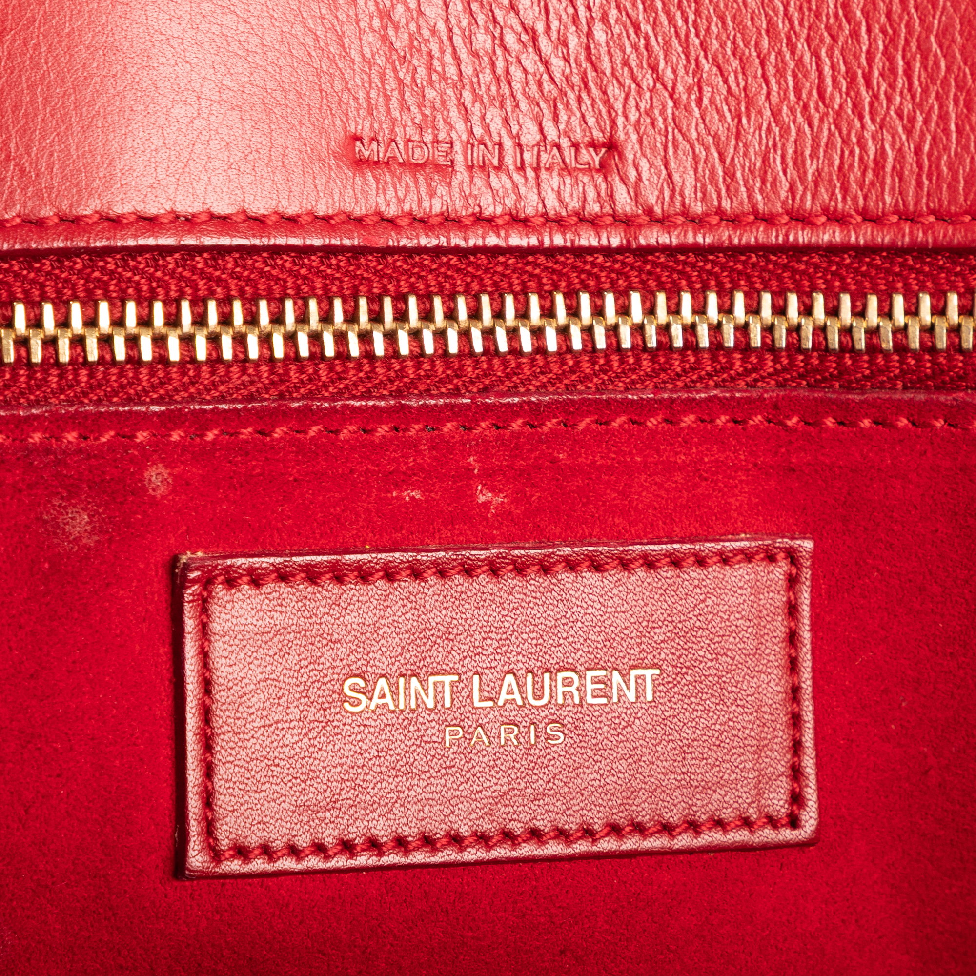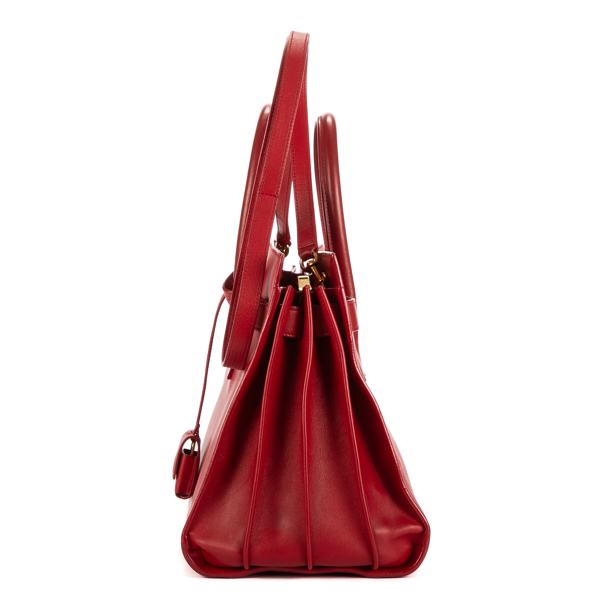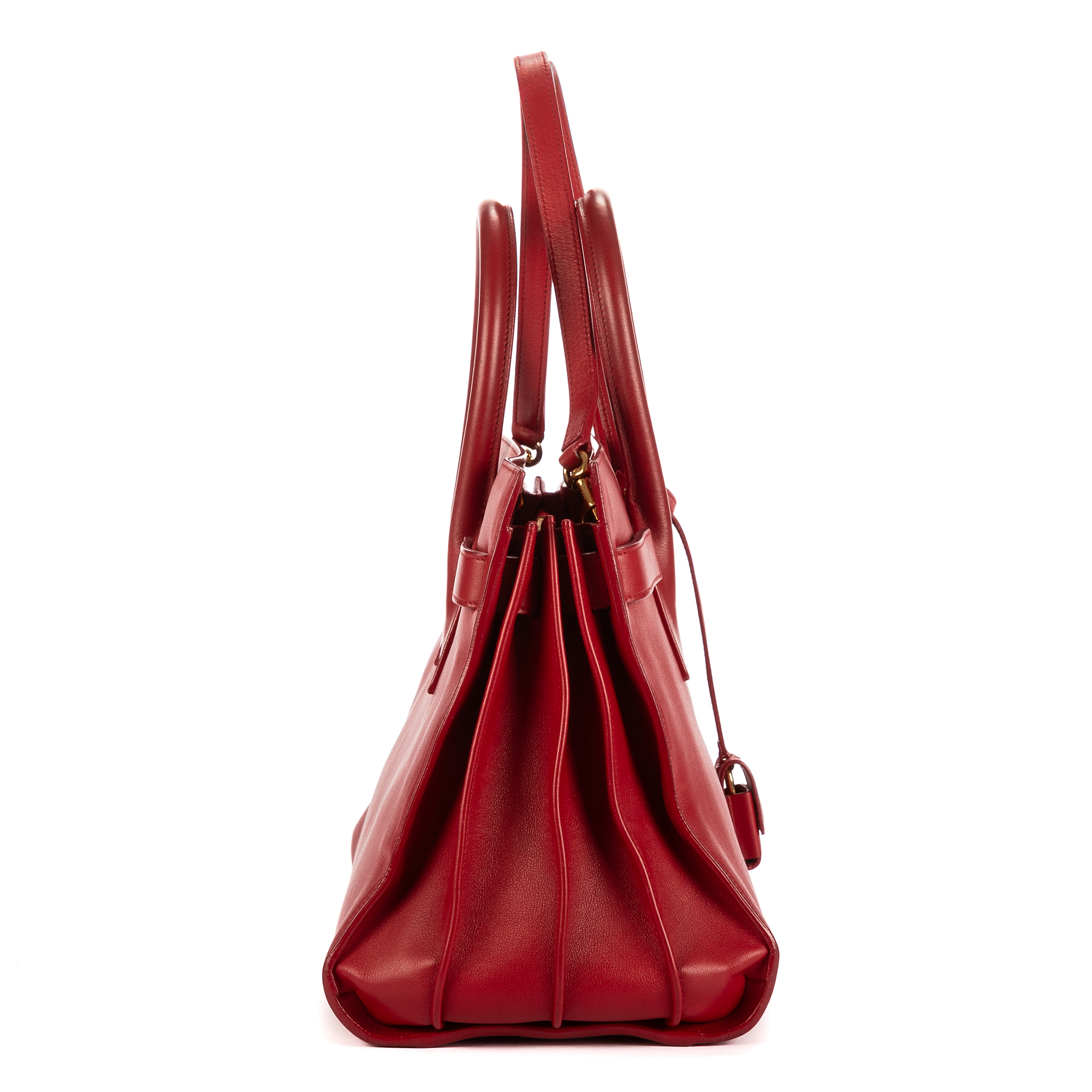 Yves Saint Laurent Shoulder Bag Sac De Jour Nano in Red Pebbled Leather and Gold hardware. The product is in Excellent Condition (A).