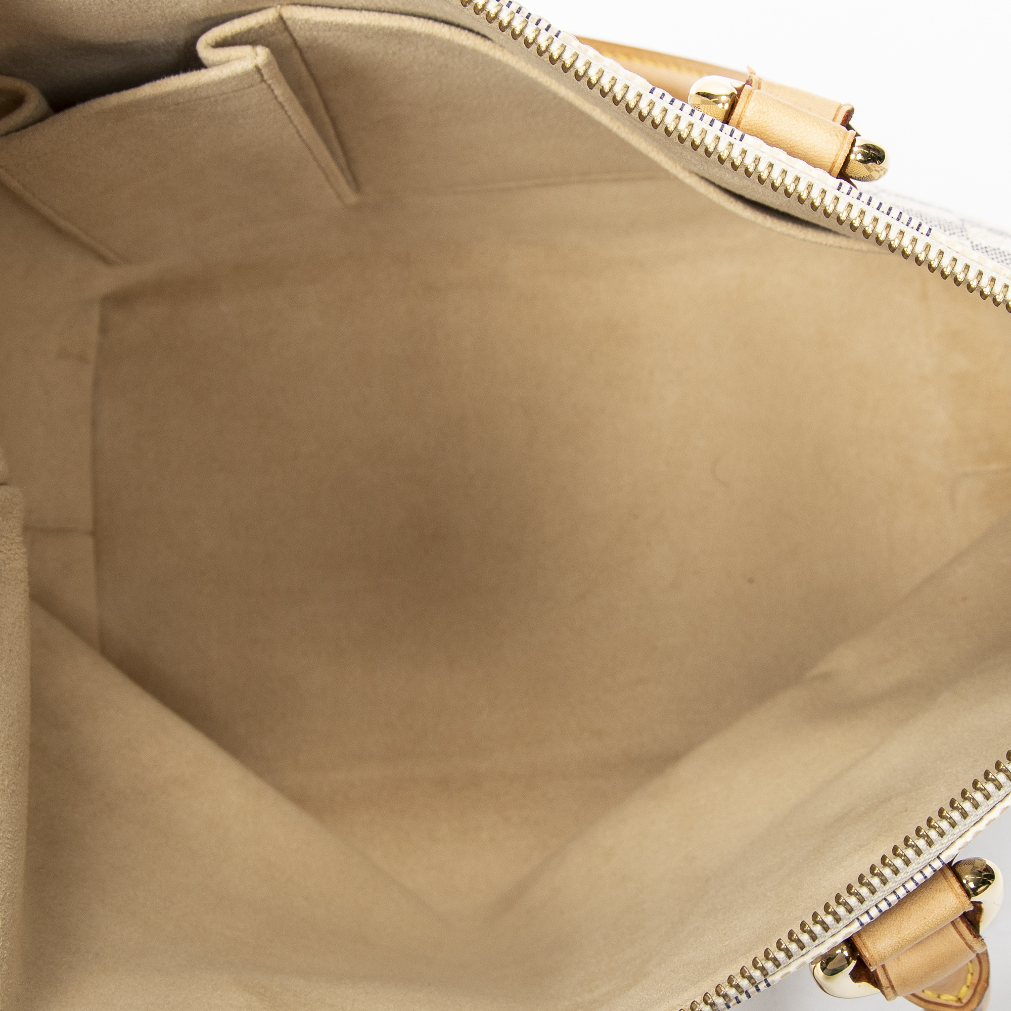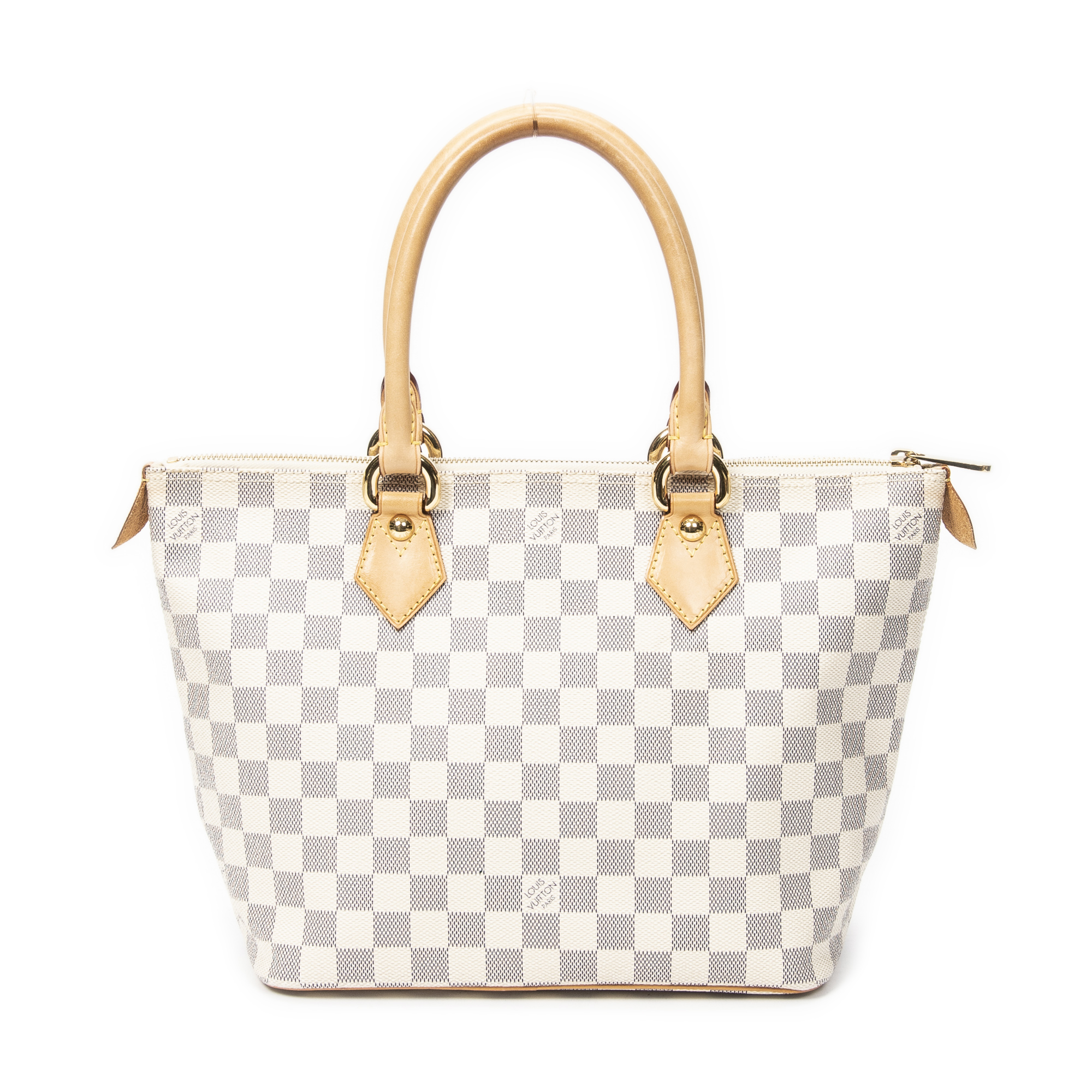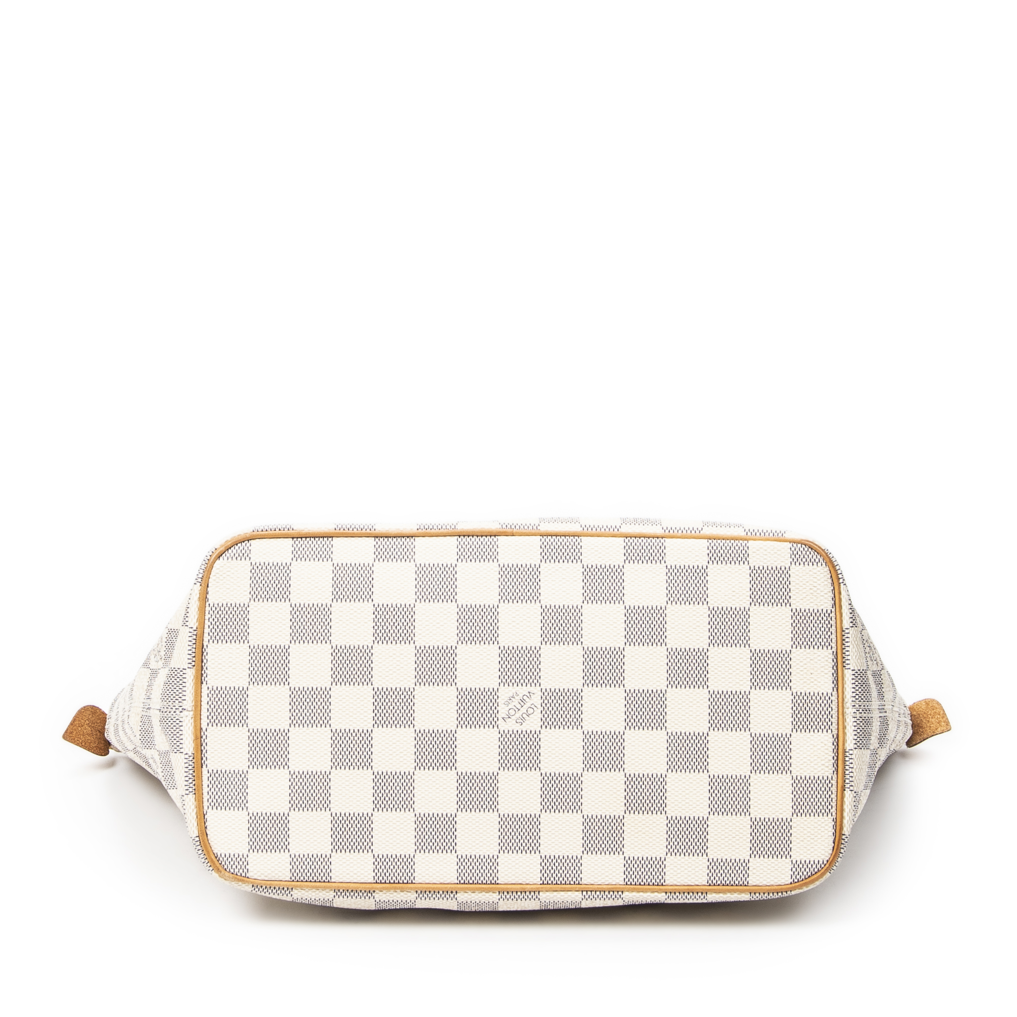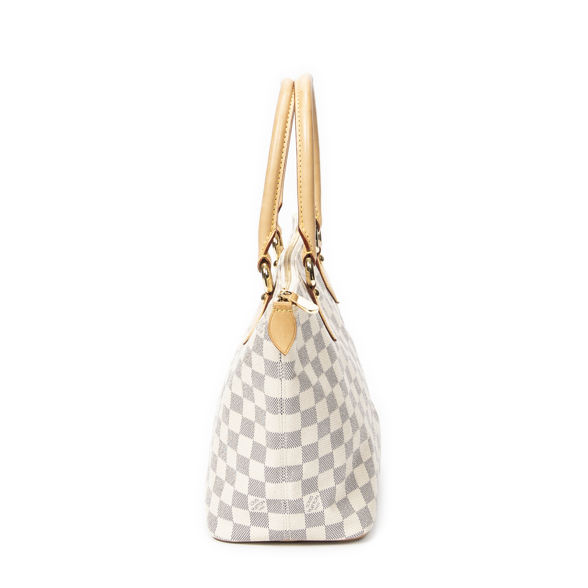Louis Vuitton Shoulder Bag Saleya PM in Ivory Damier Azur and Golden Brass hardware. The product is in Very Good Condition (AB).