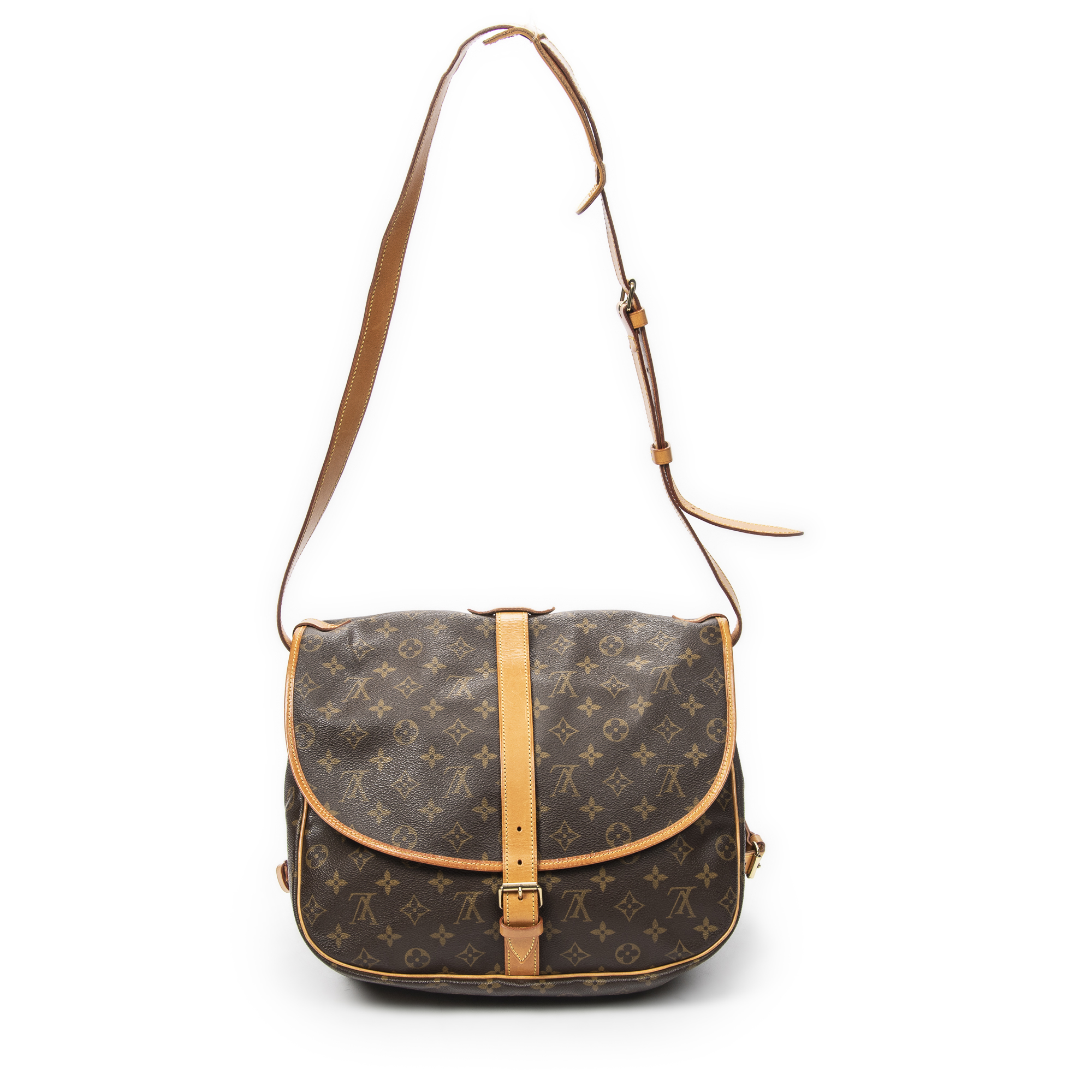 Louis Vuitton Shoulder Bag Saumur GM in Brown Monogram Canvas and Golden Brass hardware. The product is in Very Good Condition (AB).