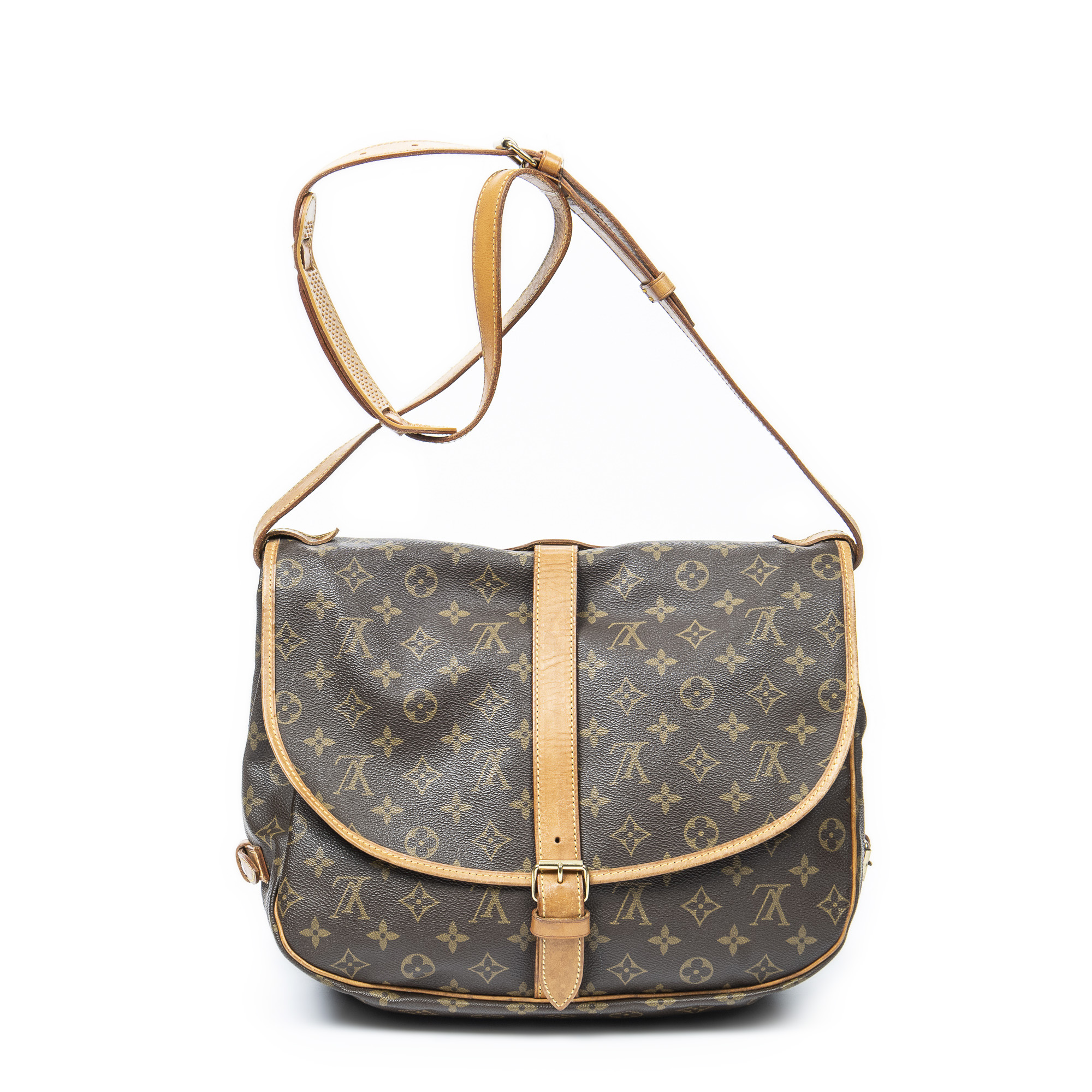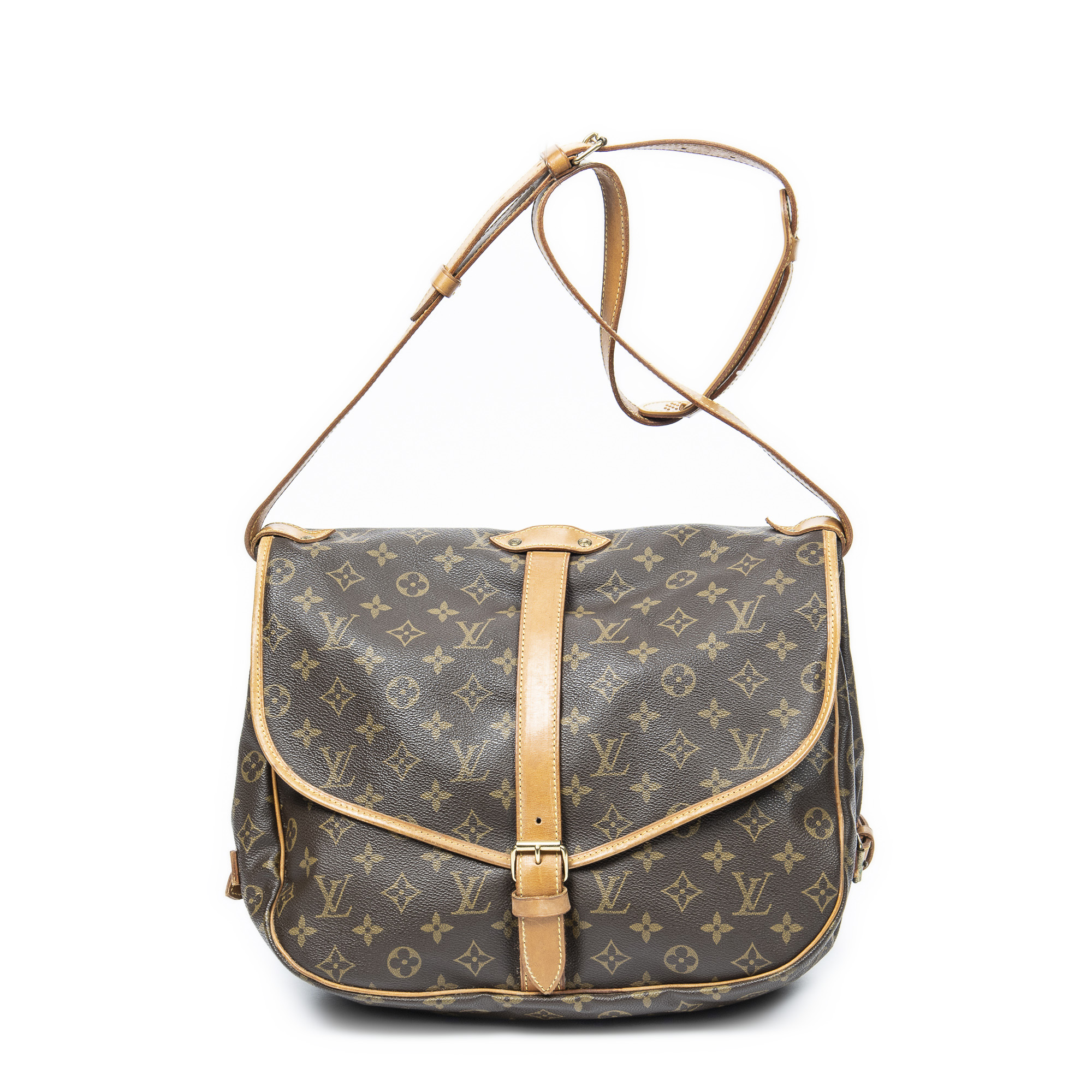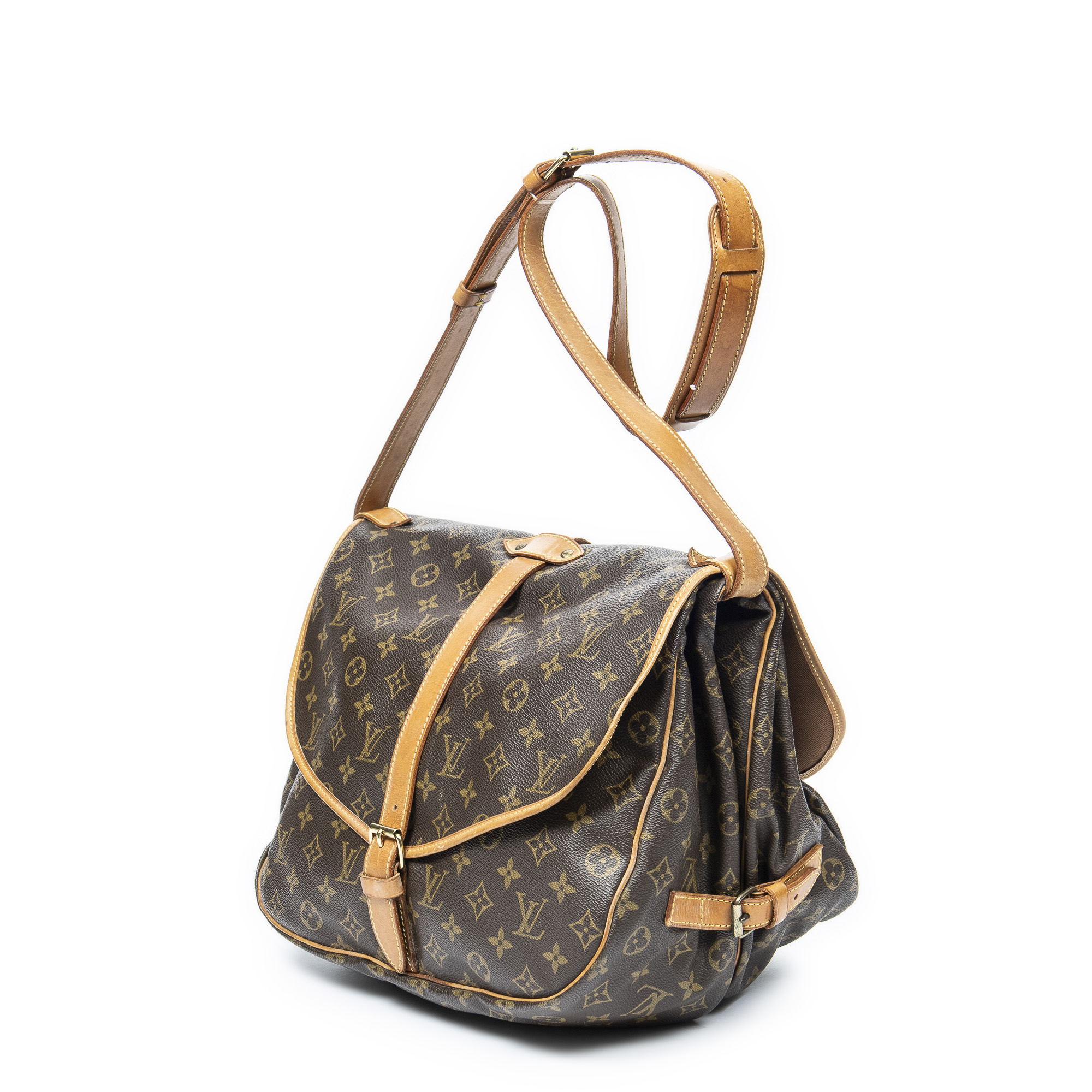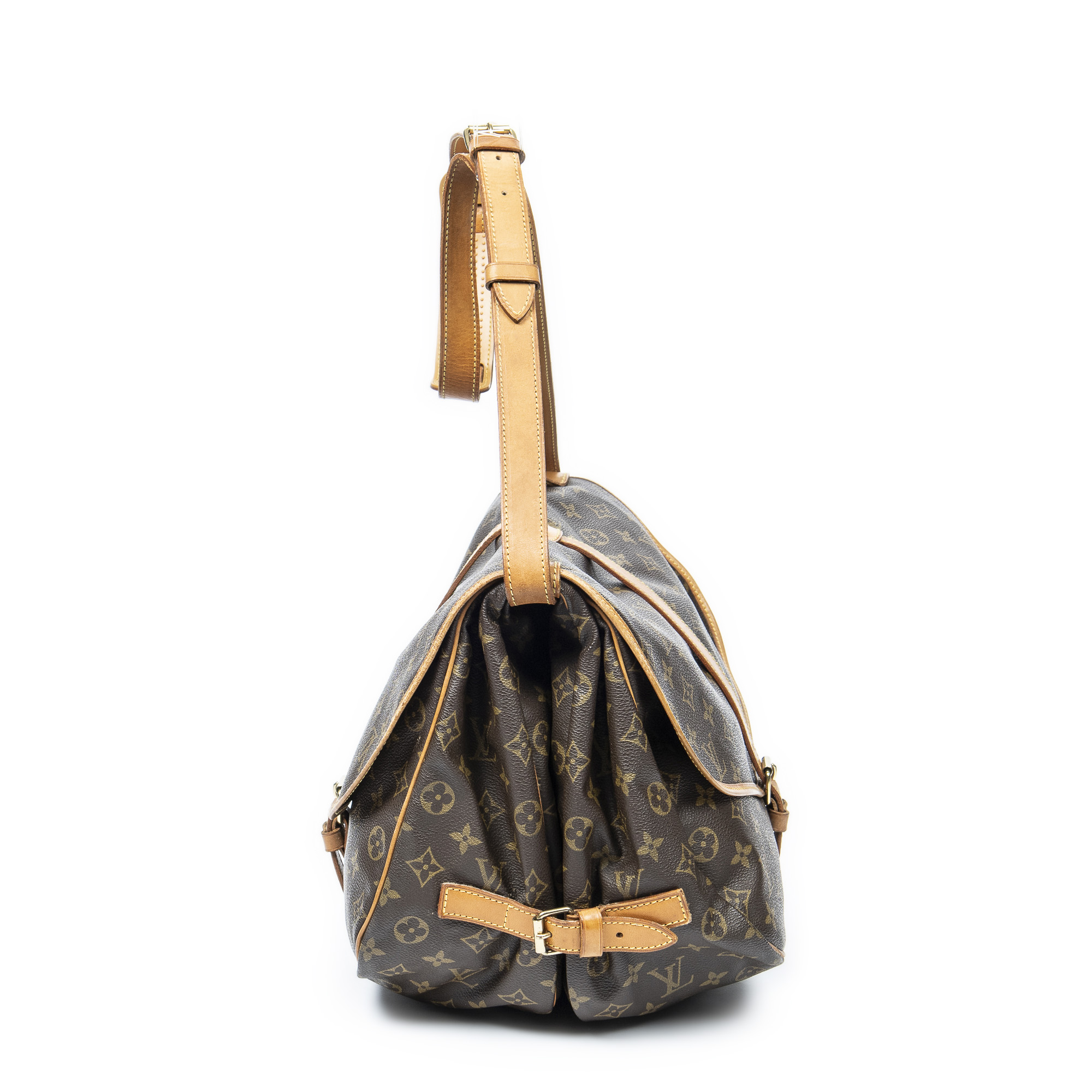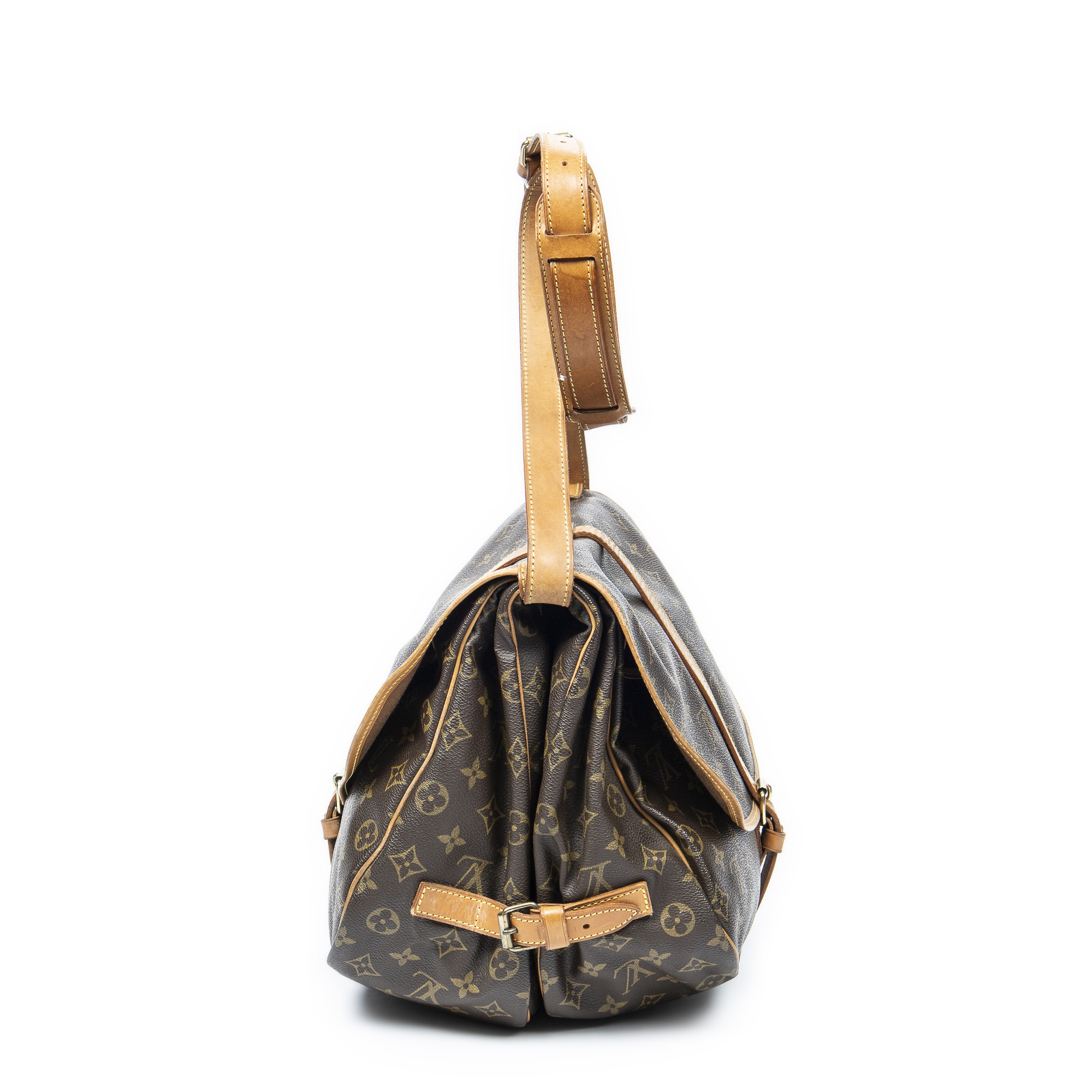 Louis Vuitton Shoulder Bag Saumur GM in Brown Monogram Canvas and Golden Brass hardware. The product is in Very Good Condition (AB).