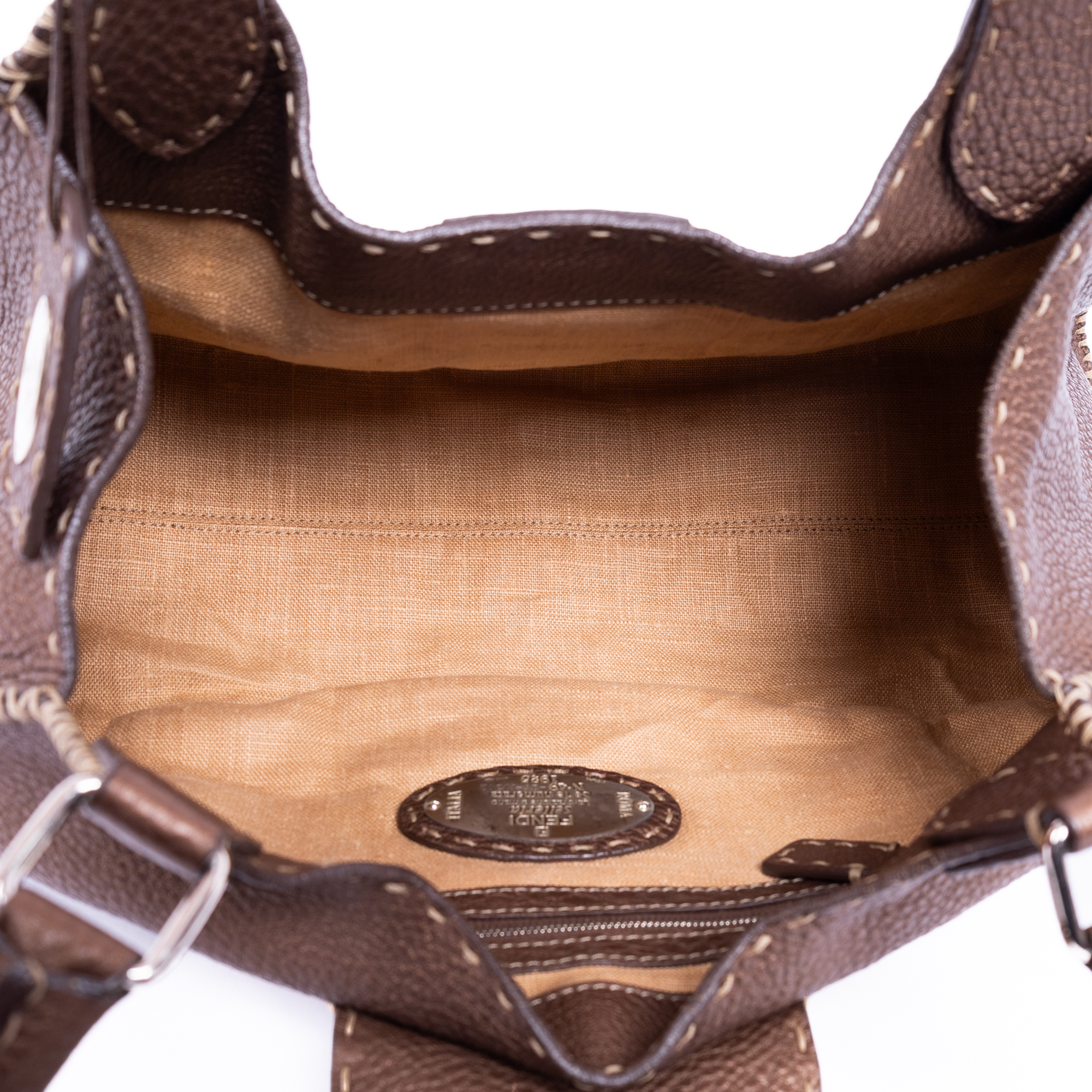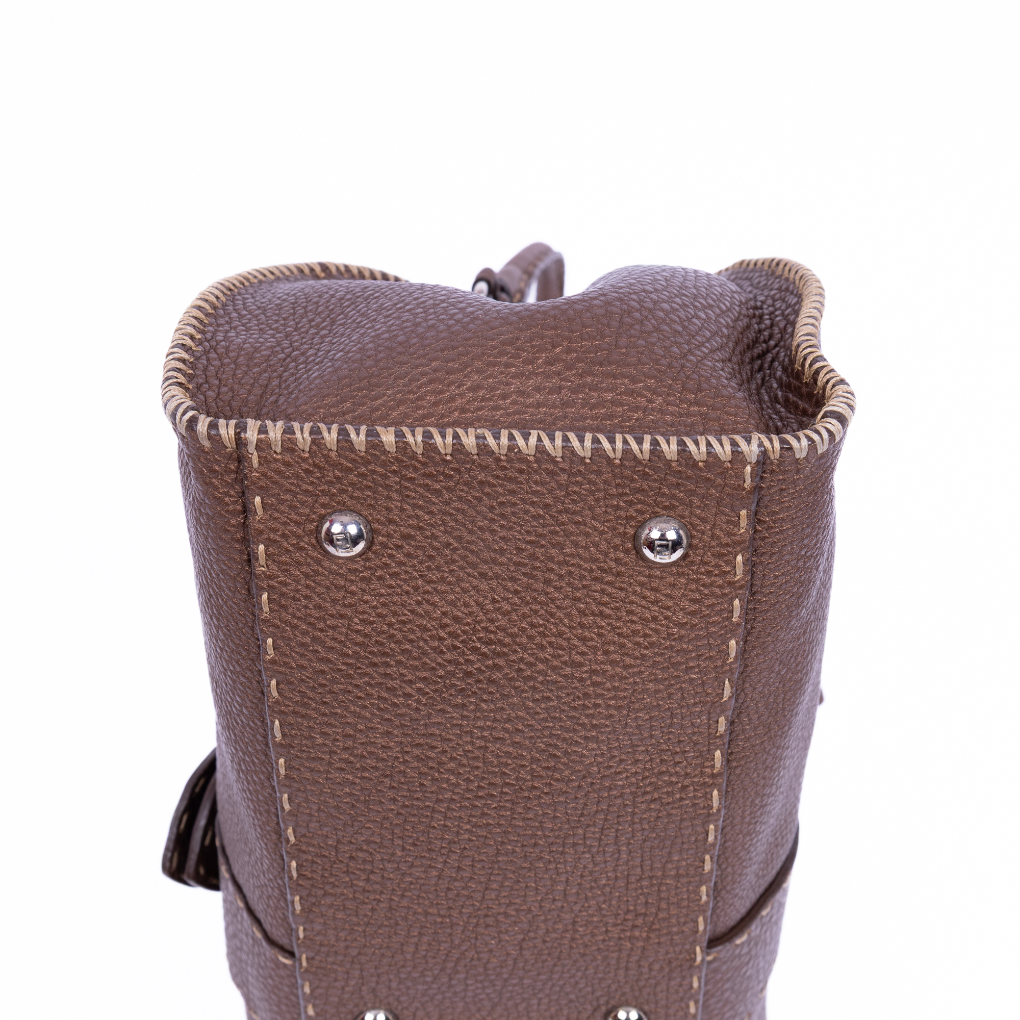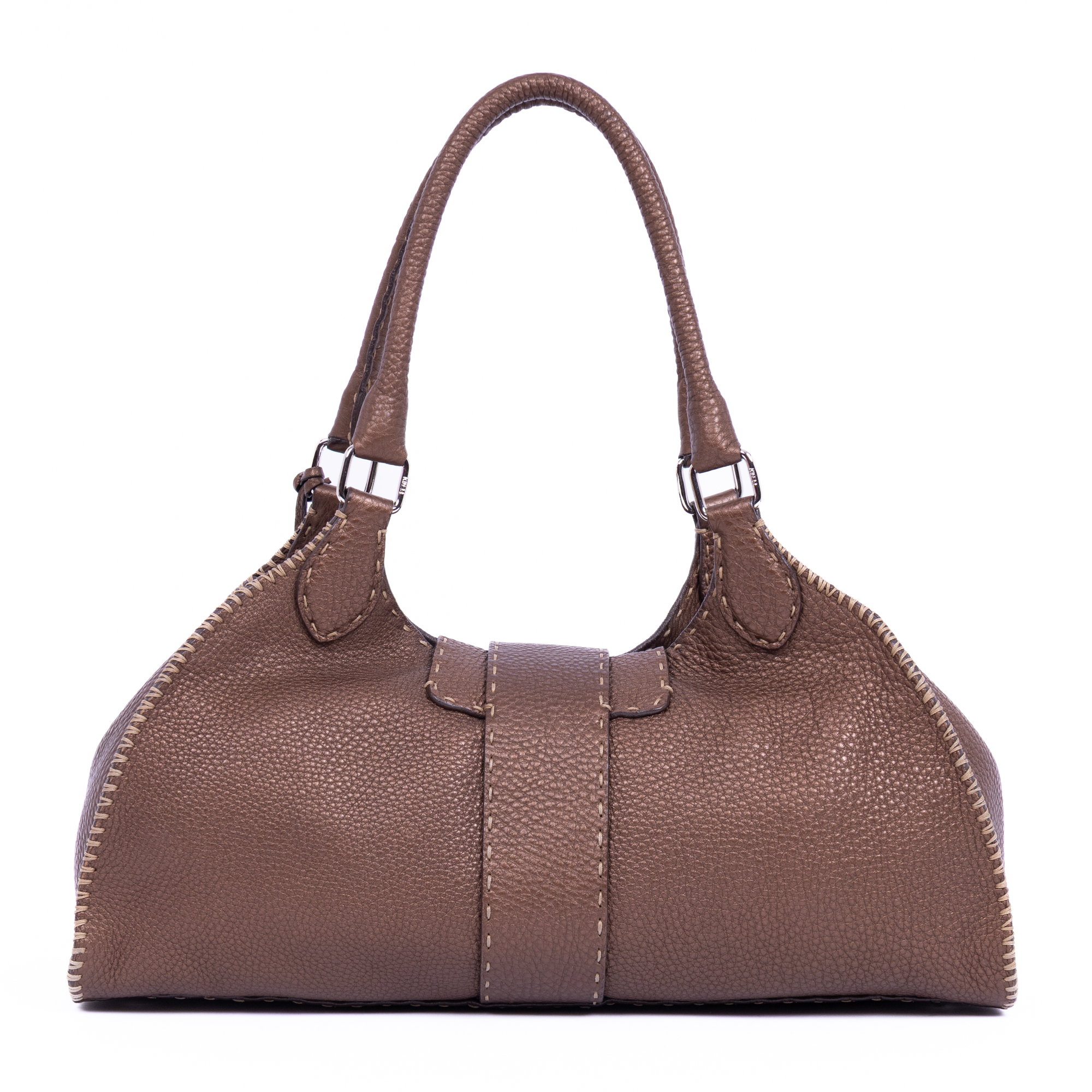 Fendi Shoulder Bag Selleria Sporty in Brown Selleria Grain Calfskin Leather and Silver hardware. The product is in Perfect Condition (AA).