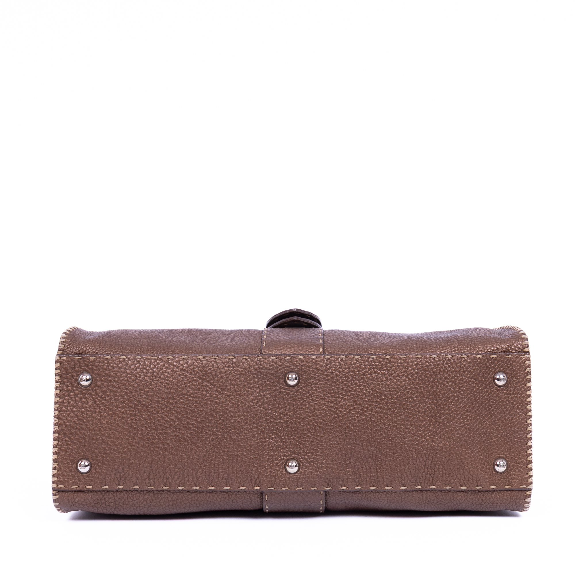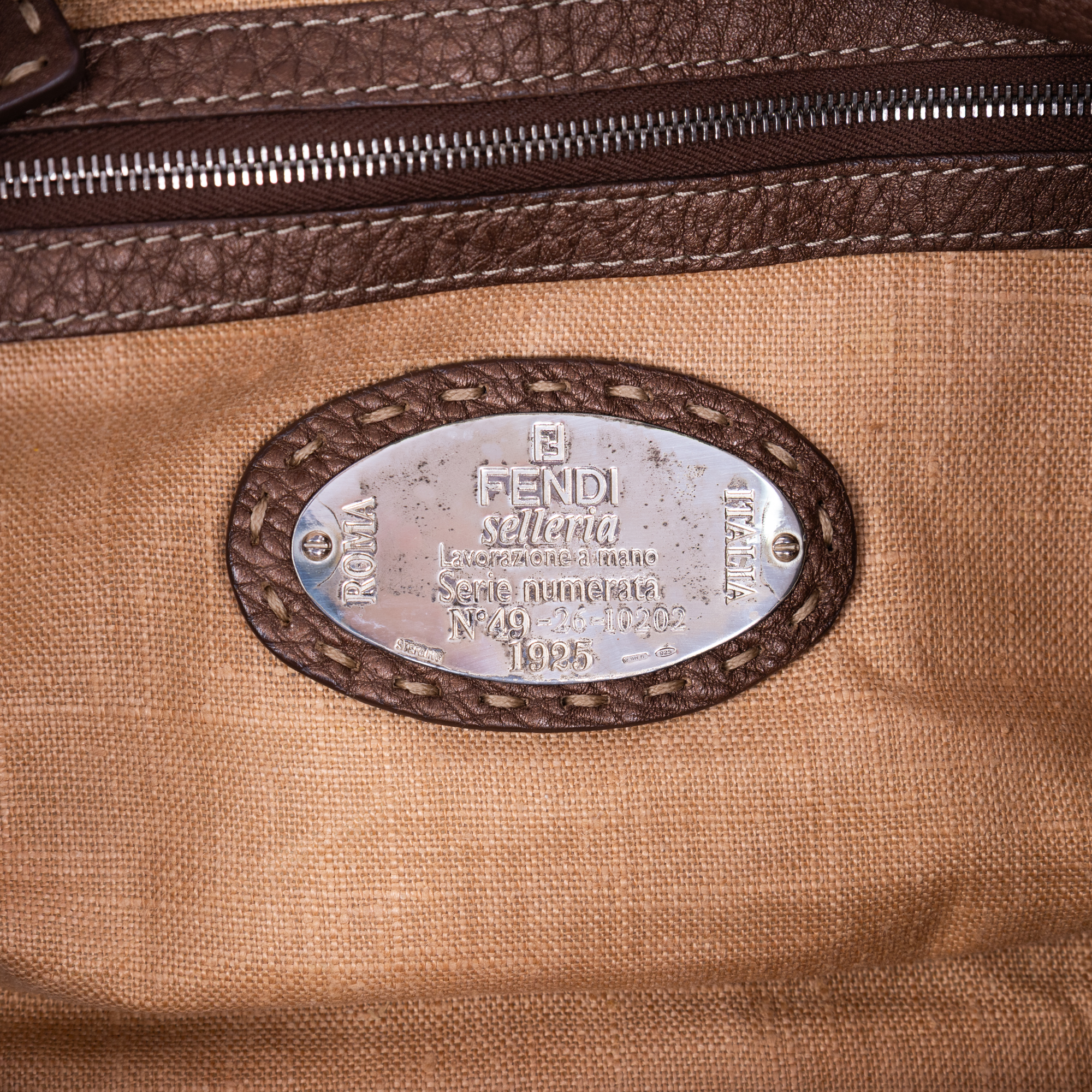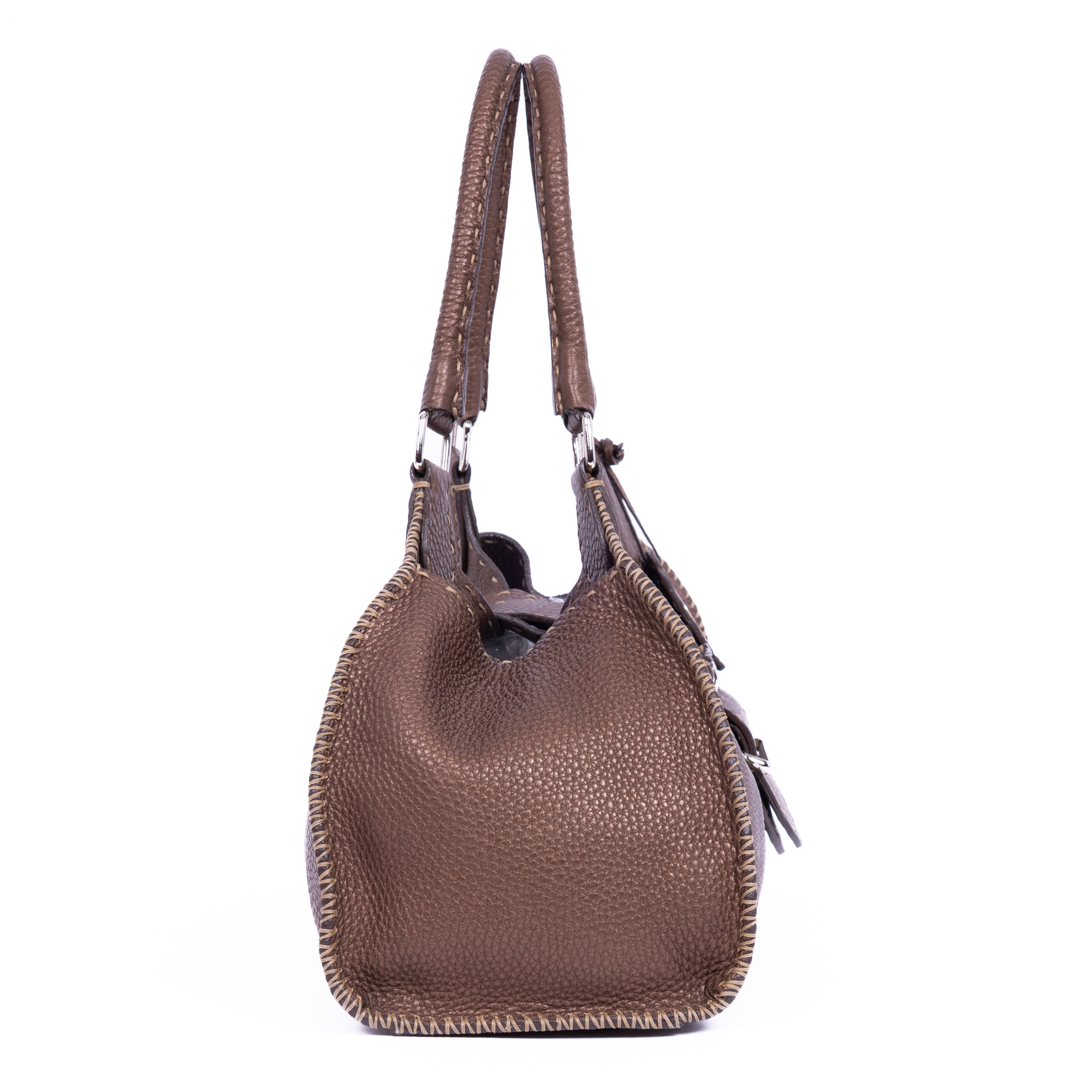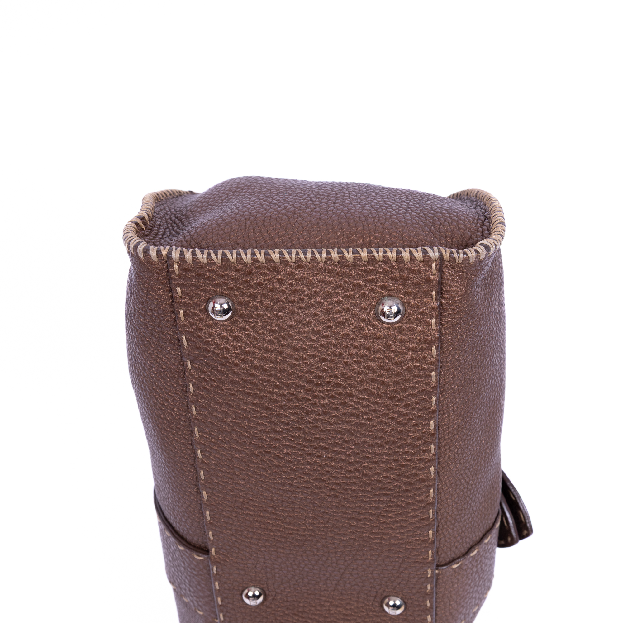 Fendi Shoulder Bag Selleria Sporty in Brown Selleria Grain Calfskin Leather and Silver hardware. The product is in Perfect Condition (AA).