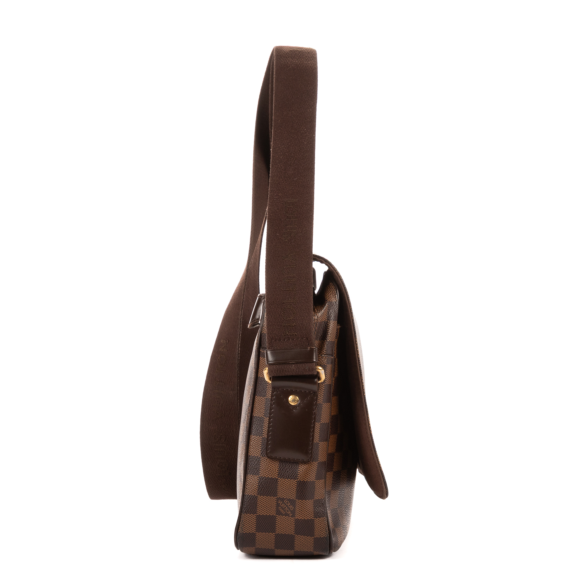 Louis Vuitton Shoulder Bag Shelton MM in Dark Brown Damier Ebene and Golden Brass hardware. The product is in Perfect Condition (AA).