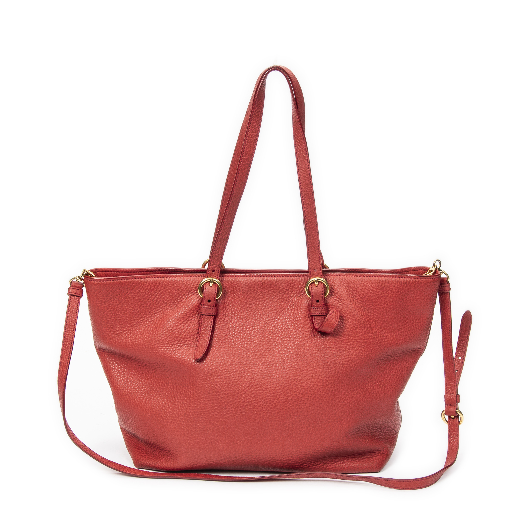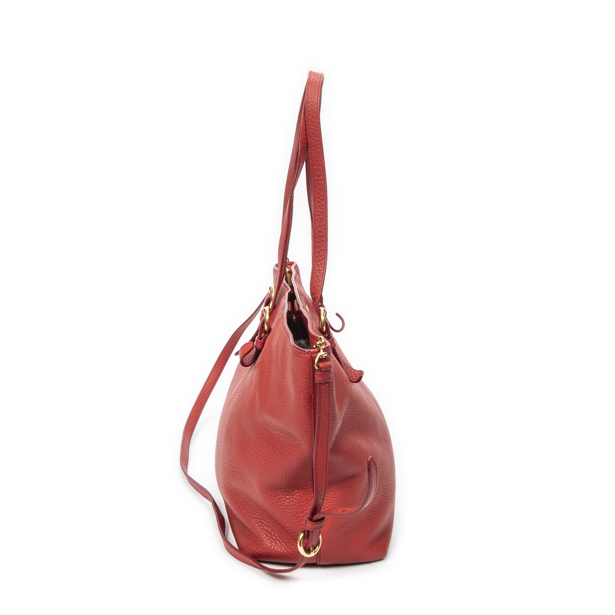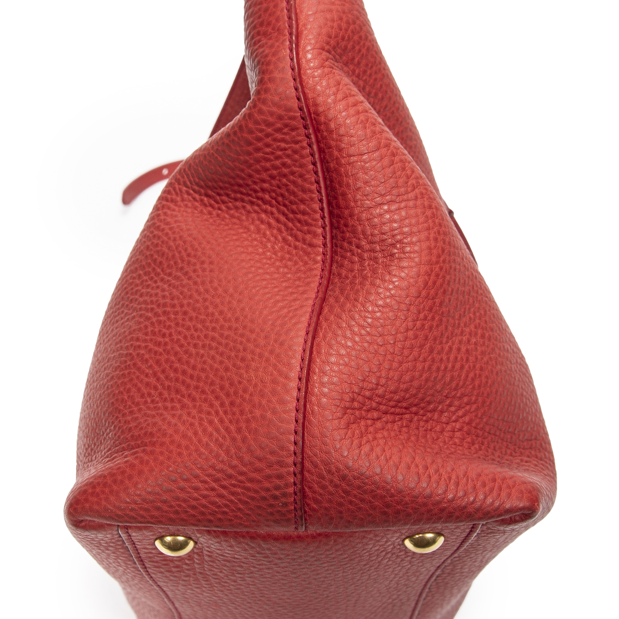 Miu Miu Shoulder Bag Shopping Tote in Red Vitello Caribu Leather and Gold hardware. The product is in Excellent Condition (A).