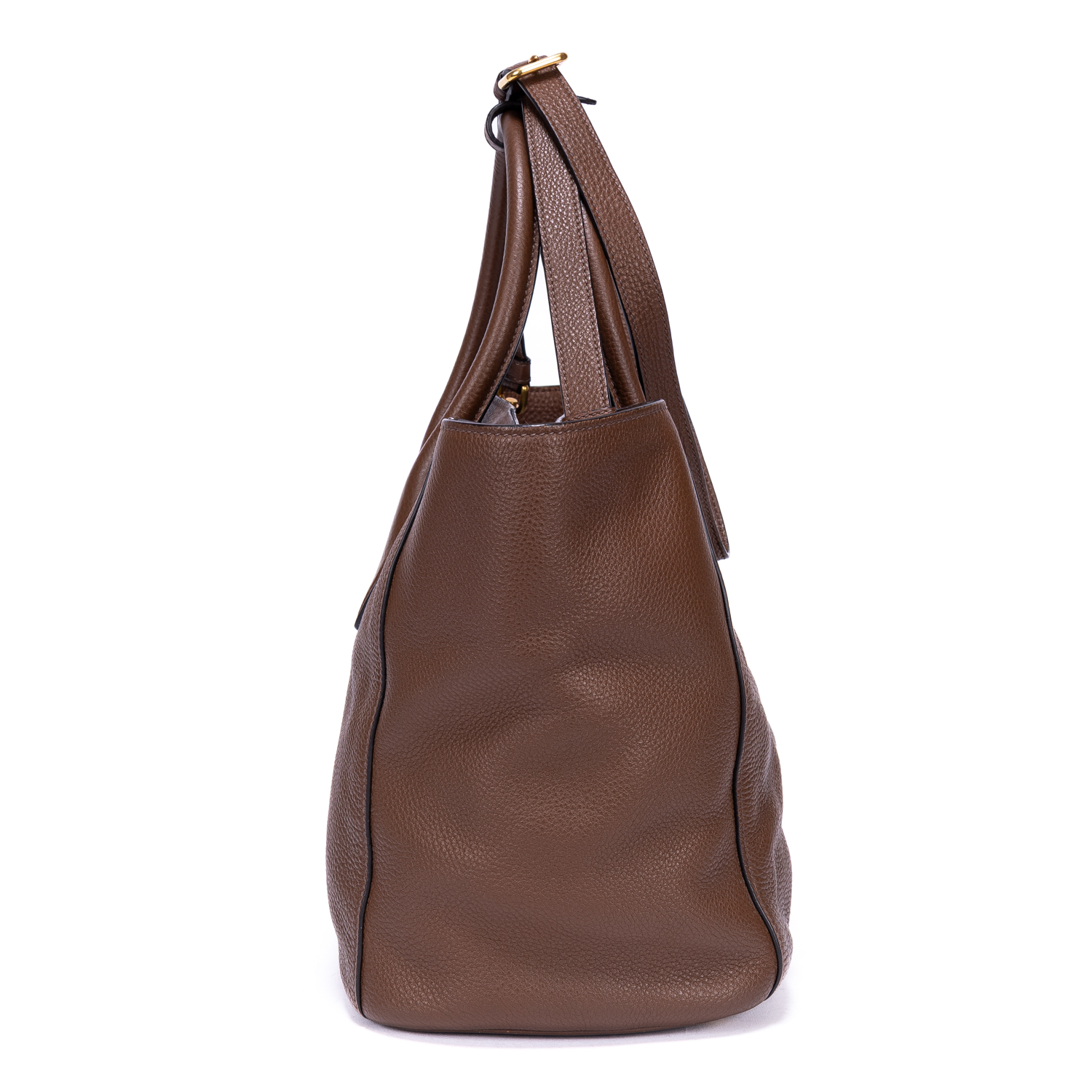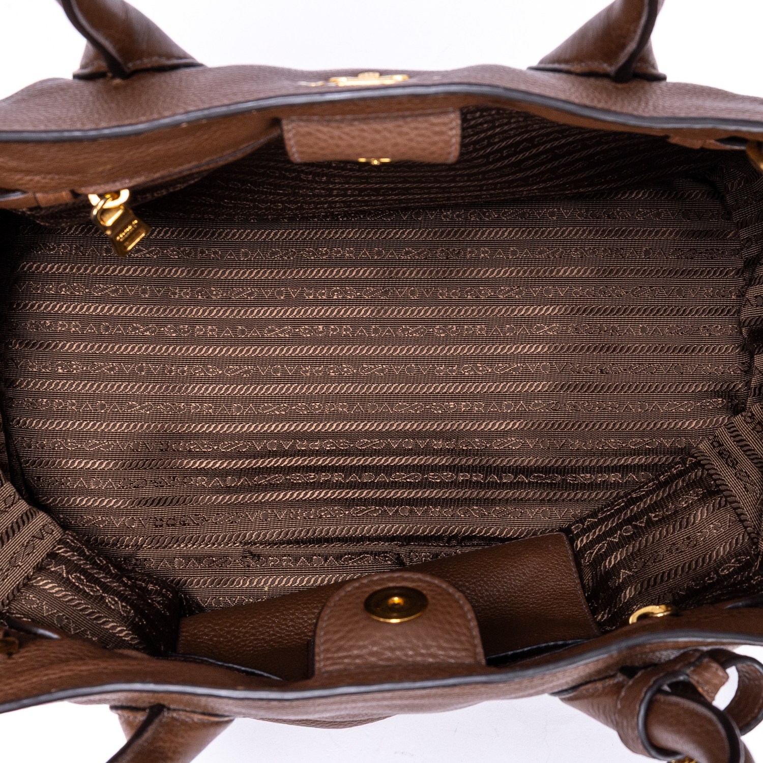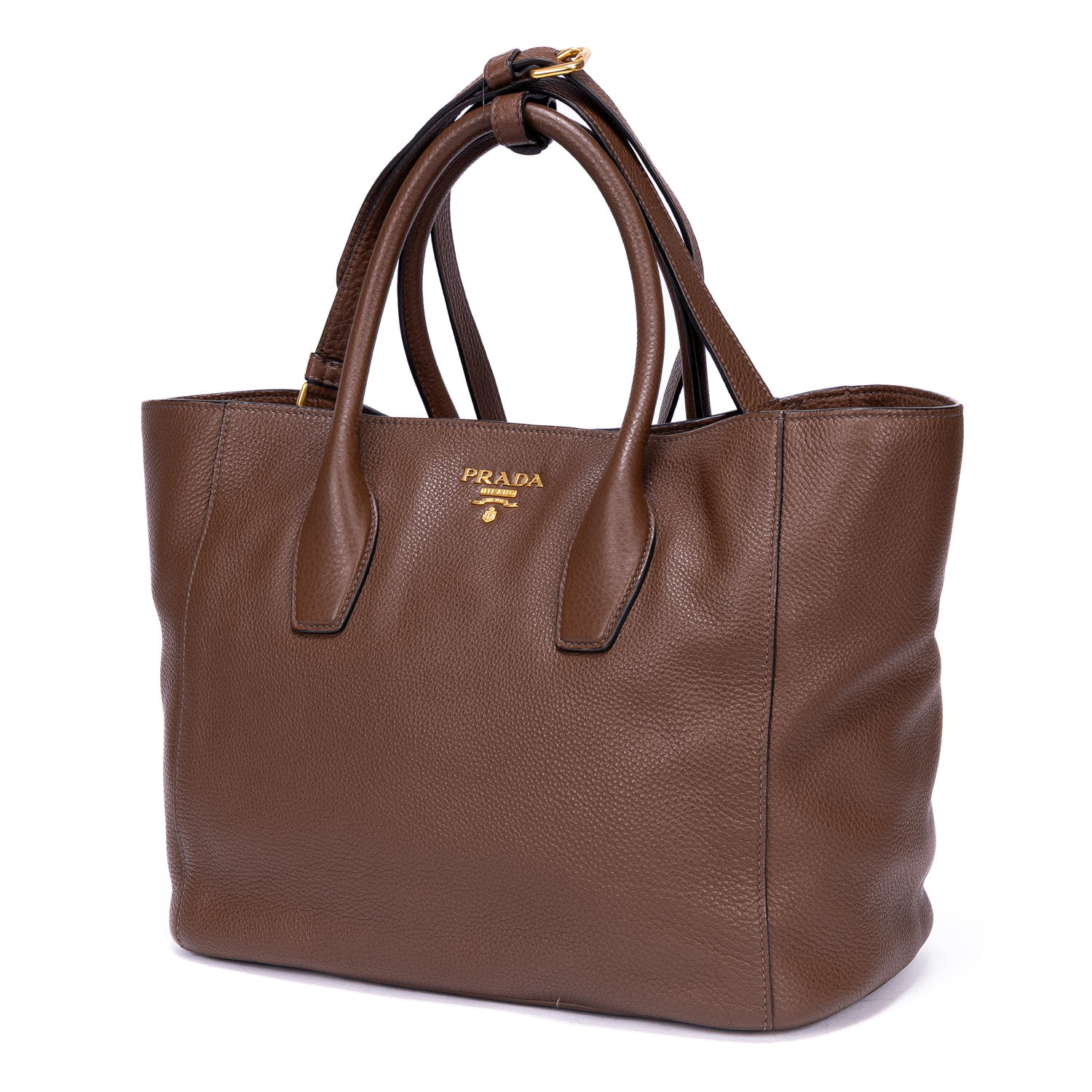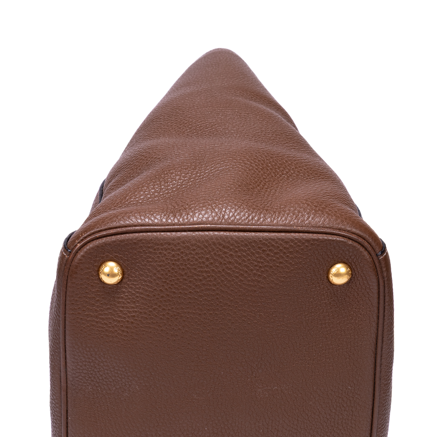Prada Shoulder Bag Shopping Tote in Brown Vitello Daino Leather and Gold hardware. The product is in Excellent Condition (A).