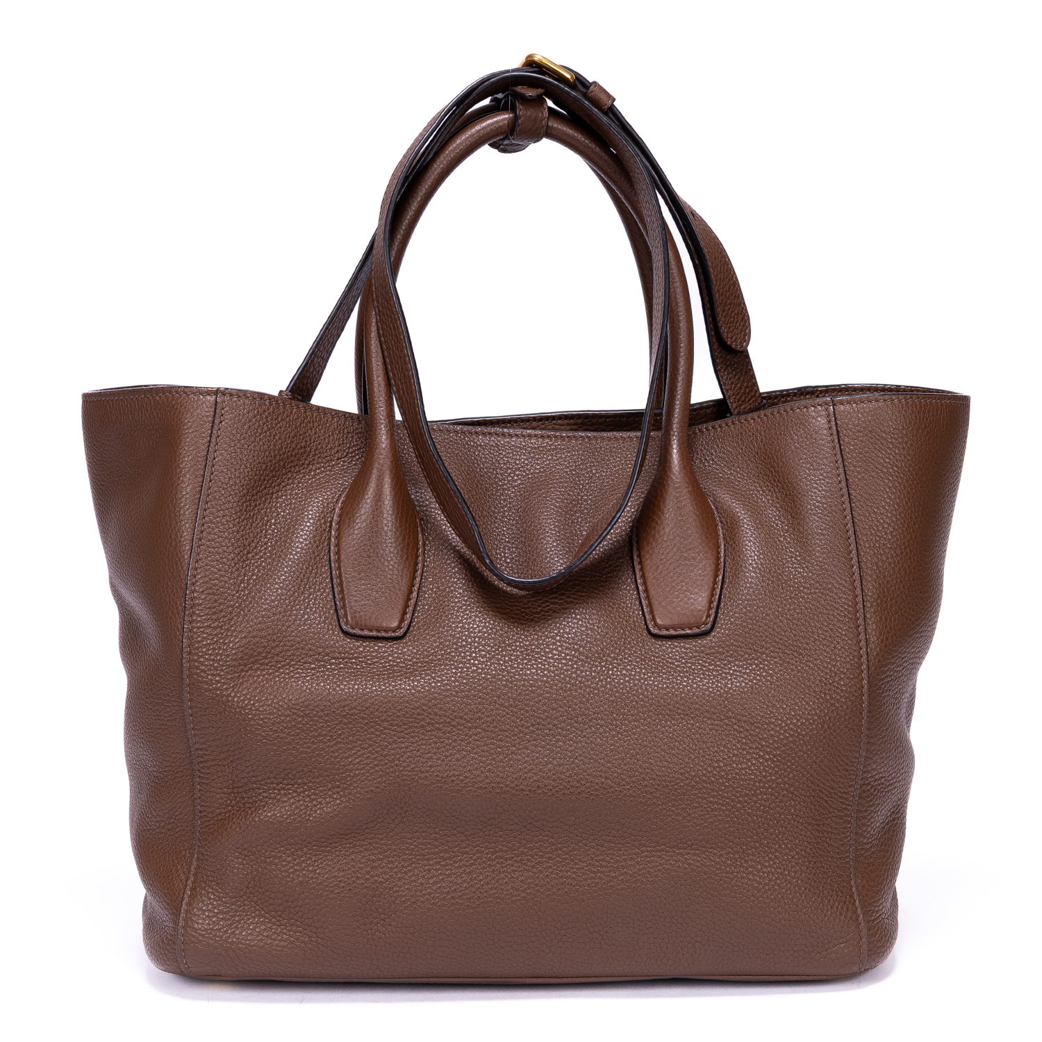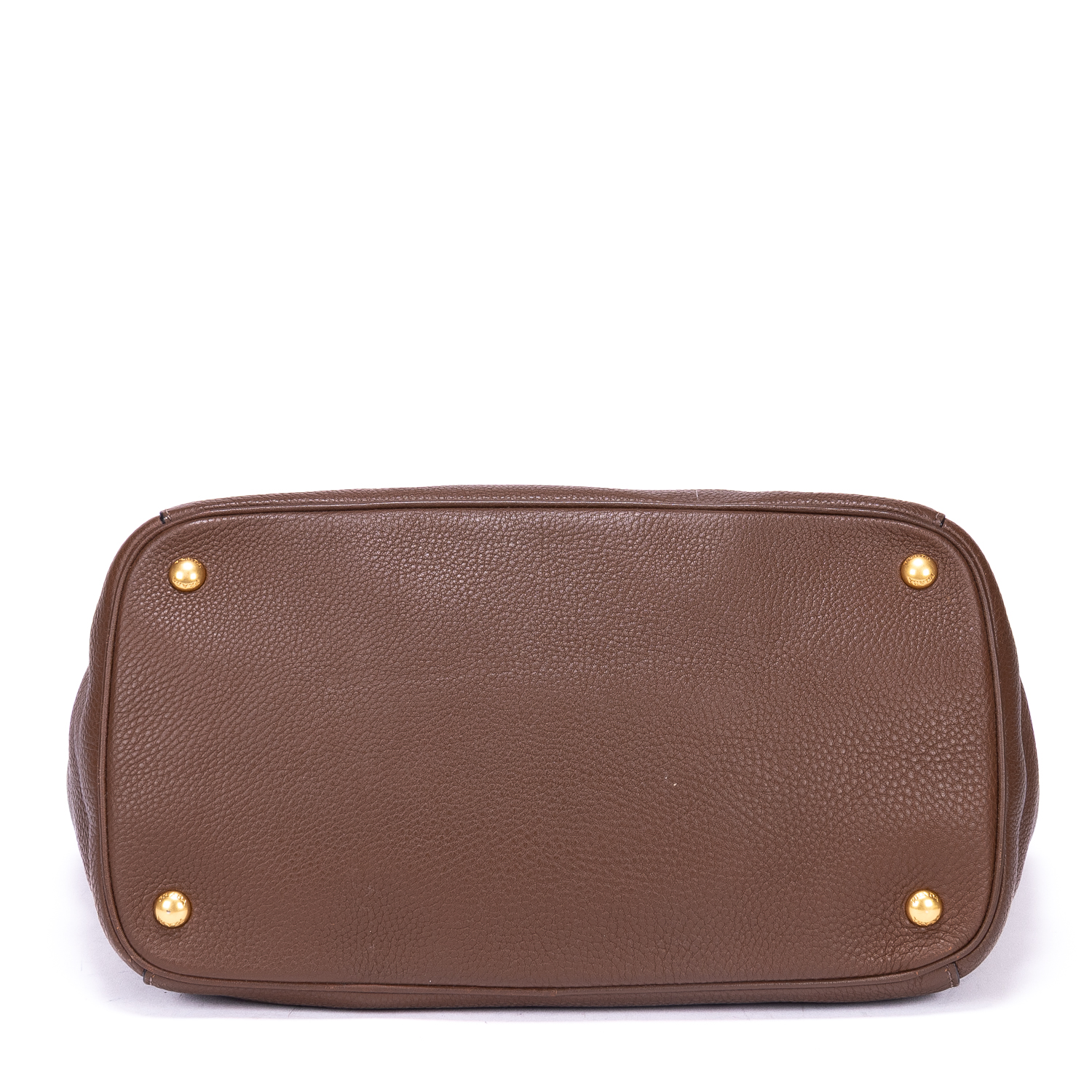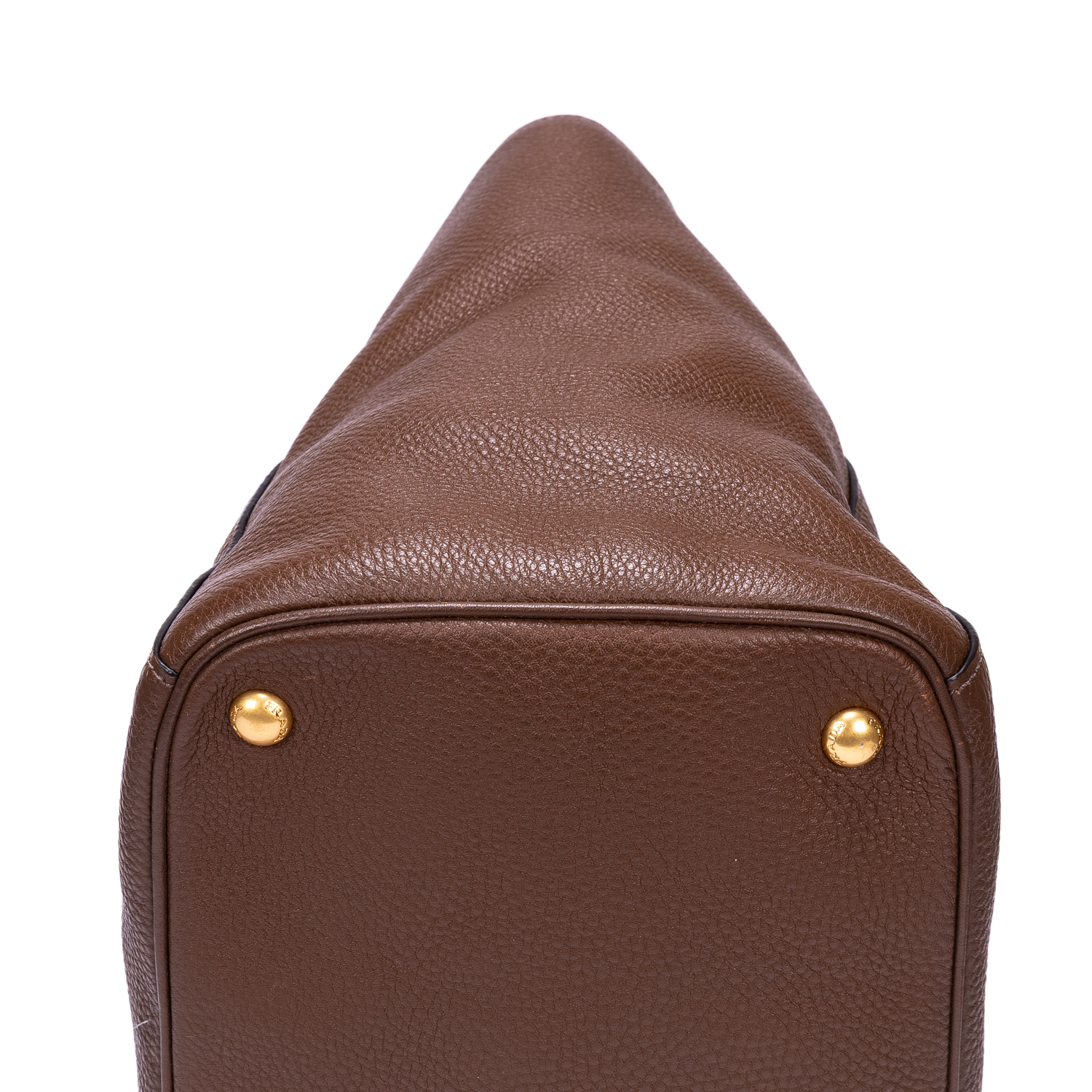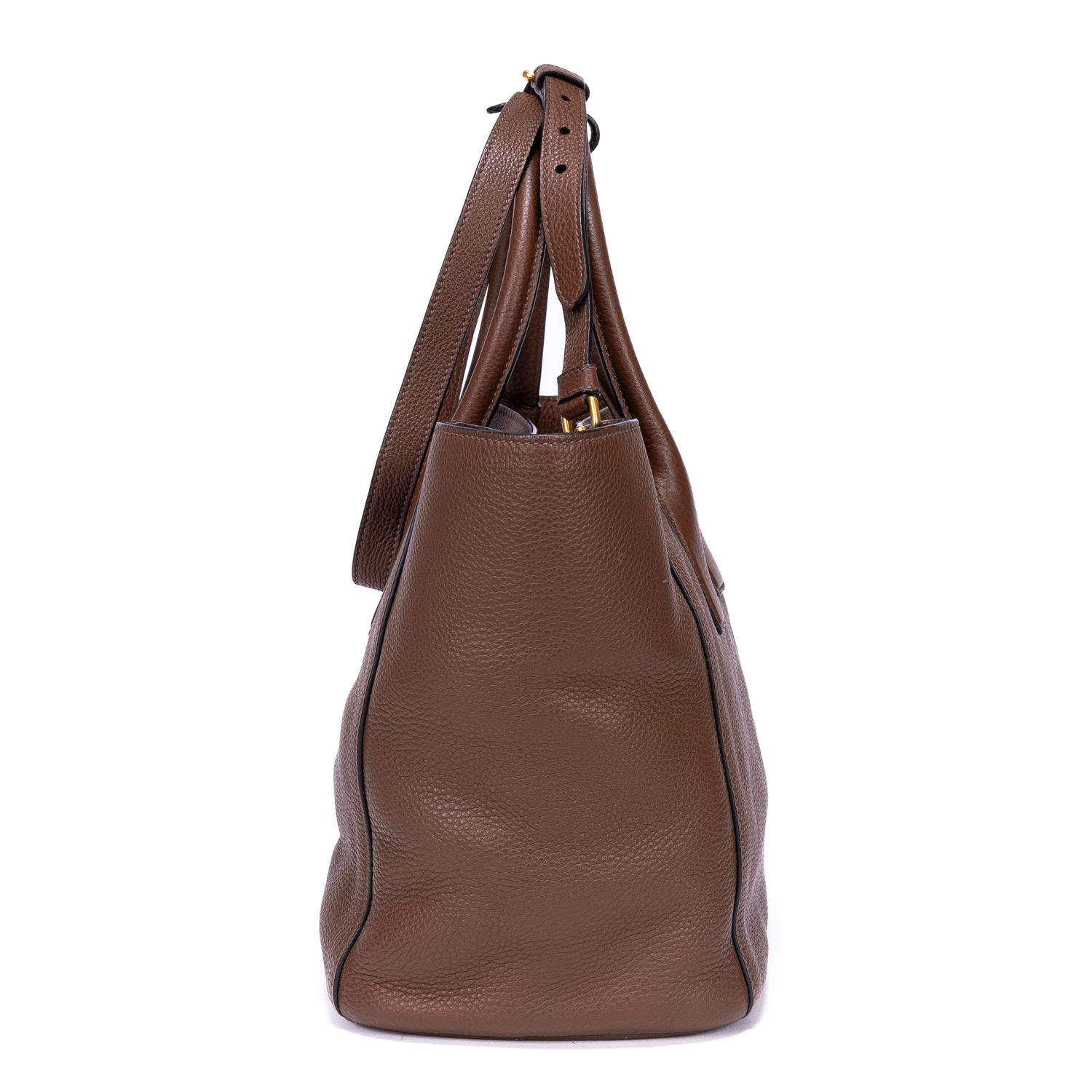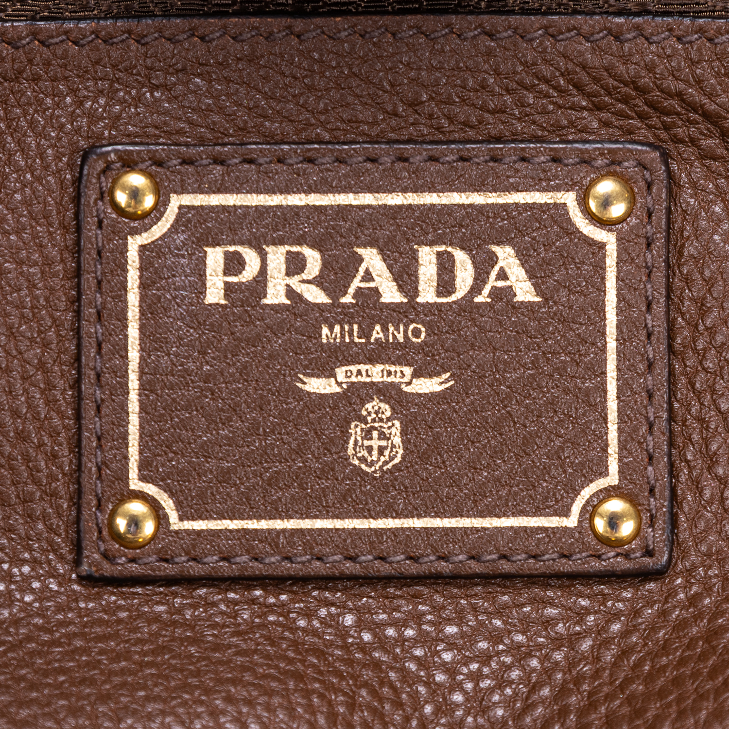 Prada Shoulder Bag Shopping Tote in Brown Vitello Daino Leather and Gold hardware. The product is in Excellent Condition (A).