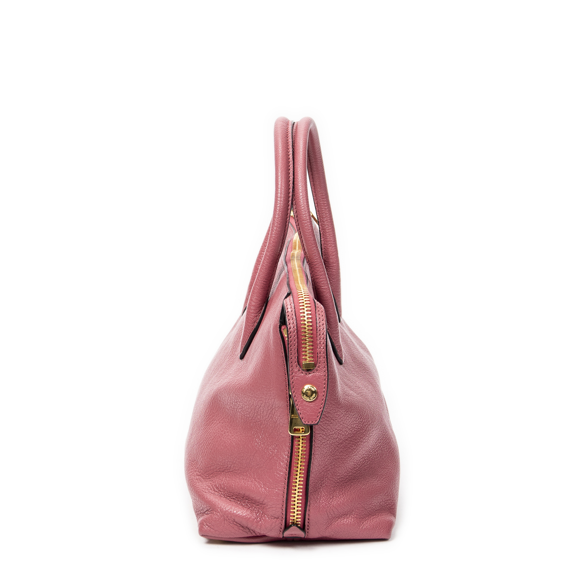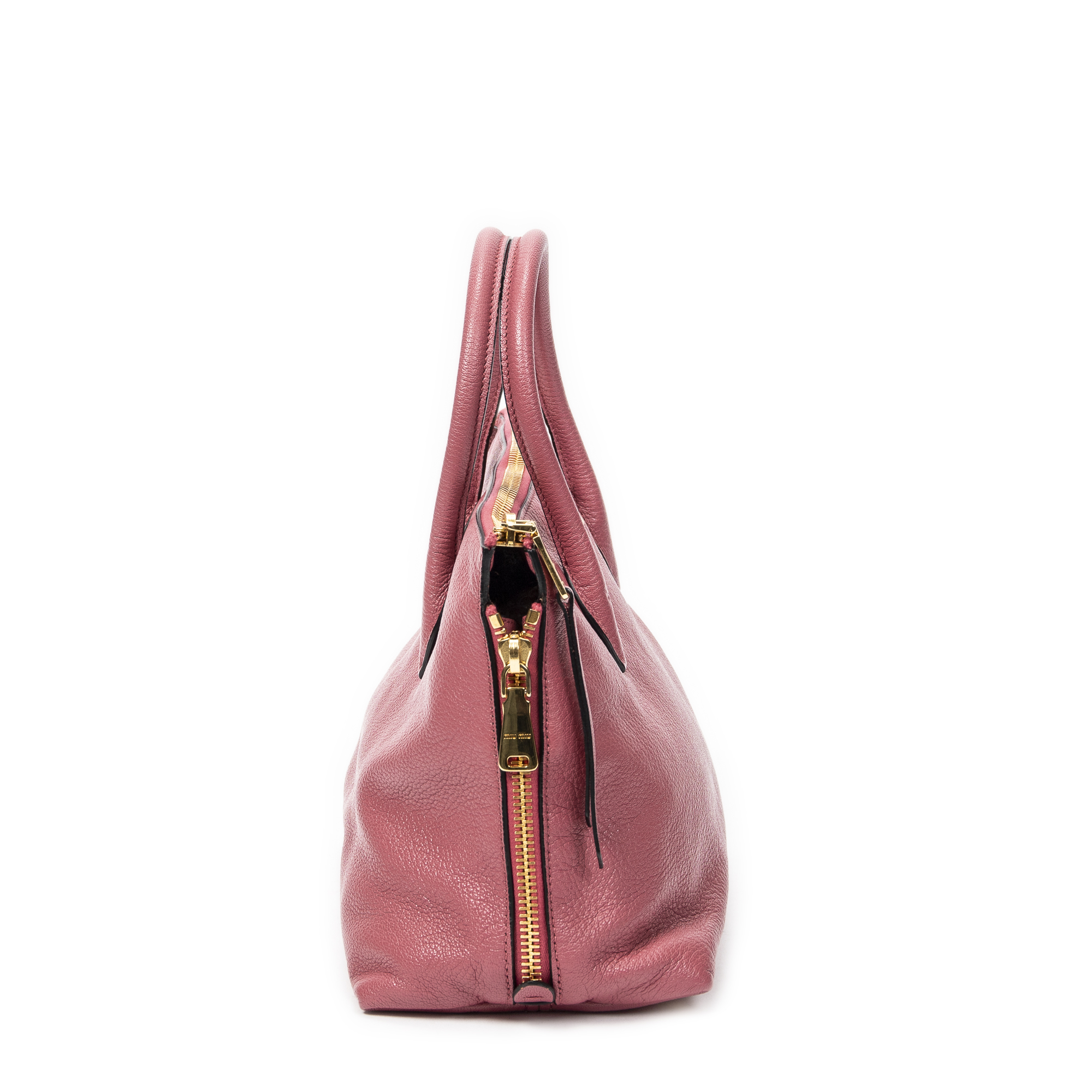 Miu Miu Shoulder Bag Side Zip Convertible Tote in Pink Goatskin Leather and Gold hardware. The product is in Perfect Condition (AA).
