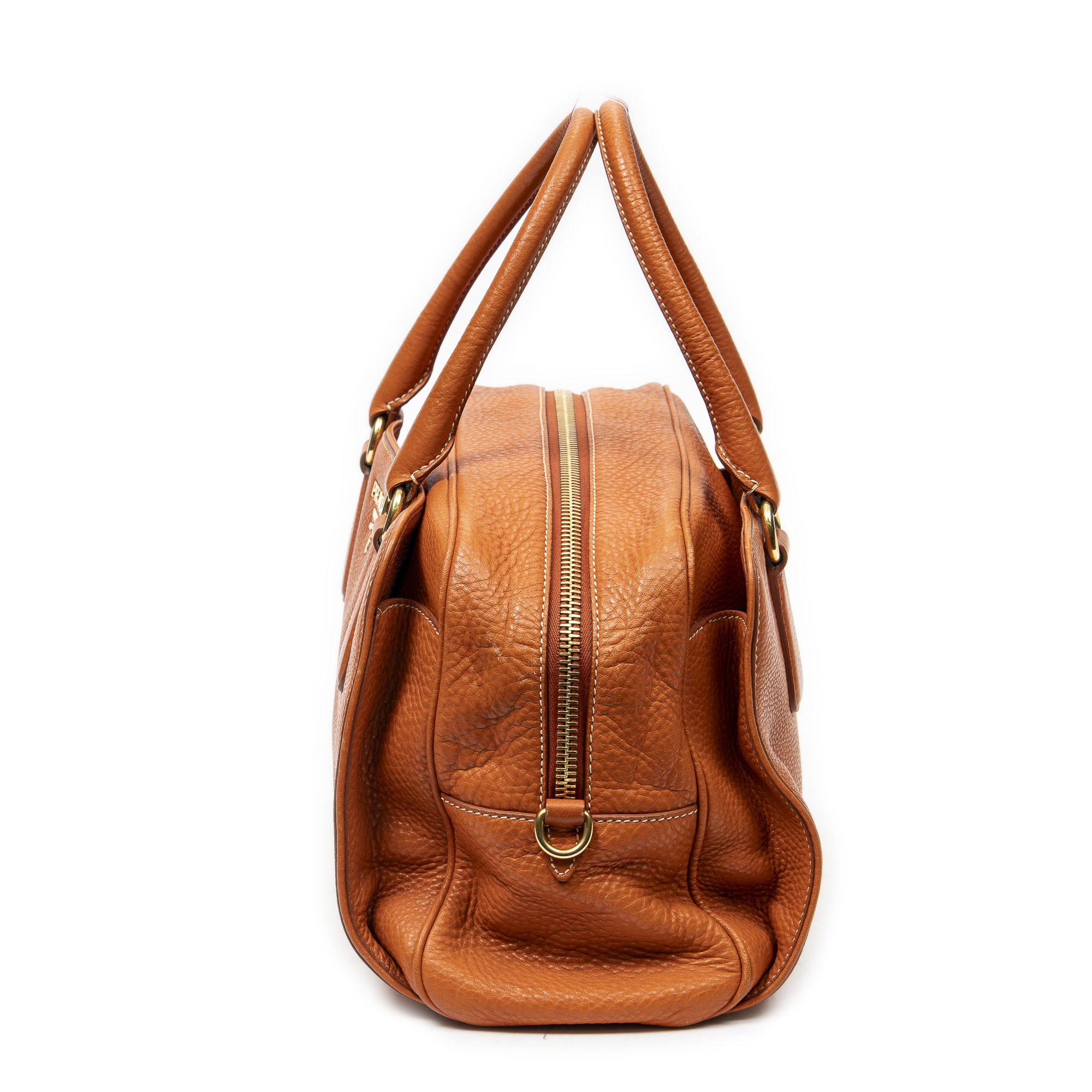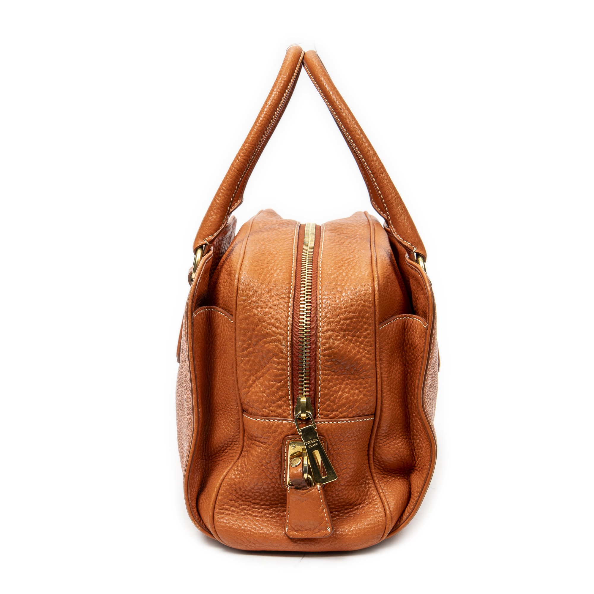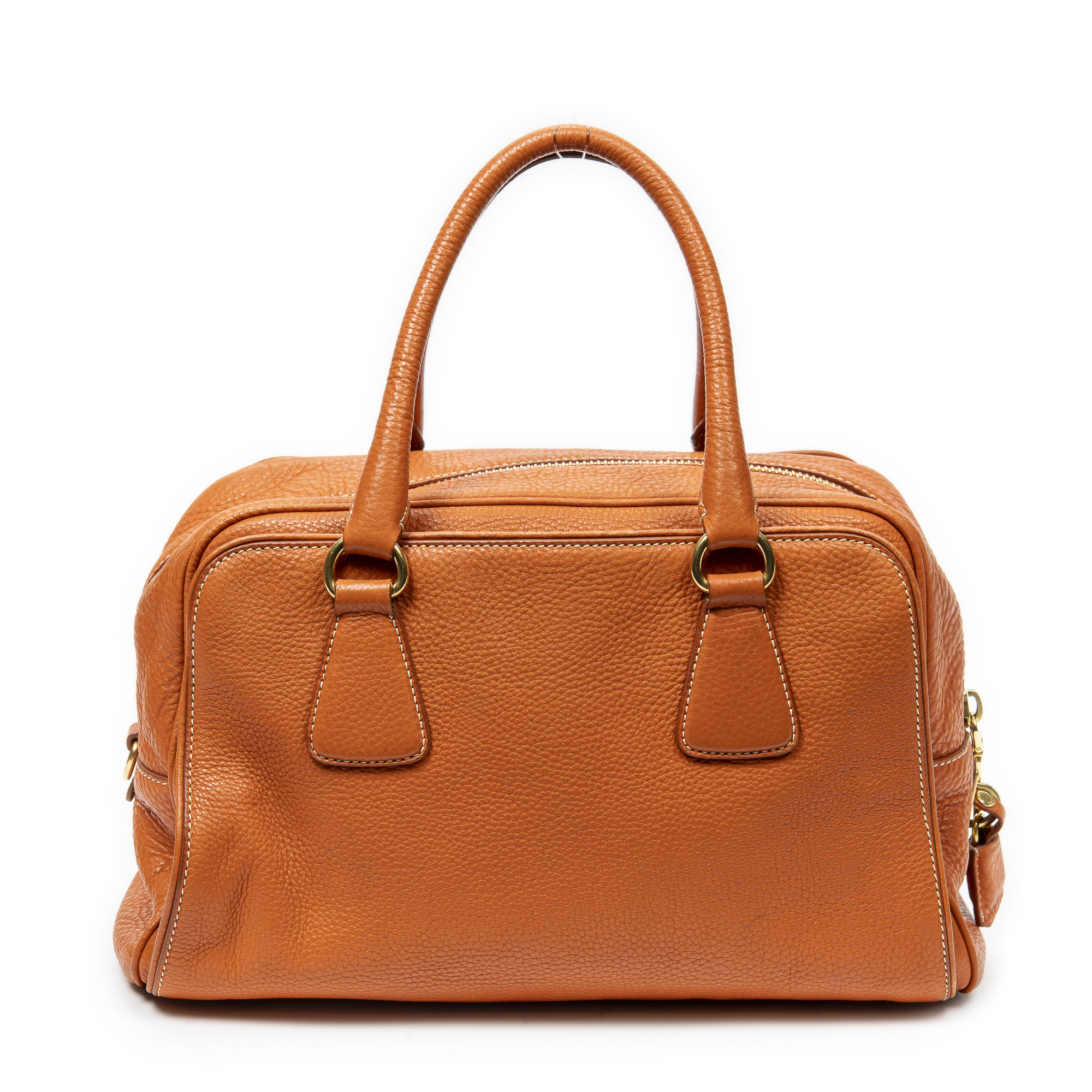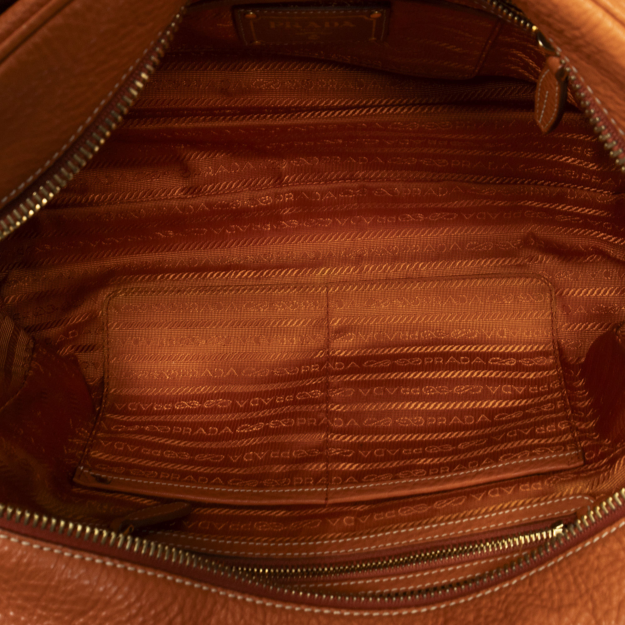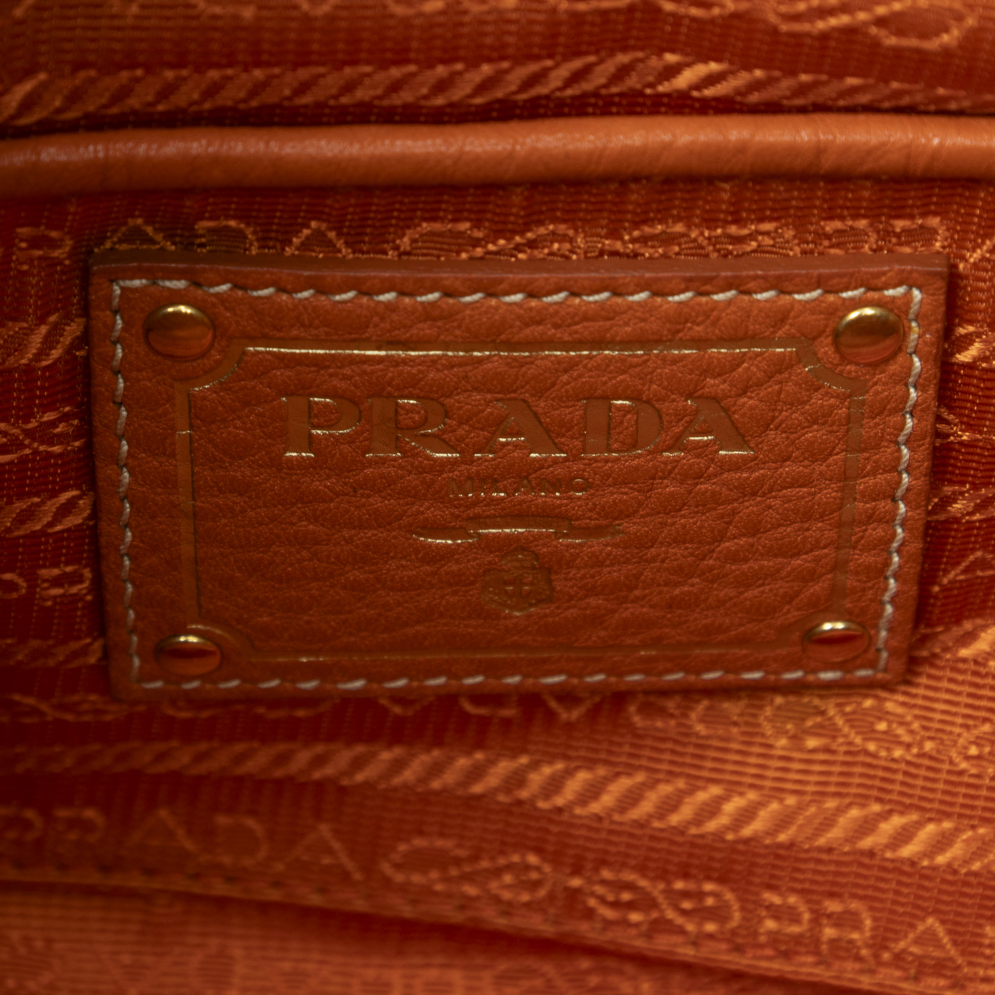 Prada Shoulder Bag Slip Pocket Boston in Orange Vitello Daino Leather and Gold hardware. The product is in Excellent Condition (A).
