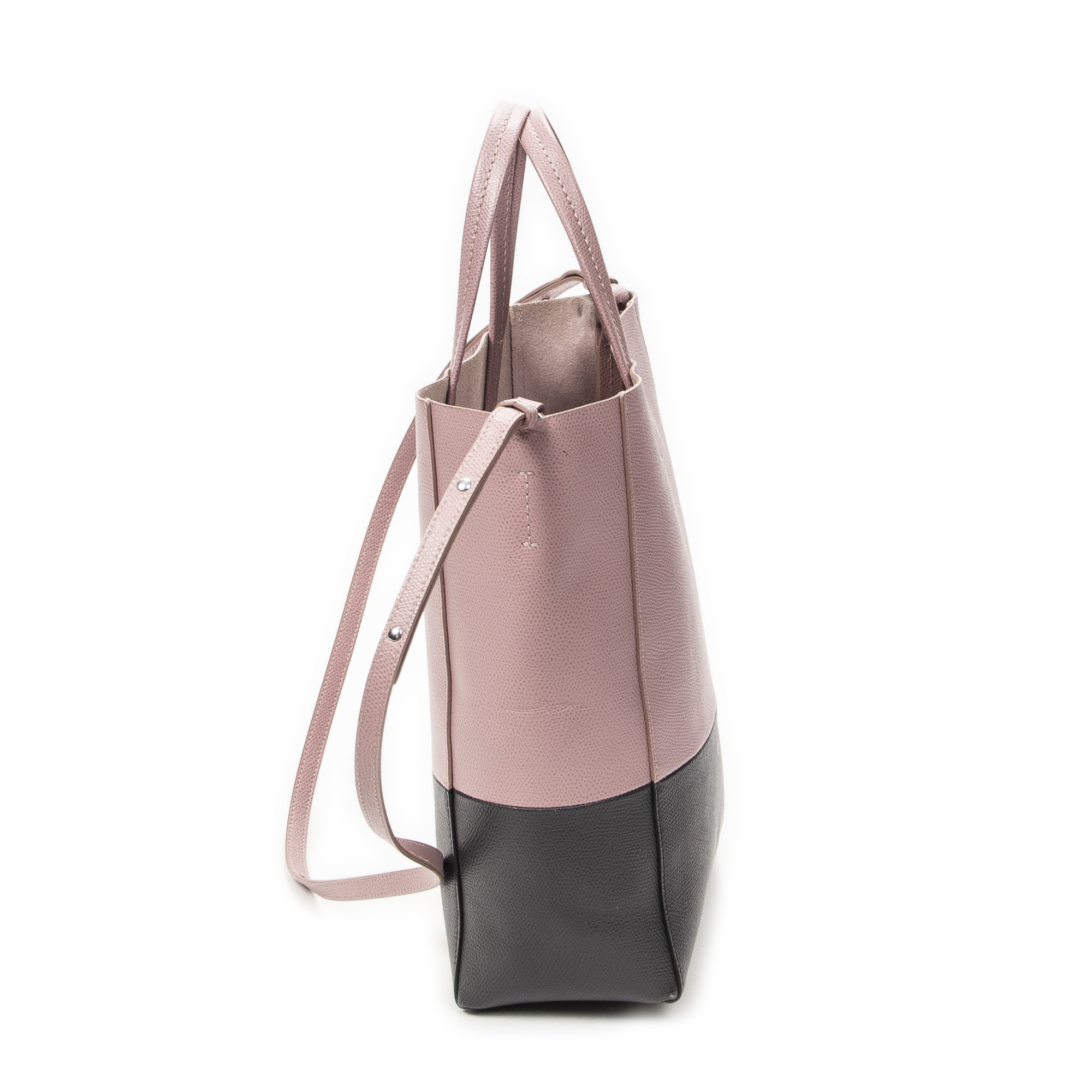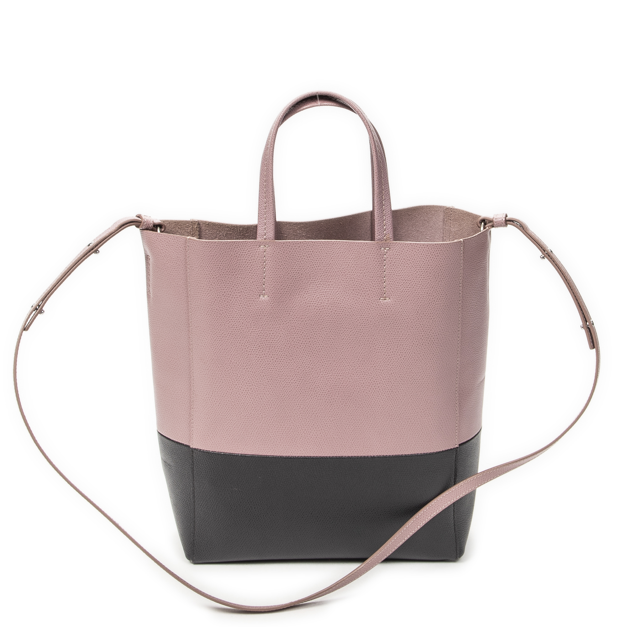 Celine Shoulder Bag Small Bicolor Vertical Cabas Tote in Light Pink/Grey Grained Calfskin Leather and Silver hardware. The product is in Excellent Condition (A).