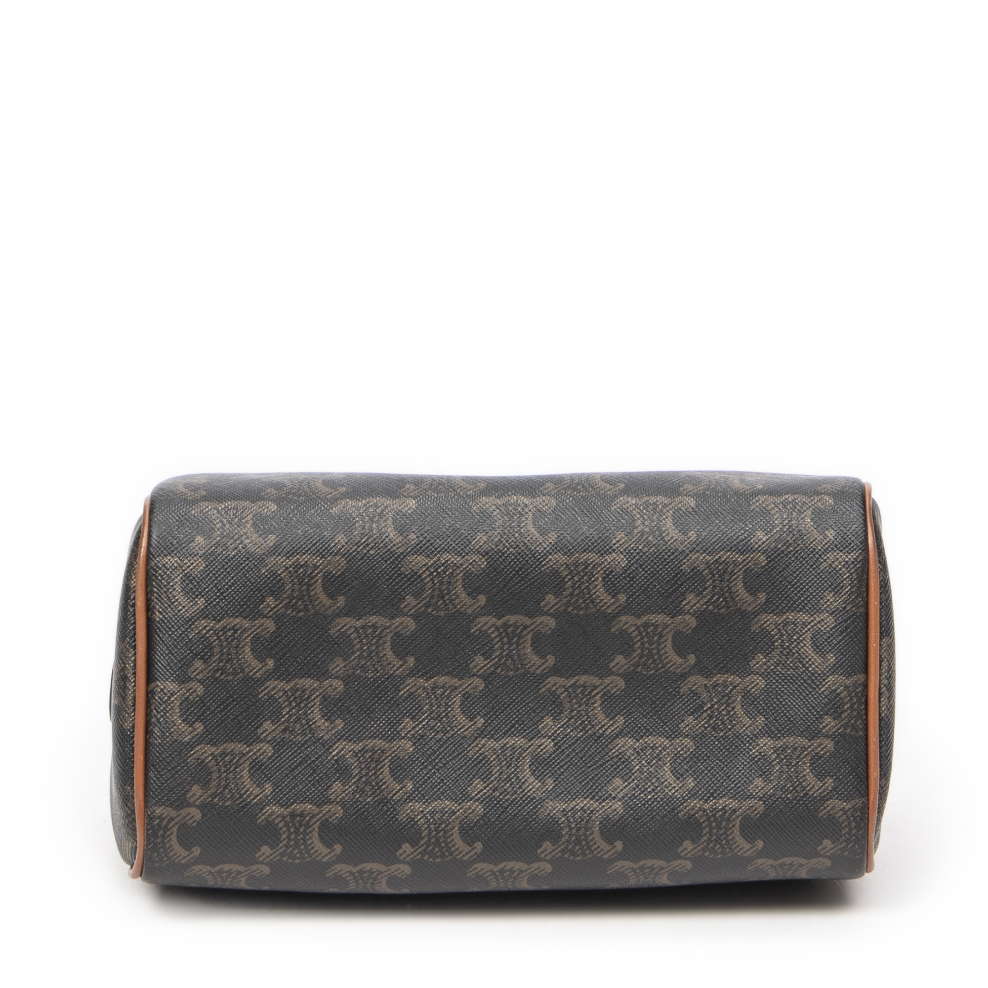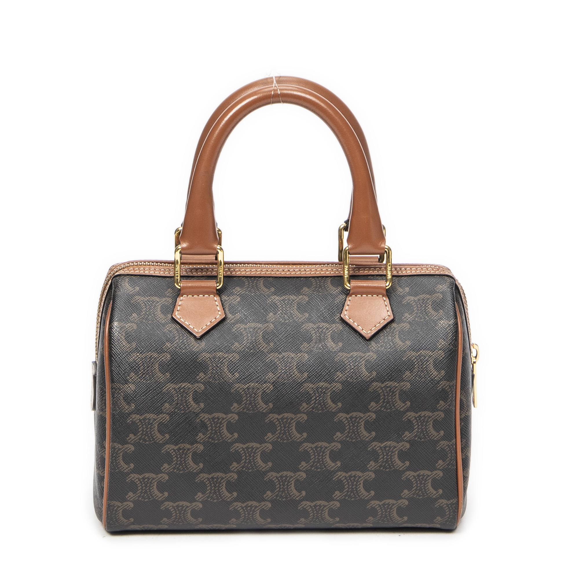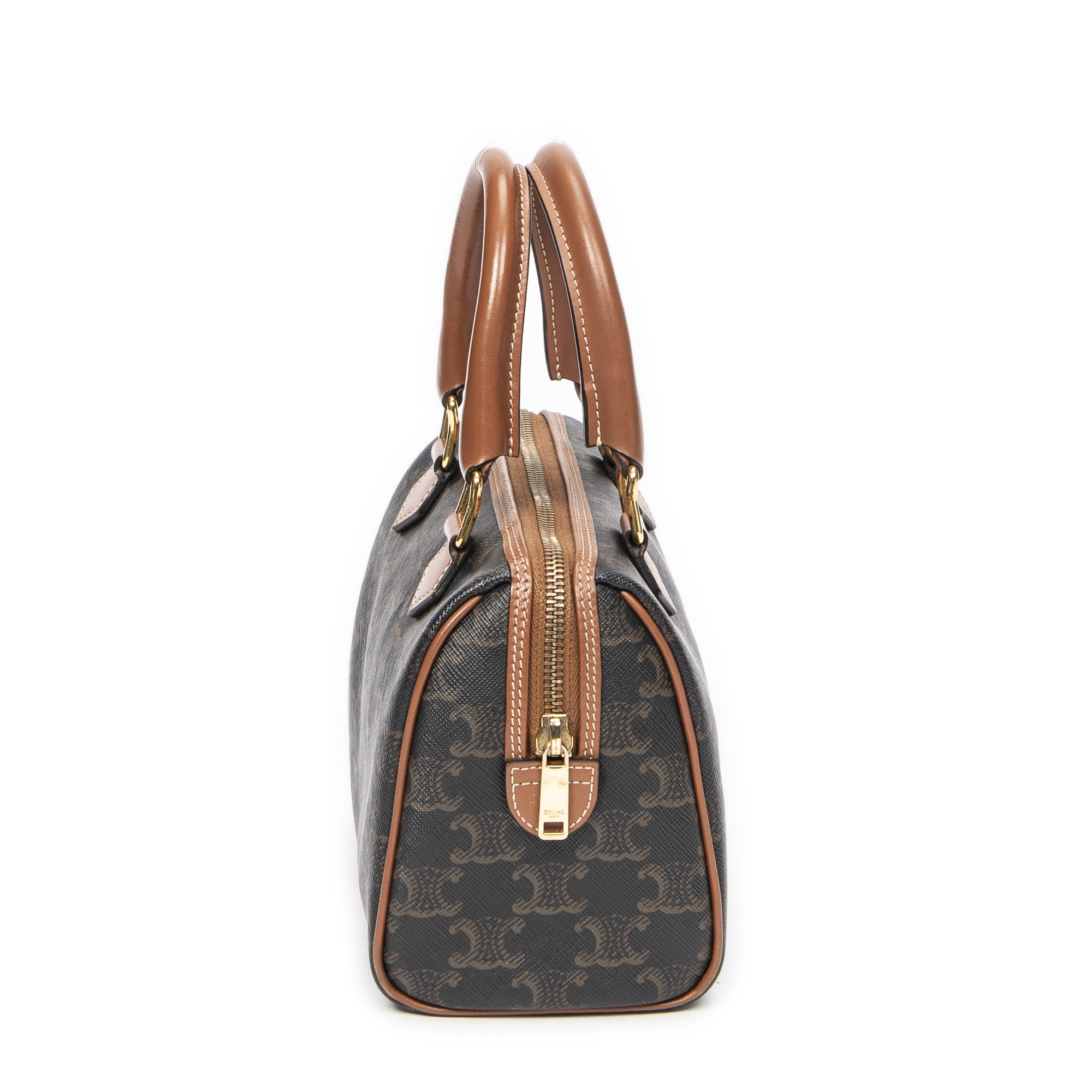 Celine Shoulder Bag Small Boston in Brown Triomphe Coated Canvas and Gold hardware. The product is in Excellent Condition (A).