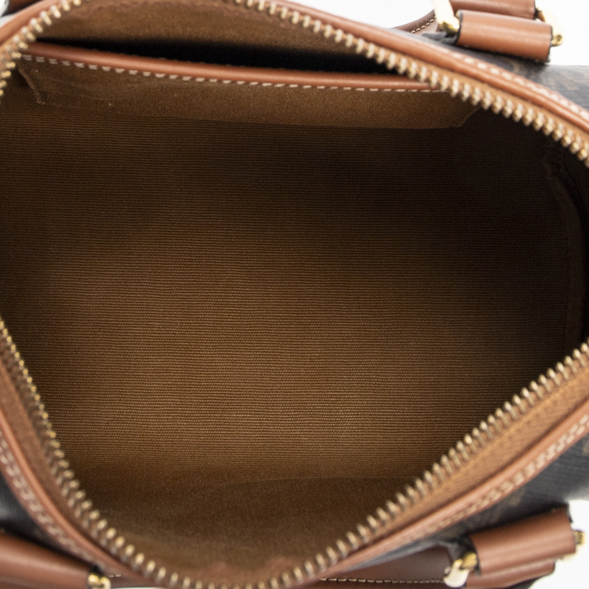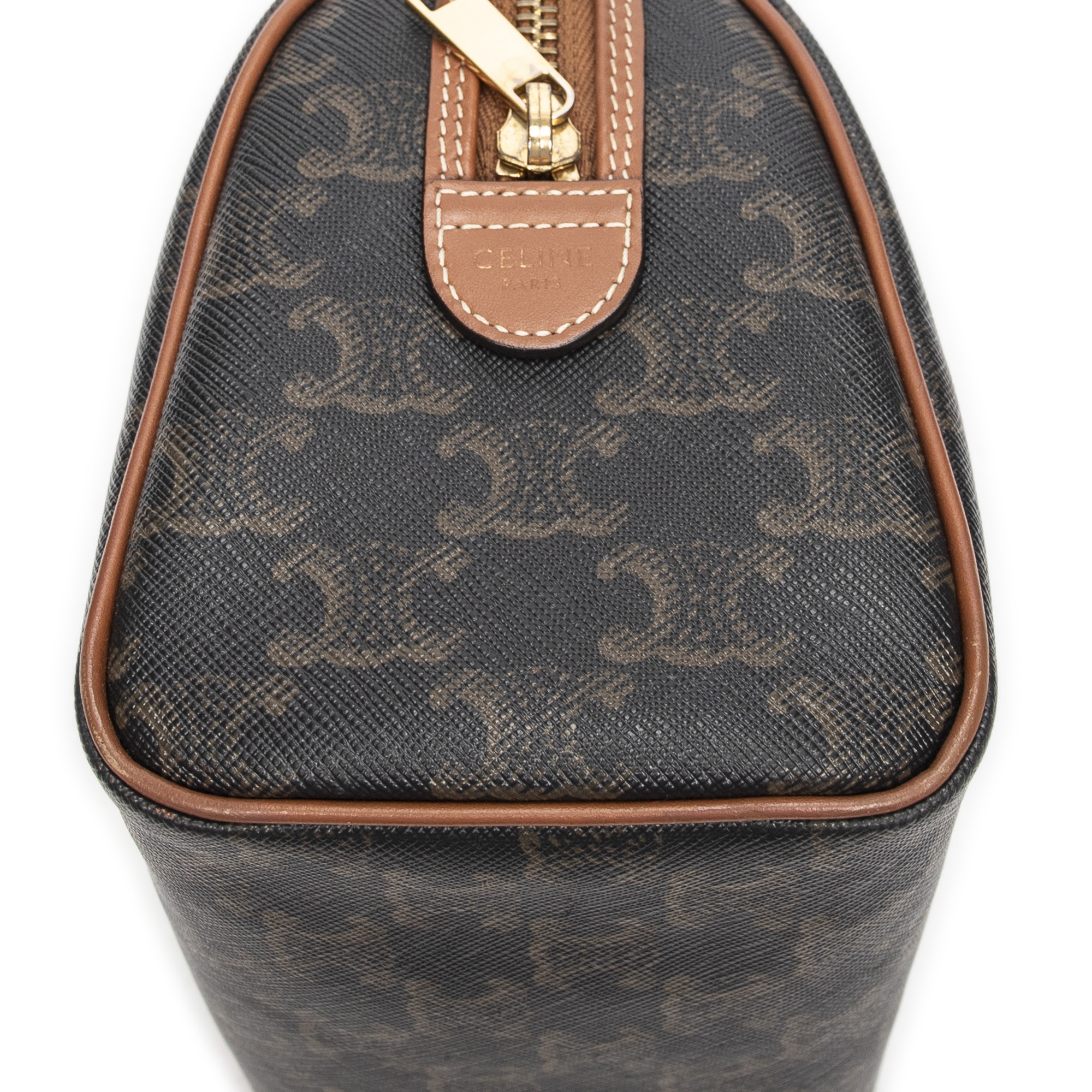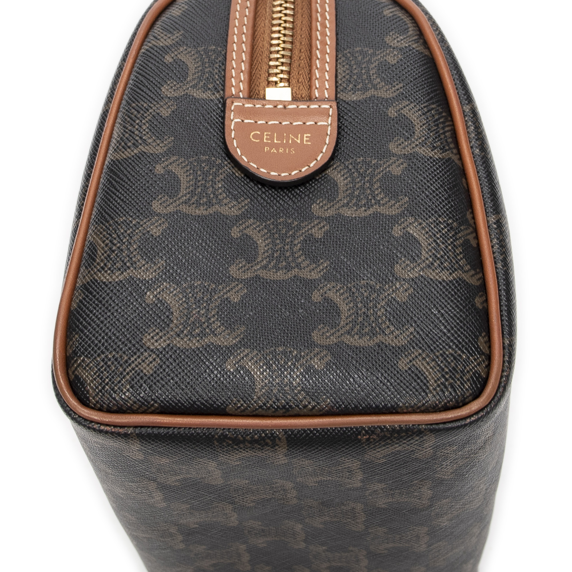 Celine Shoulder Bag Small Boston in Brown Triomphe Coated Canvas and Gold hardware. The product is in Excellent Condition (A).