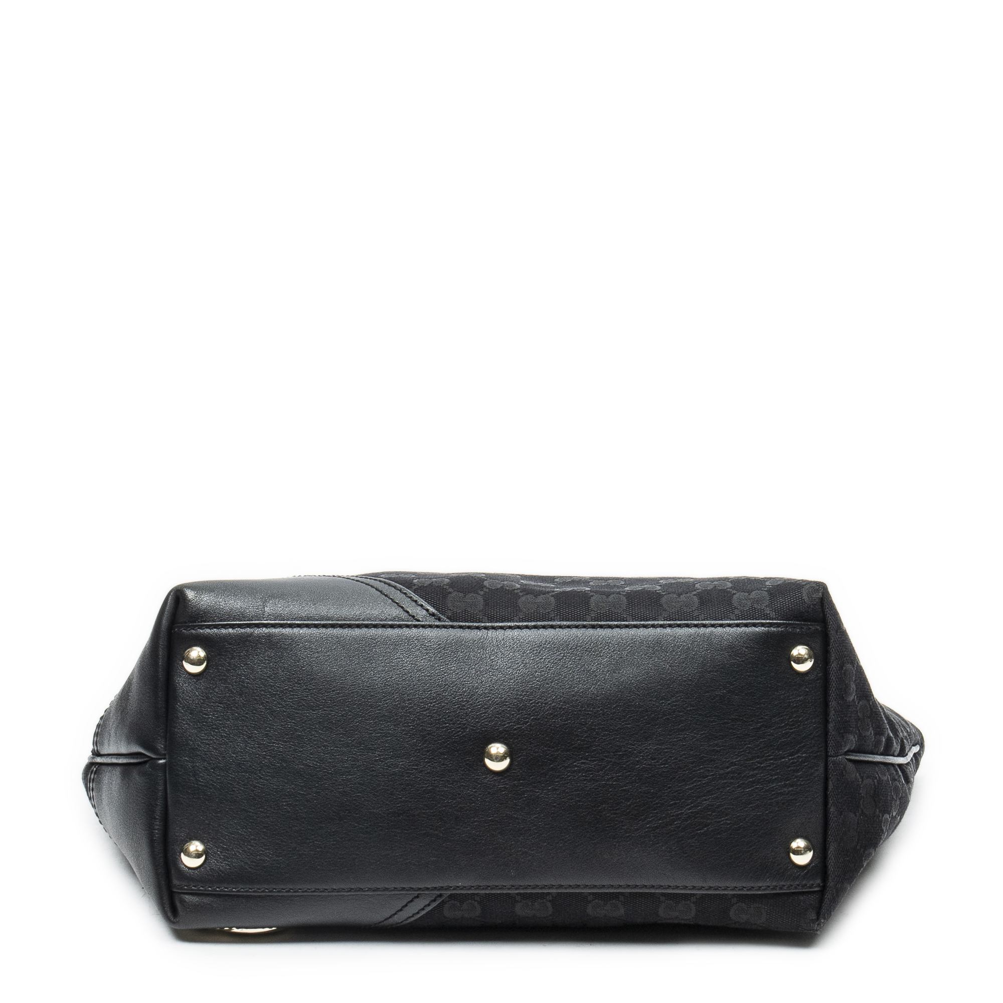 Gucci Shoulder Bag Small Britt in Black Monogrammed Canvas and Gold hardware. The product is in Excellent Condition (A).
