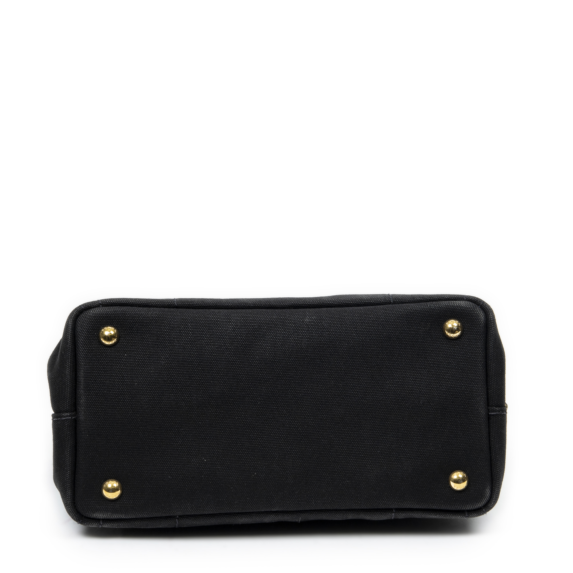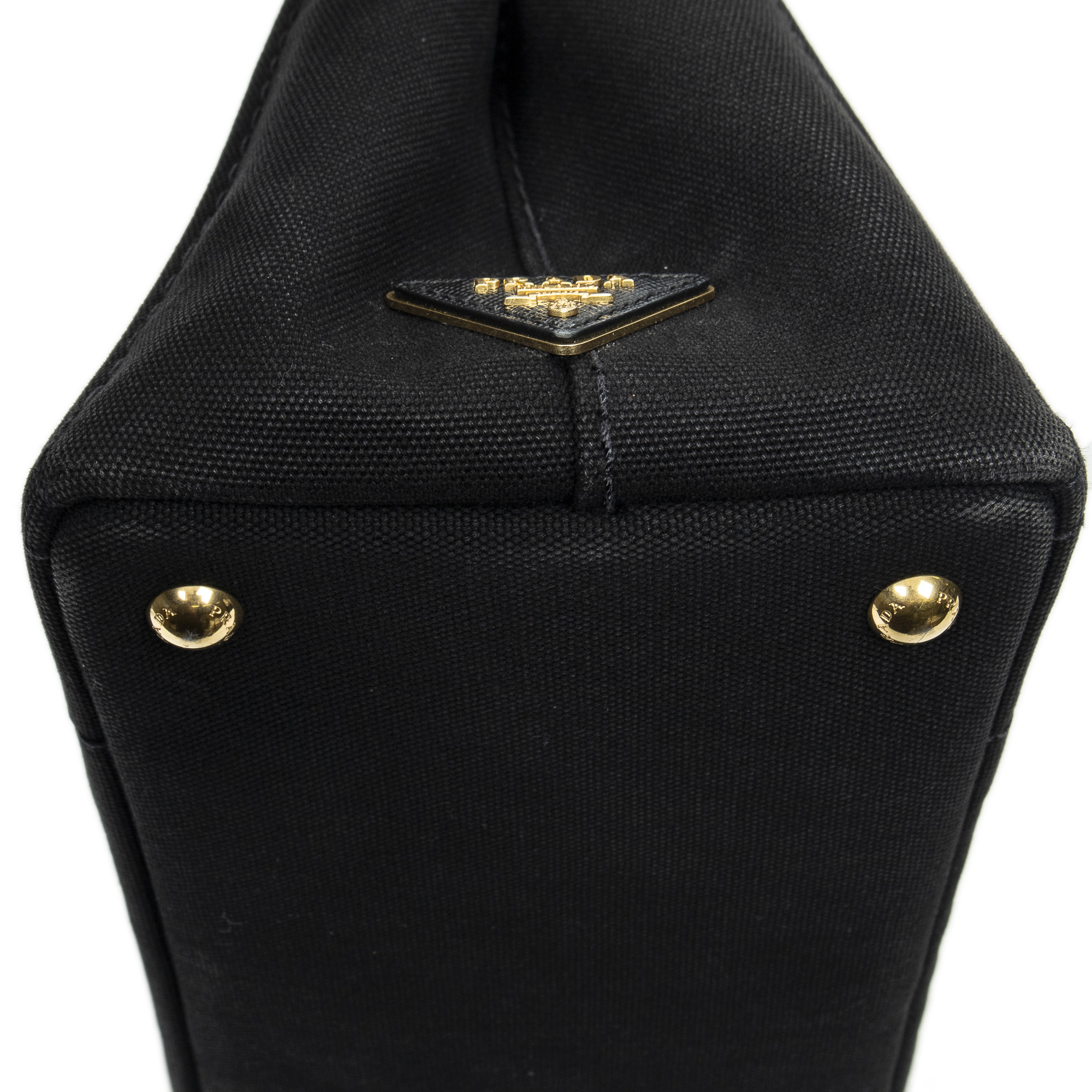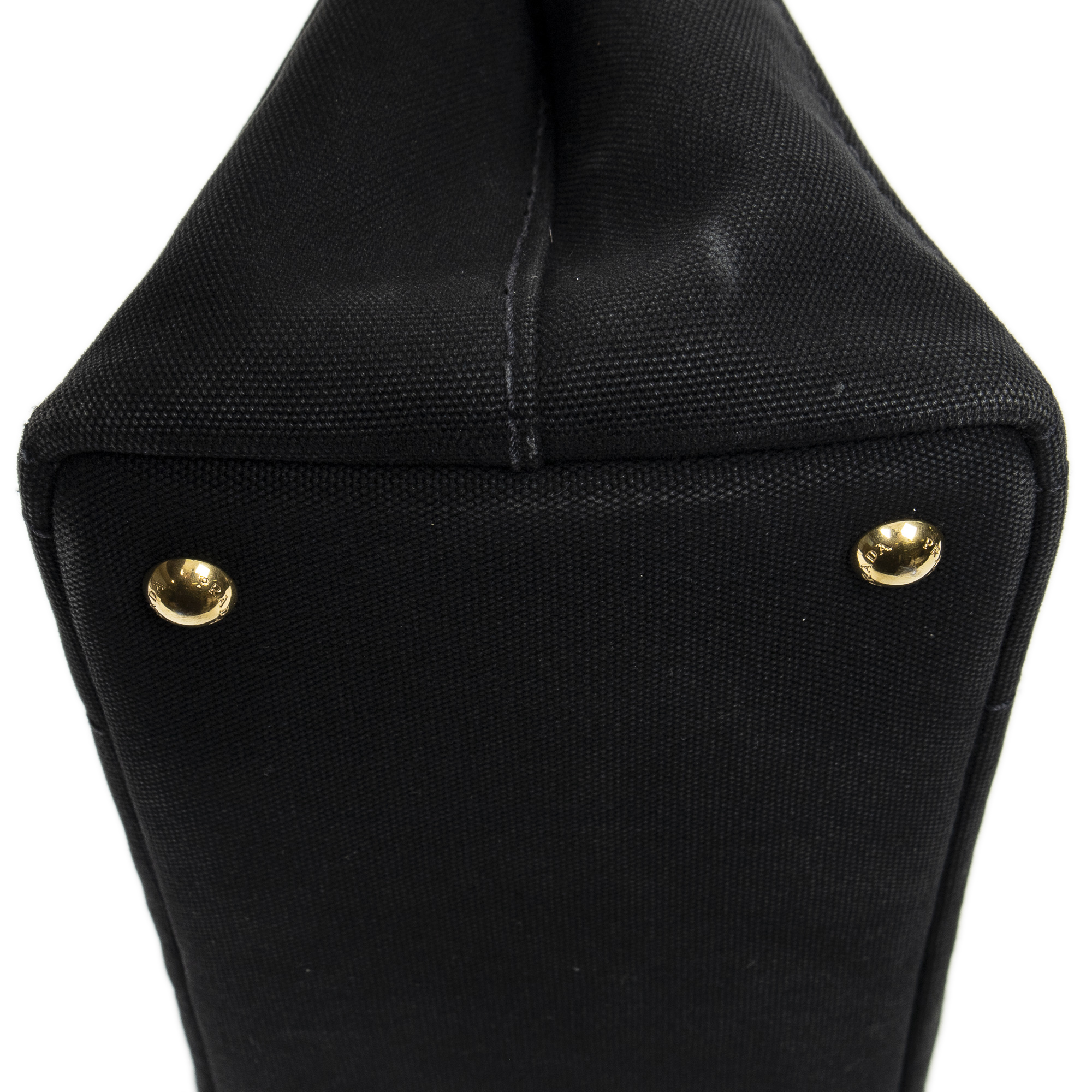 Prada Shoulder Bag Small Canapa Tote in Black Canapa Canvas and Gold hardware. The product is in Excellent Condition (A).