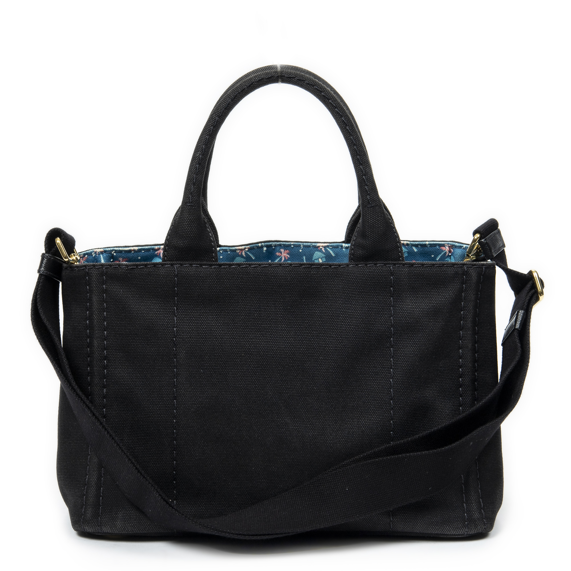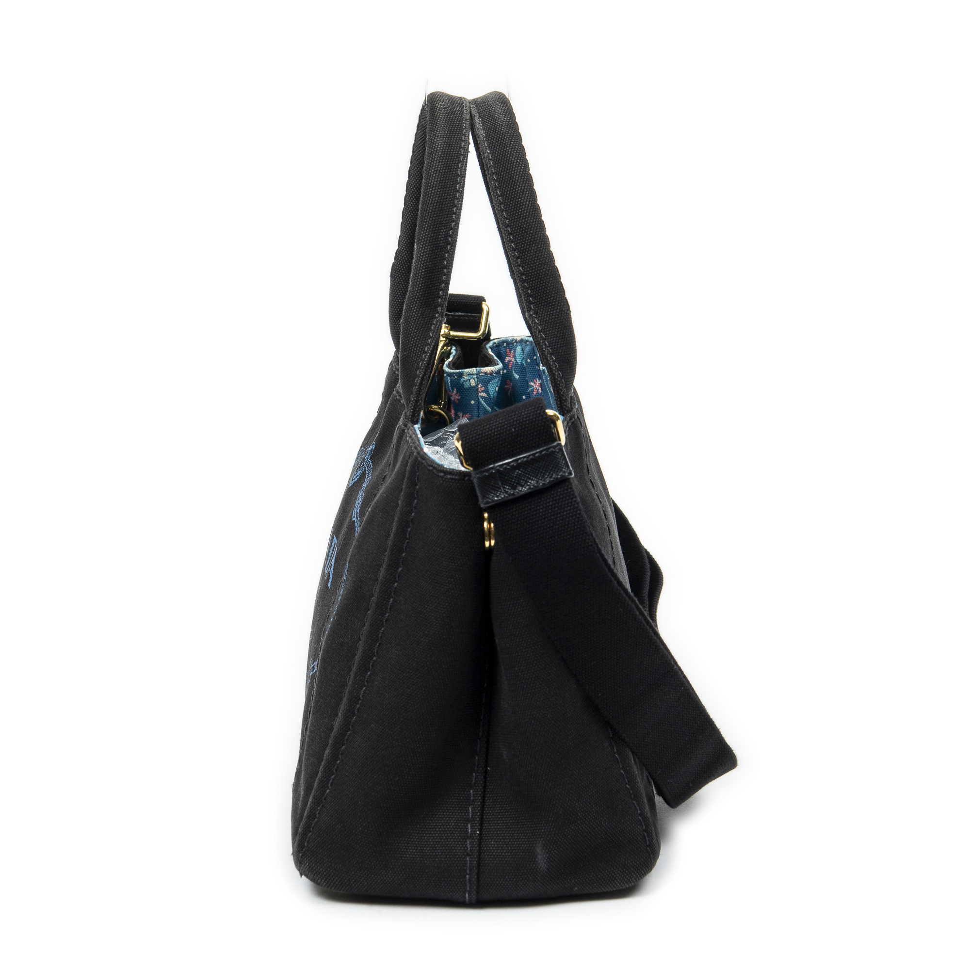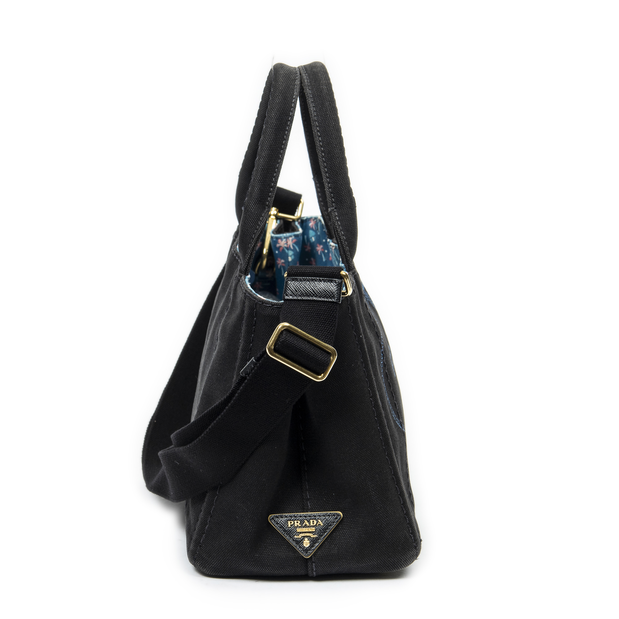 Prada Shoulder Bag Small Canapa Tote in Black Canapa Canvas and Gold hardware. The product is in Excellent Condition (A).