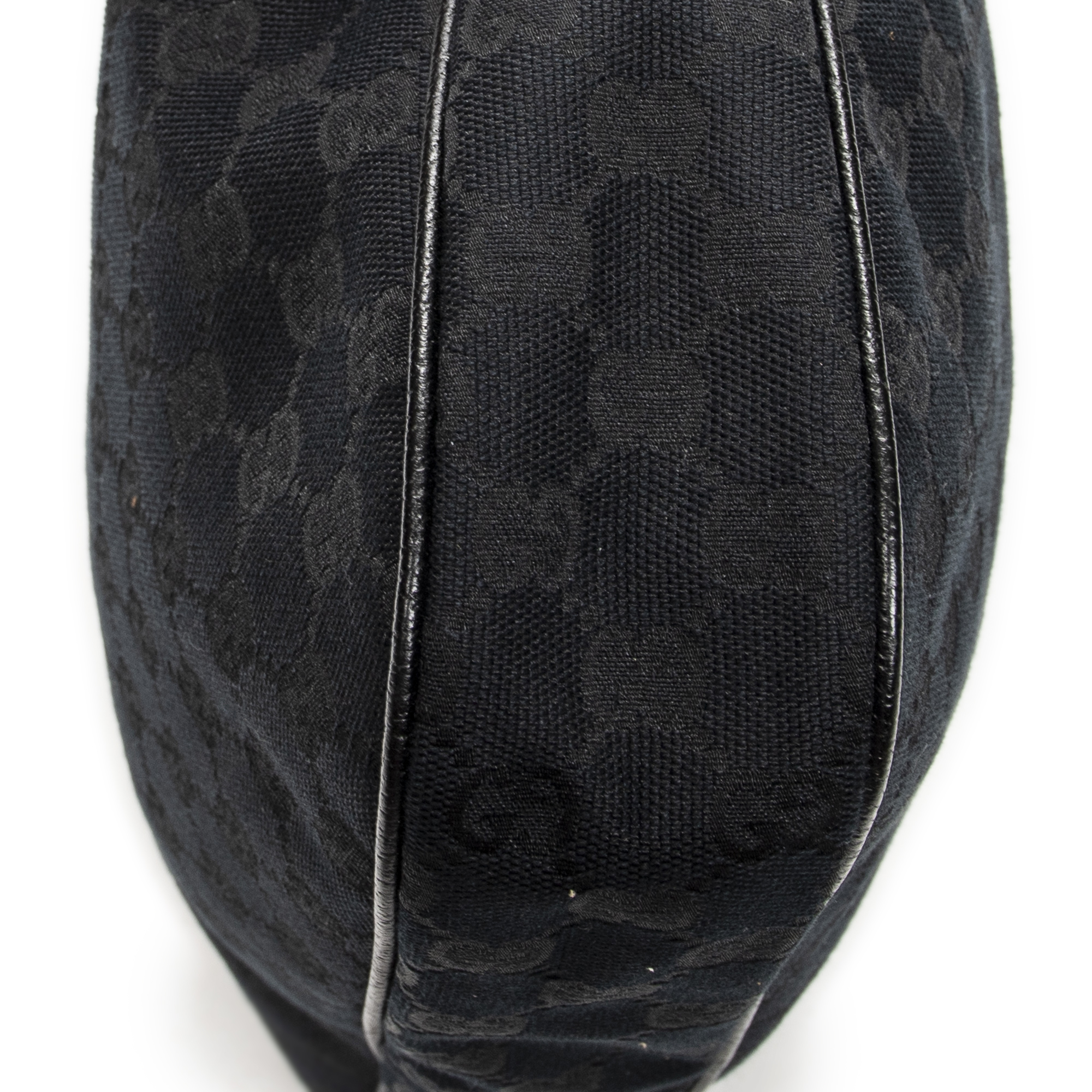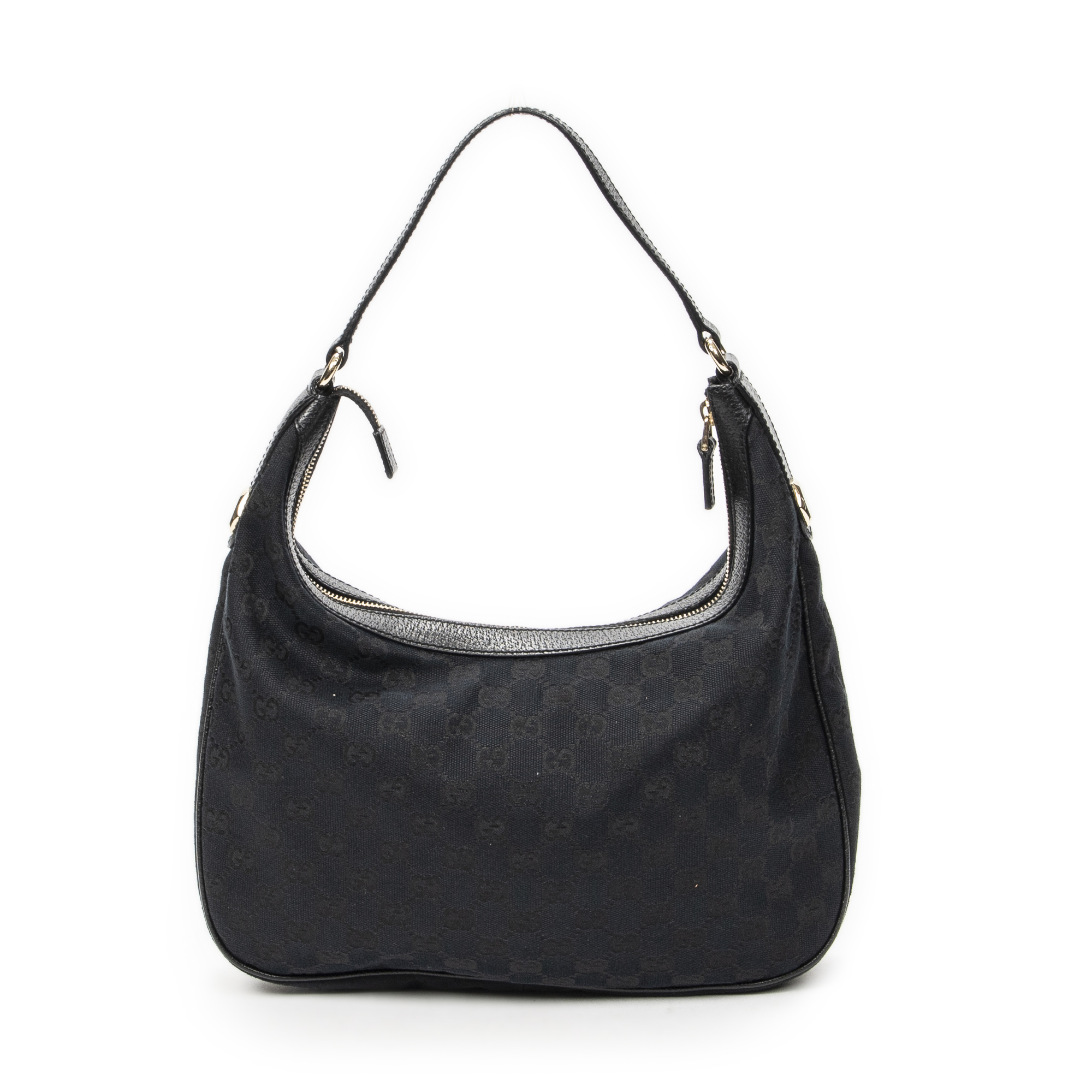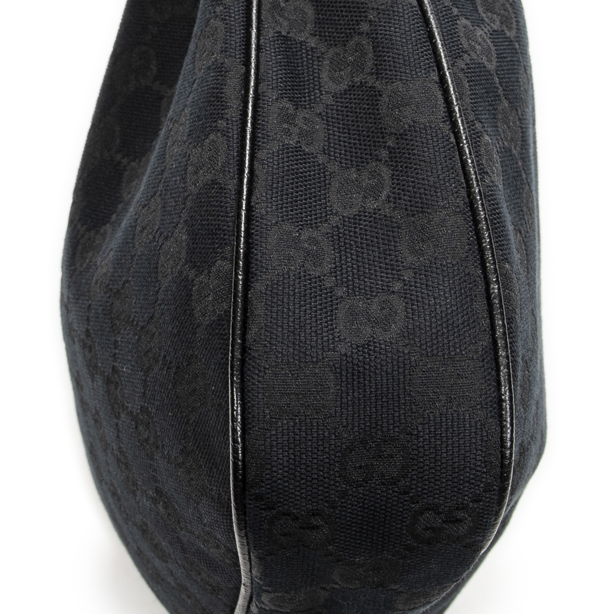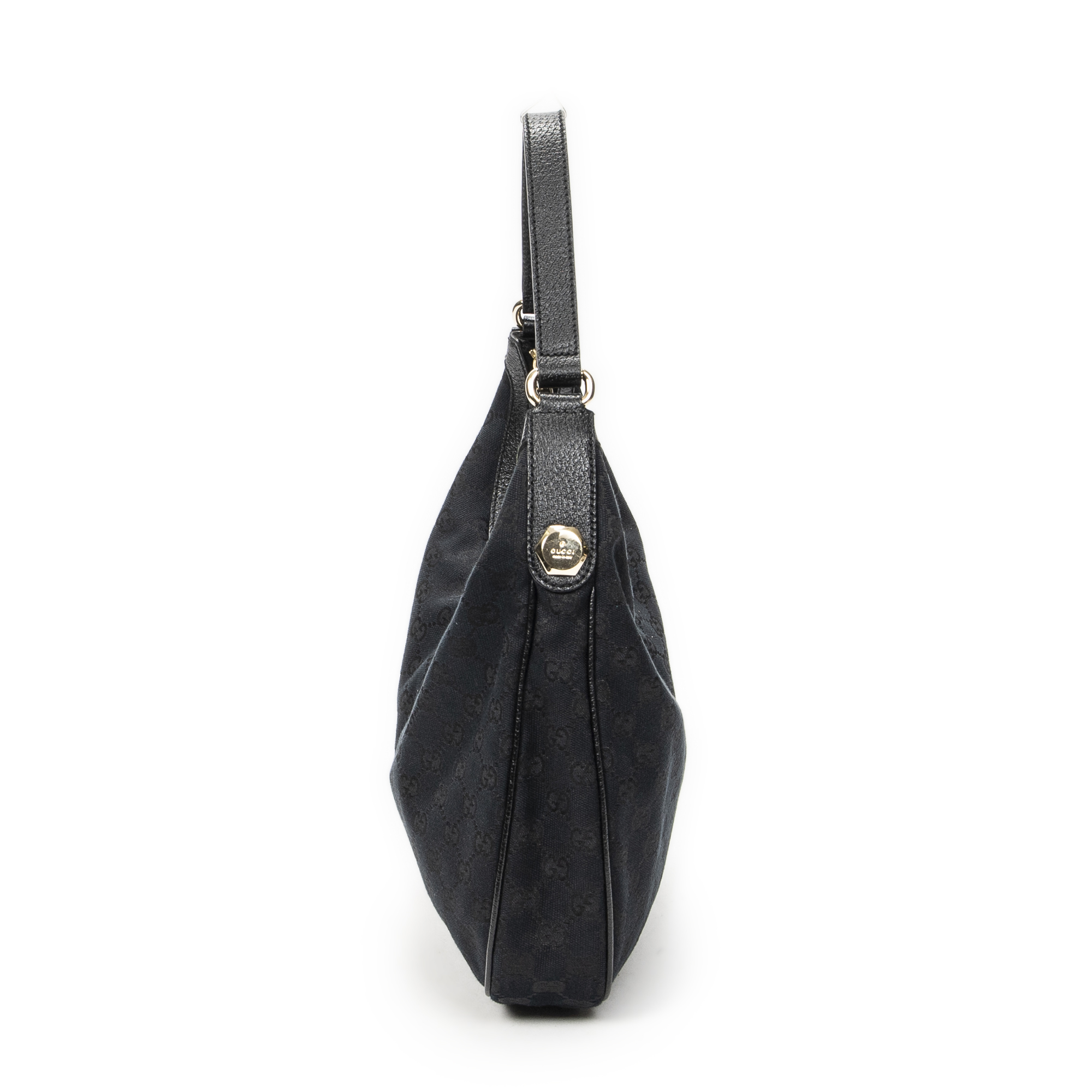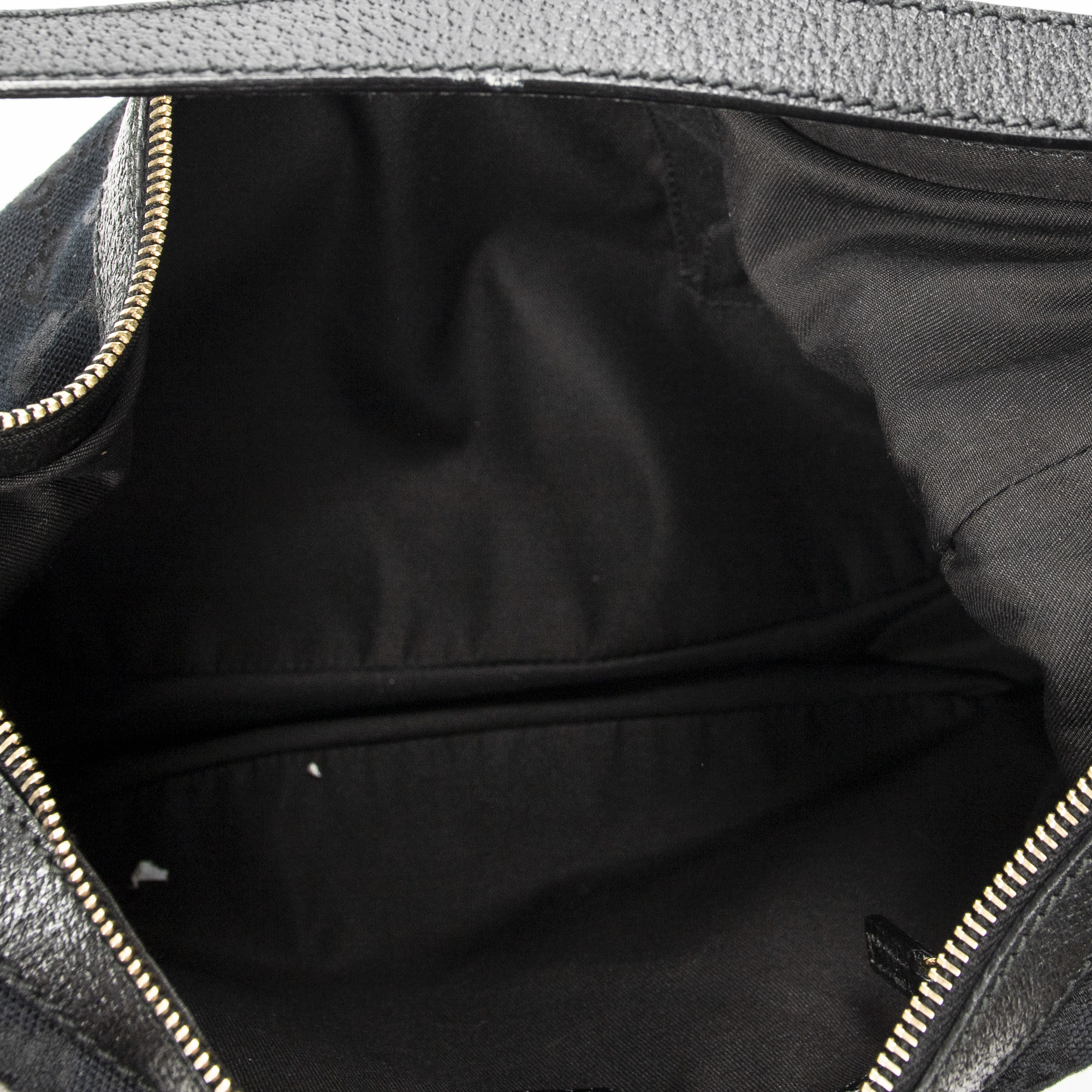 Gucci Shoulder Bag Small Charmy Hobo in Black Monogrammed Canvas and Gold hardware. The product is in Excellent Condition (A).