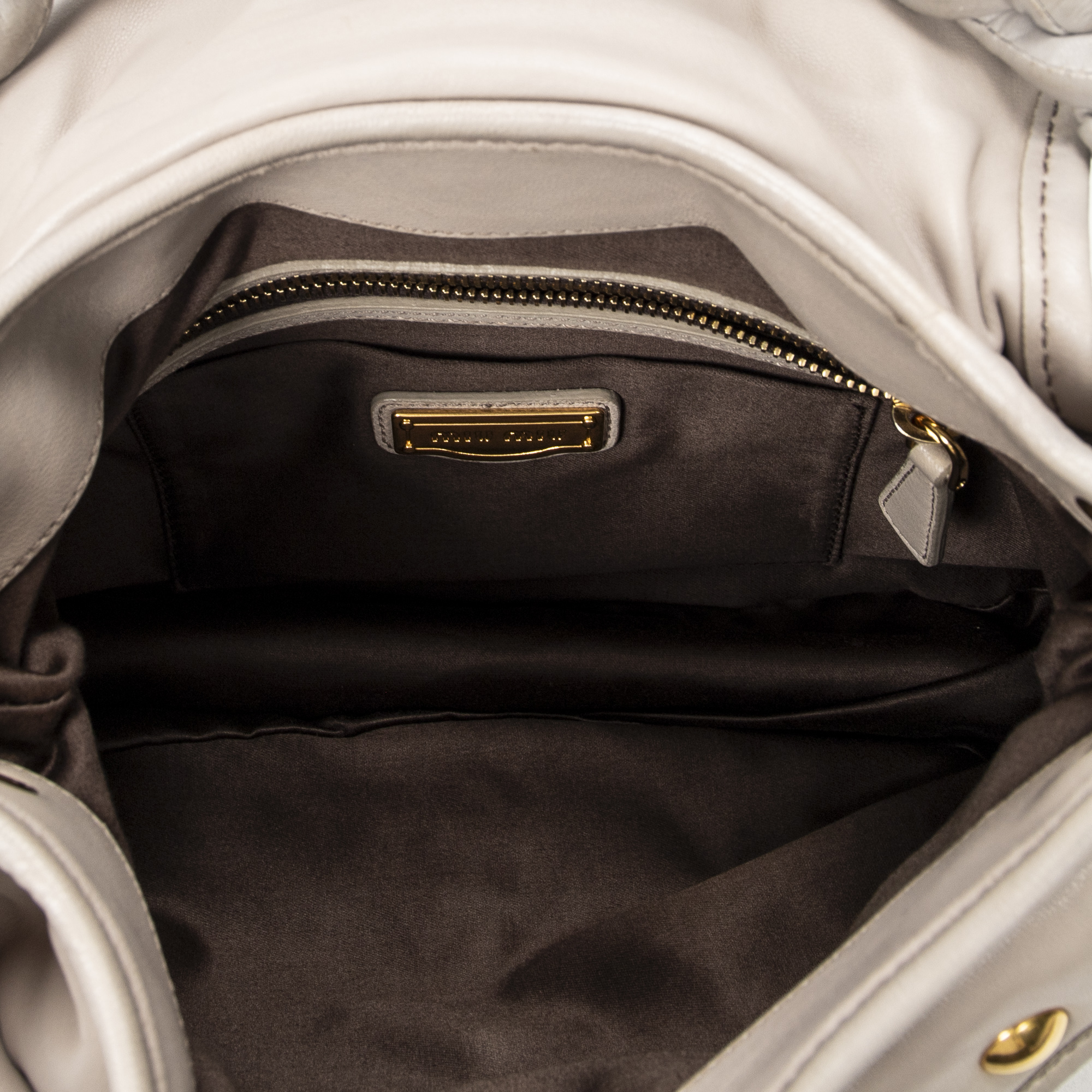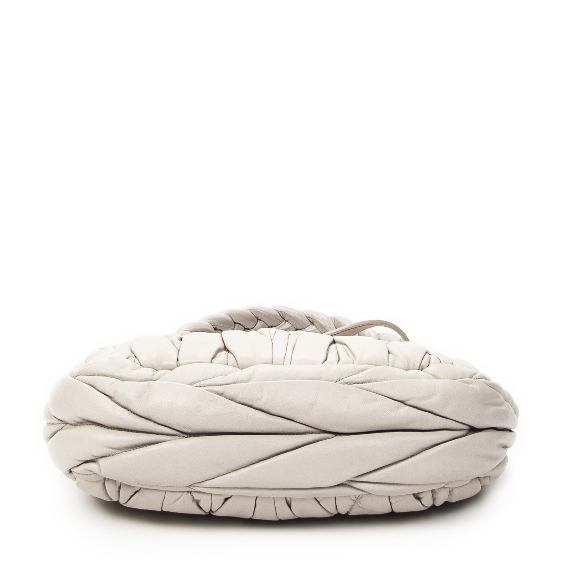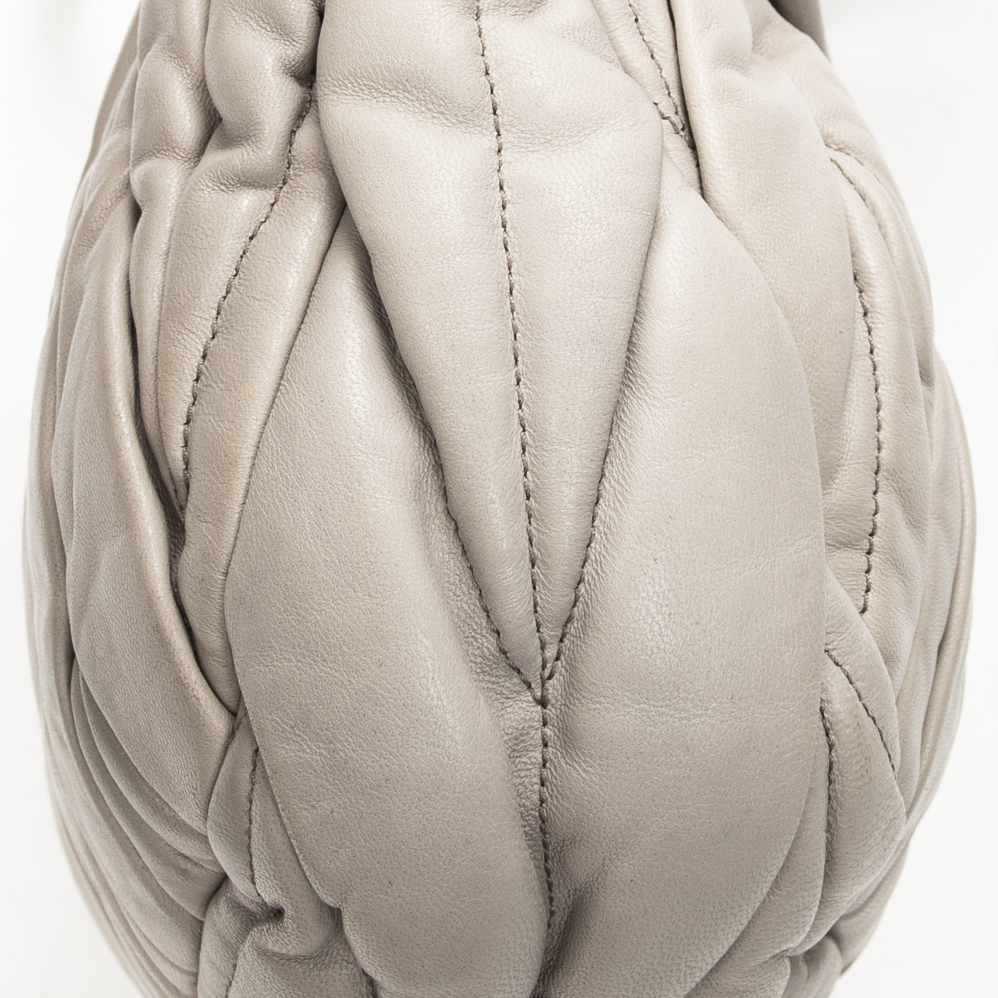 Miu Miu Shoulder Bag Small Coffer Double Pocket Hobo in Light Grey Matelasse Leather and Gold hardware. The product is in Excellent Condition (A).