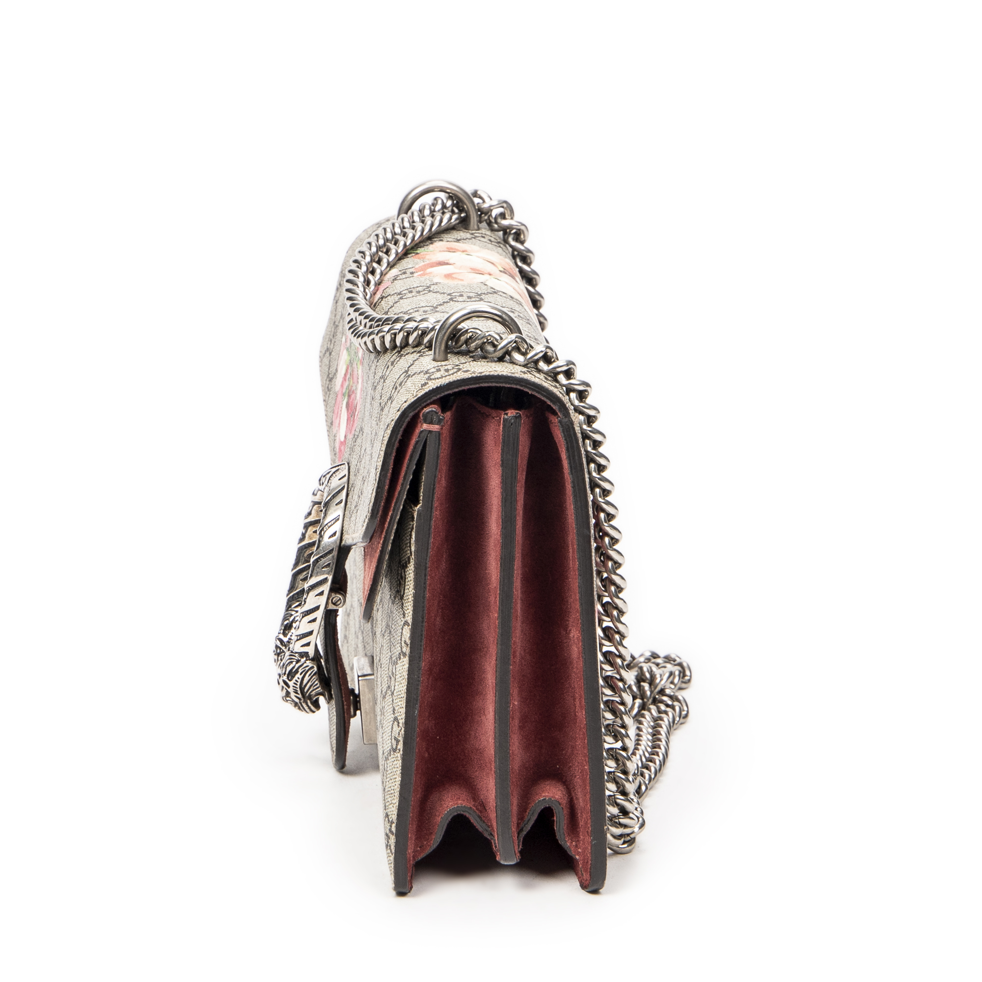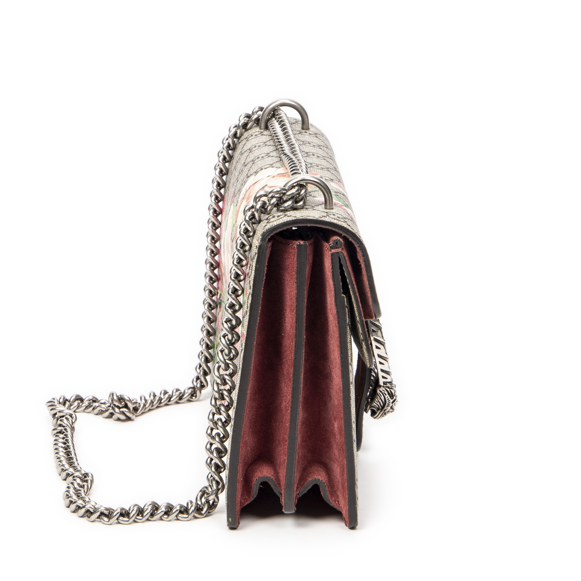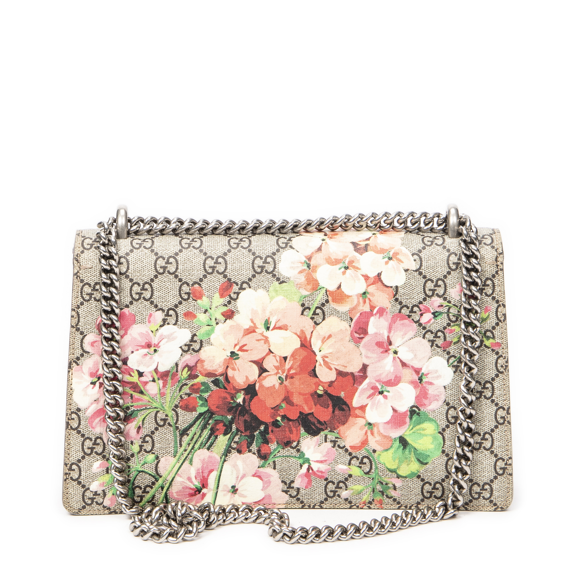 Gucci Shoulder Bag Small Dionysus Chain Crossbody in Beige/Pink Blooms Supreme Coated Canvas and Silver hardware. The product is in Excellent Condition (A).