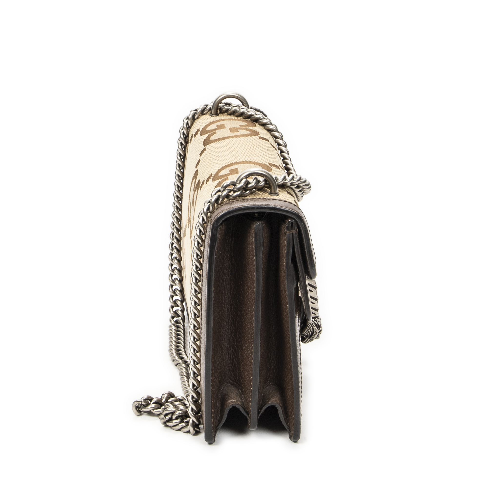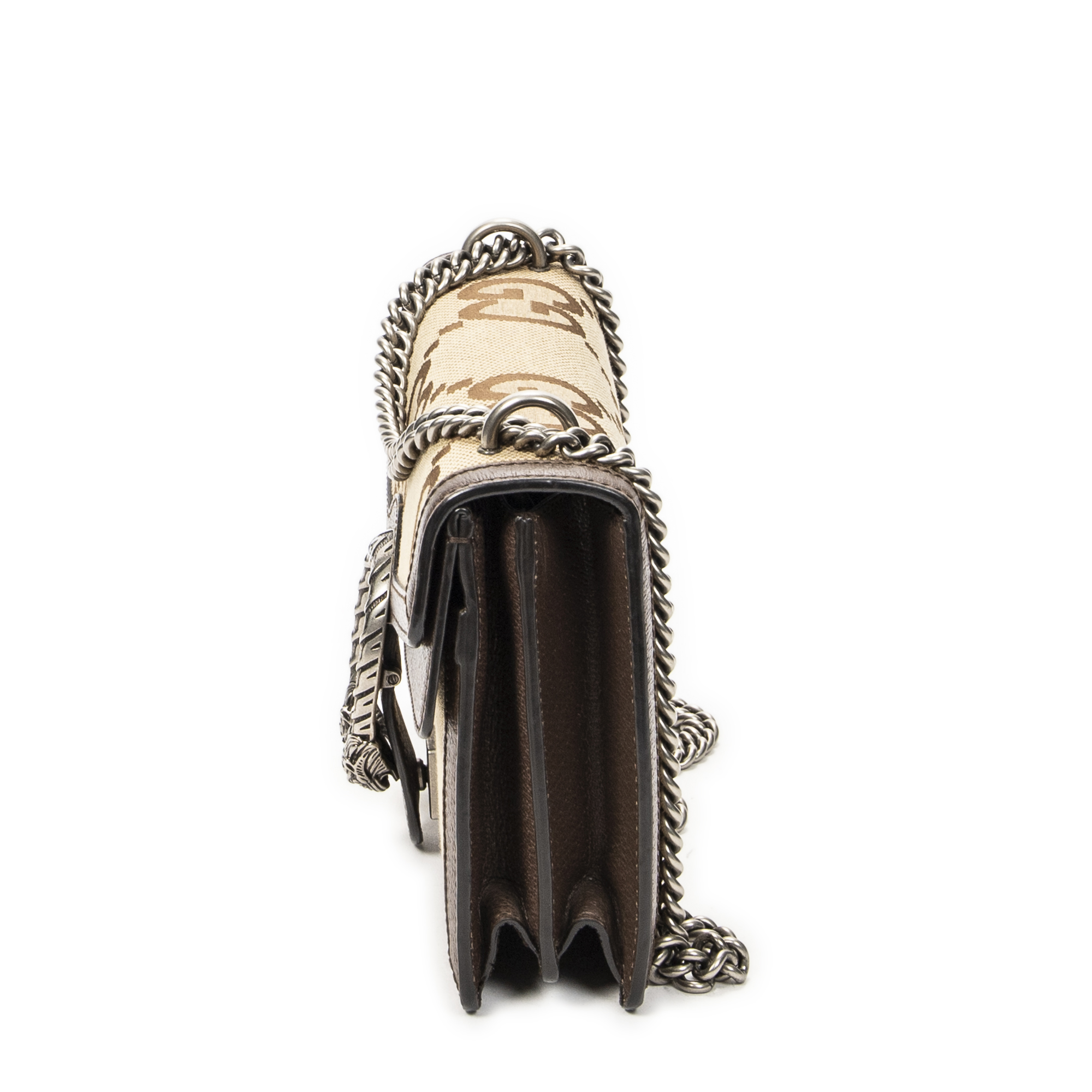 Gucci Shoulder Bag Small Dionysus Chain Crossbody in Brown/Beige Jumbo GG Canvas and Silver hardware. The product is in Excellent Condition (A).