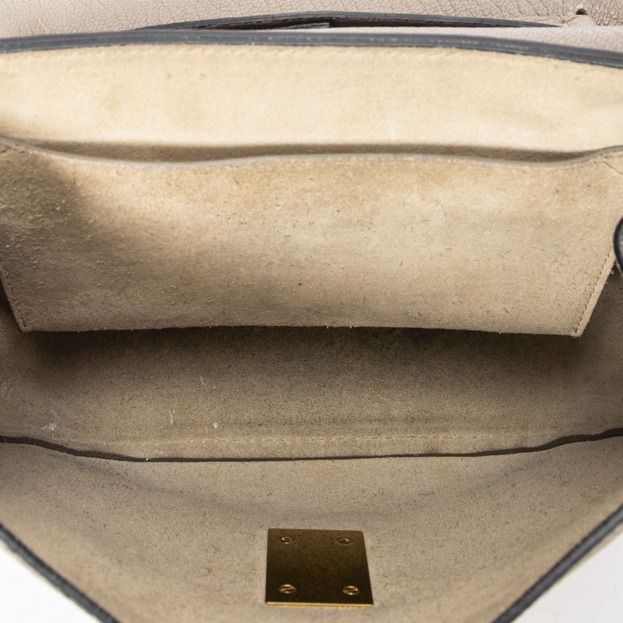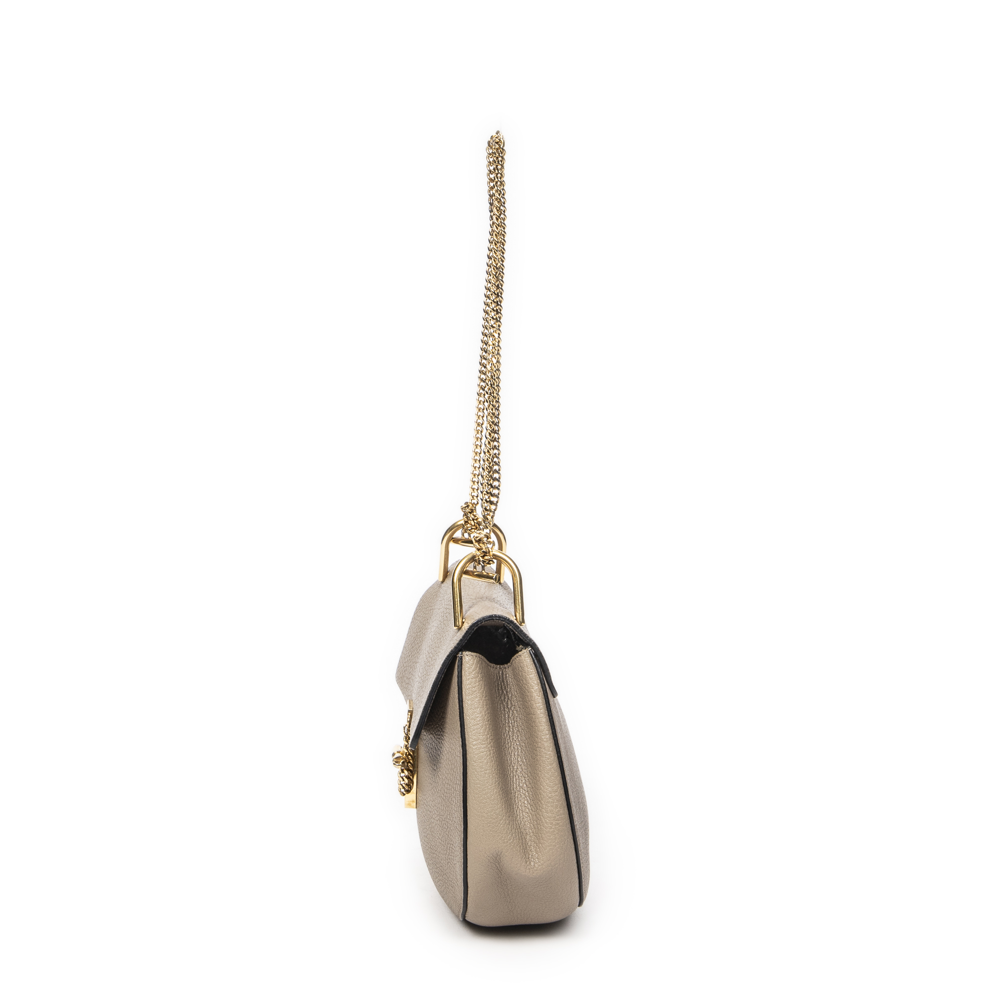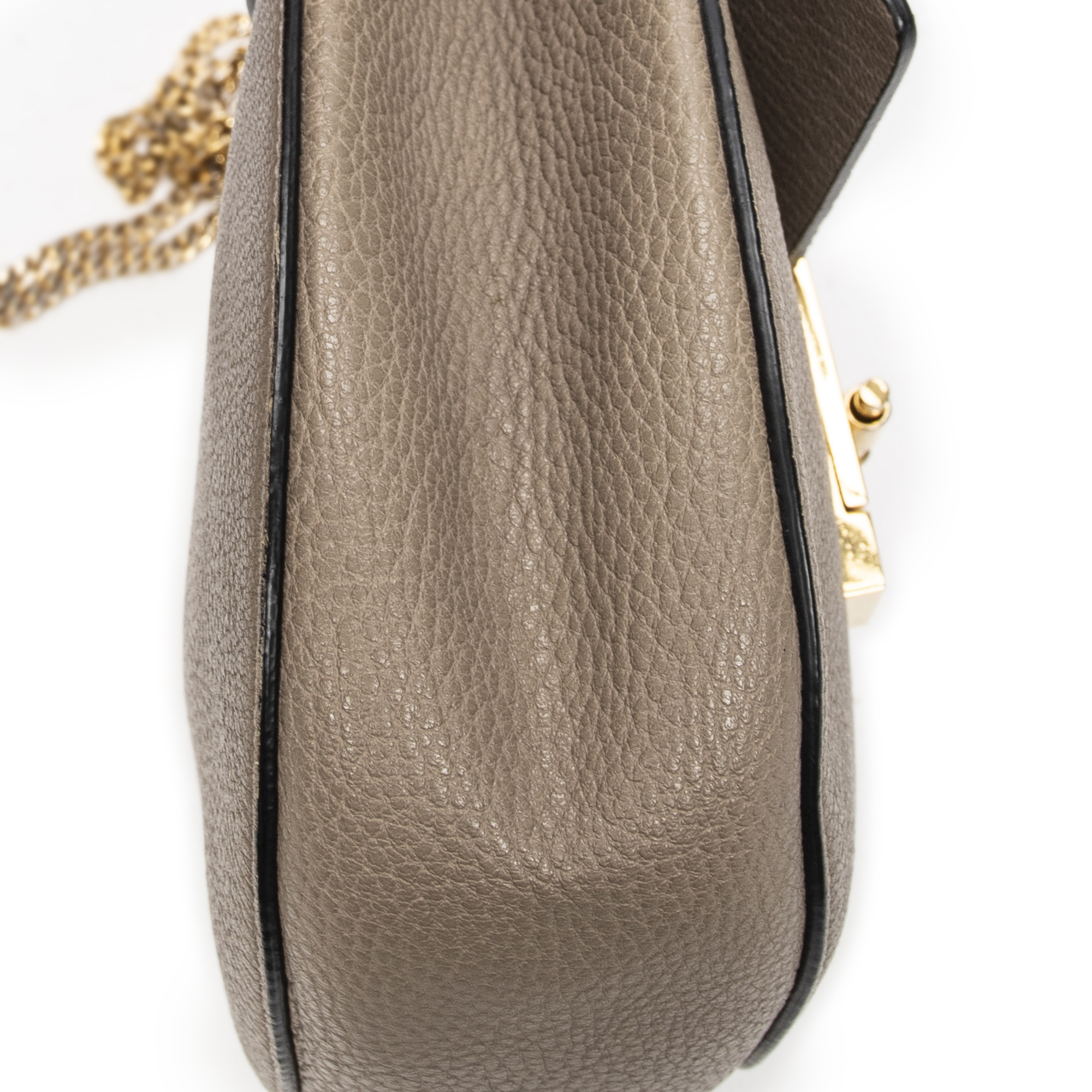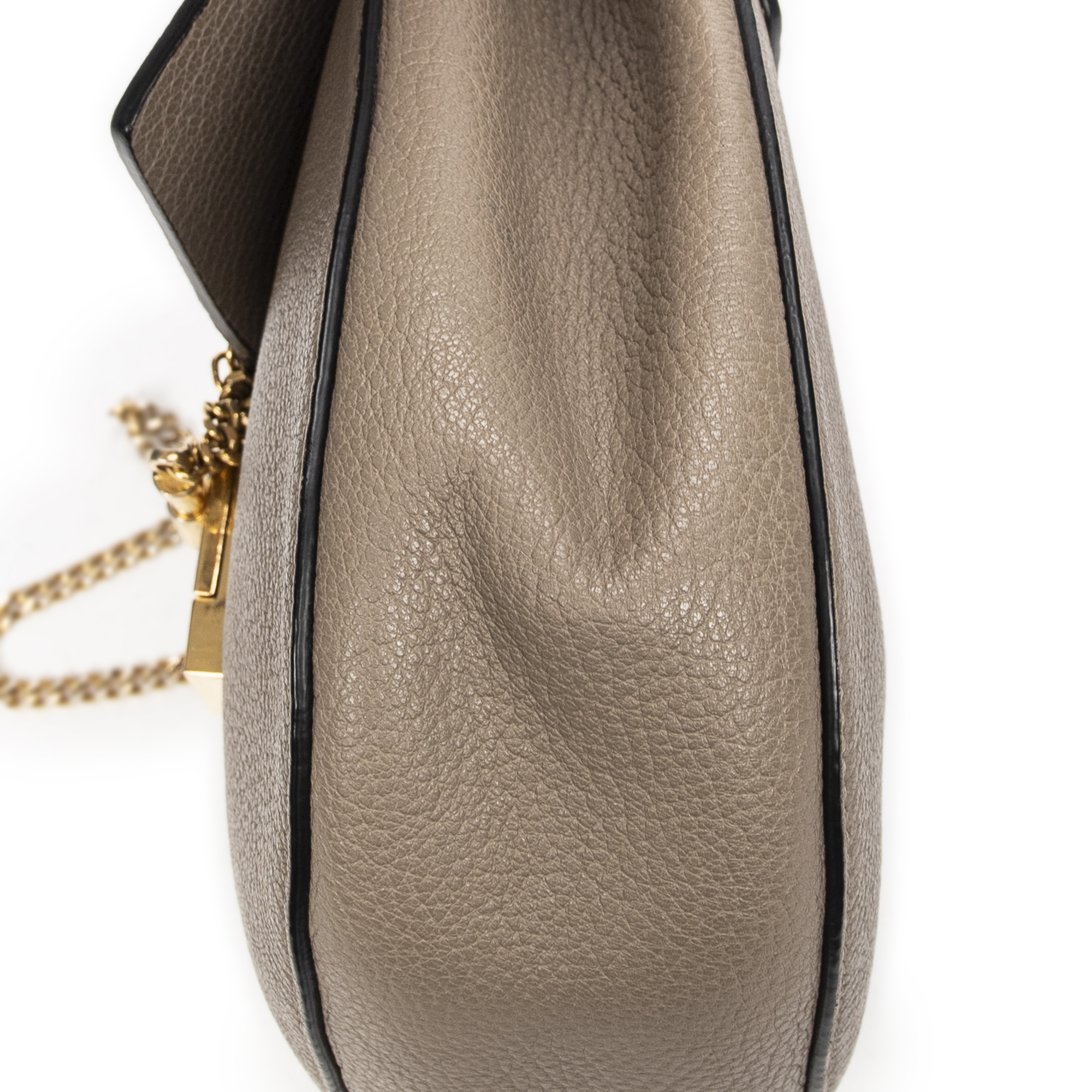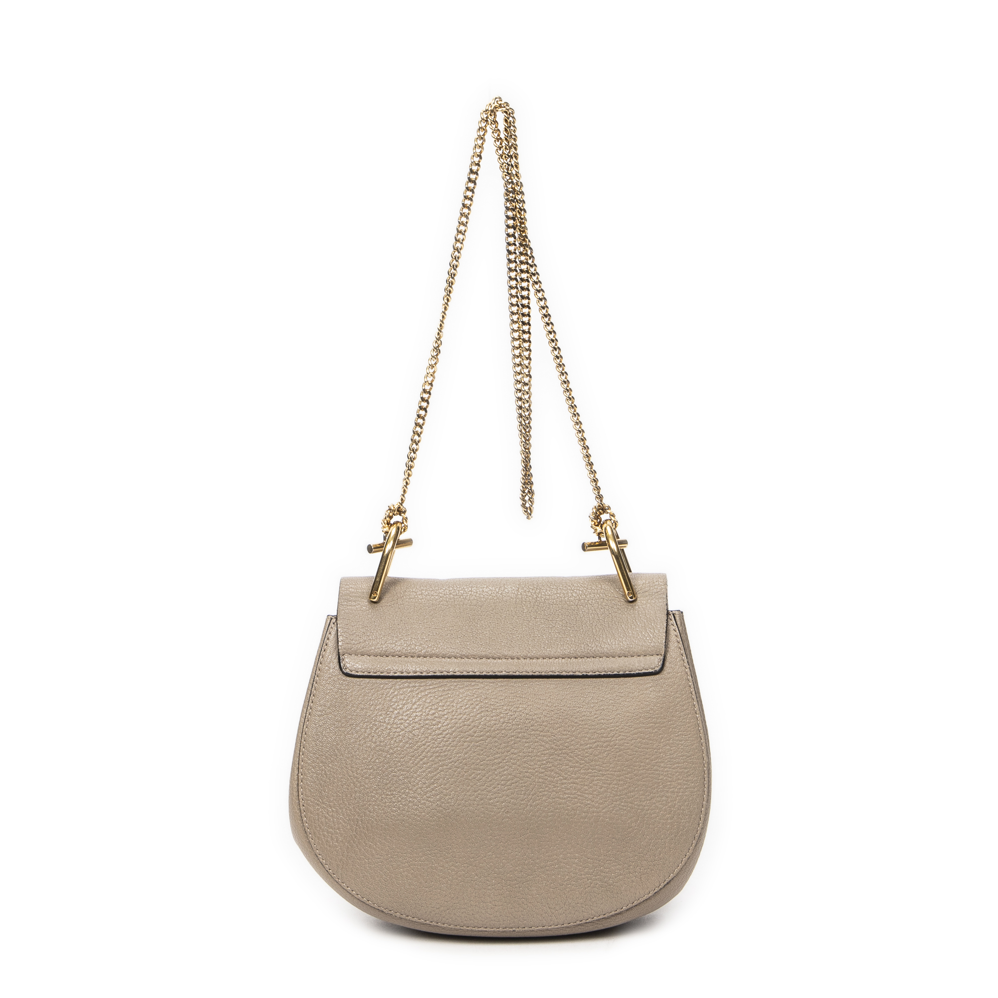 Chloé Shoulder Bag Small Drew in Taupe Grained Calfskin Leather and Gold hardware. The product is in Very Good Condition (AB).