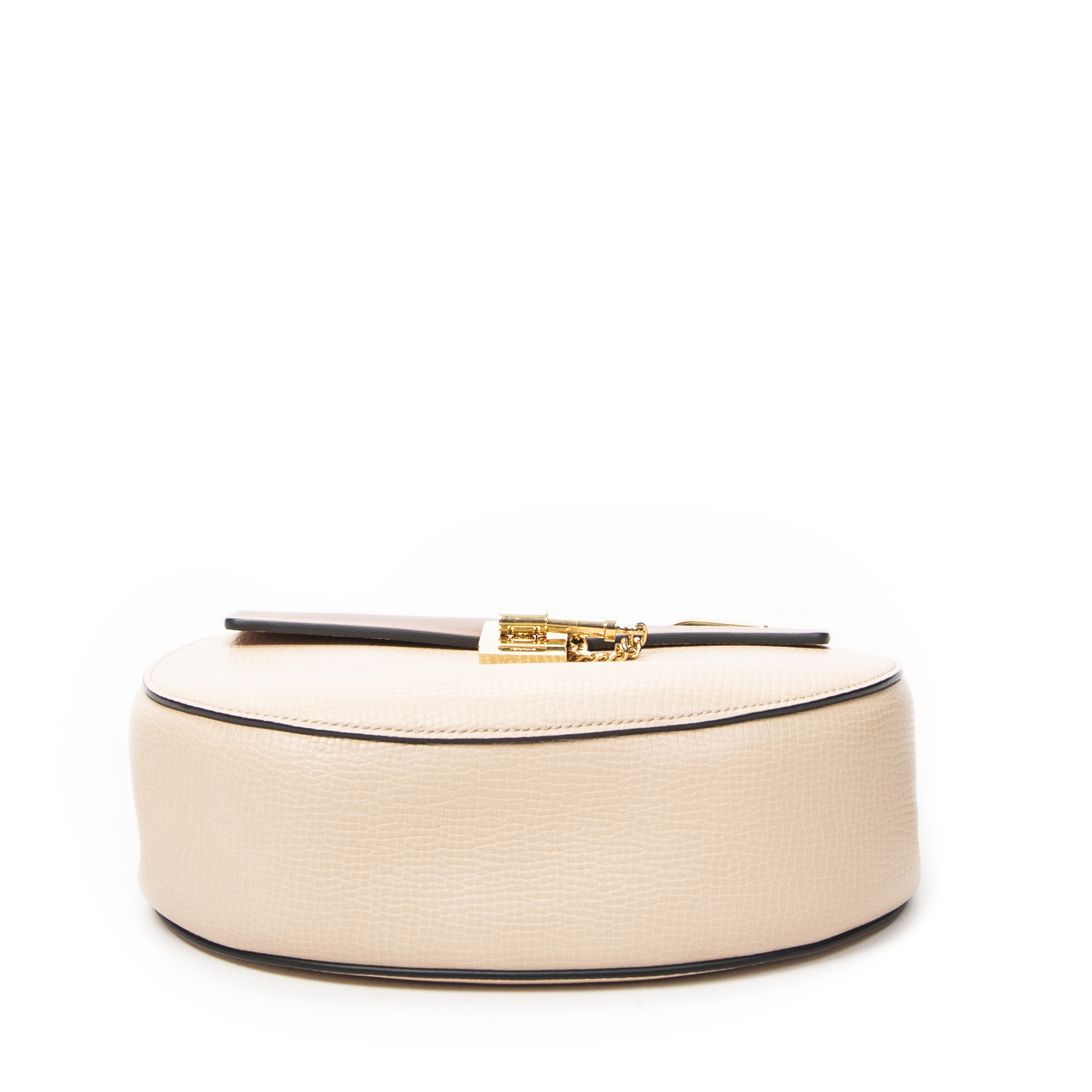 Chloé Shoulder Bag Small Drew in Beige/Brown Grained Calfskin Leather and Gold hardware. The product is in Excellent Condition (A).