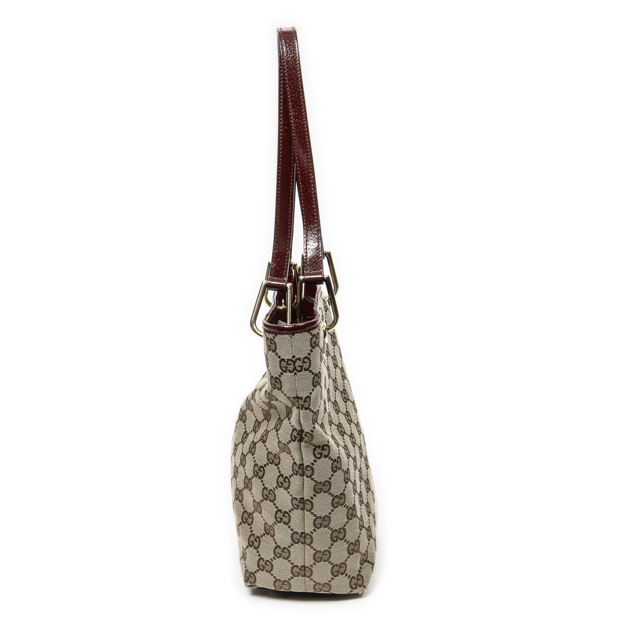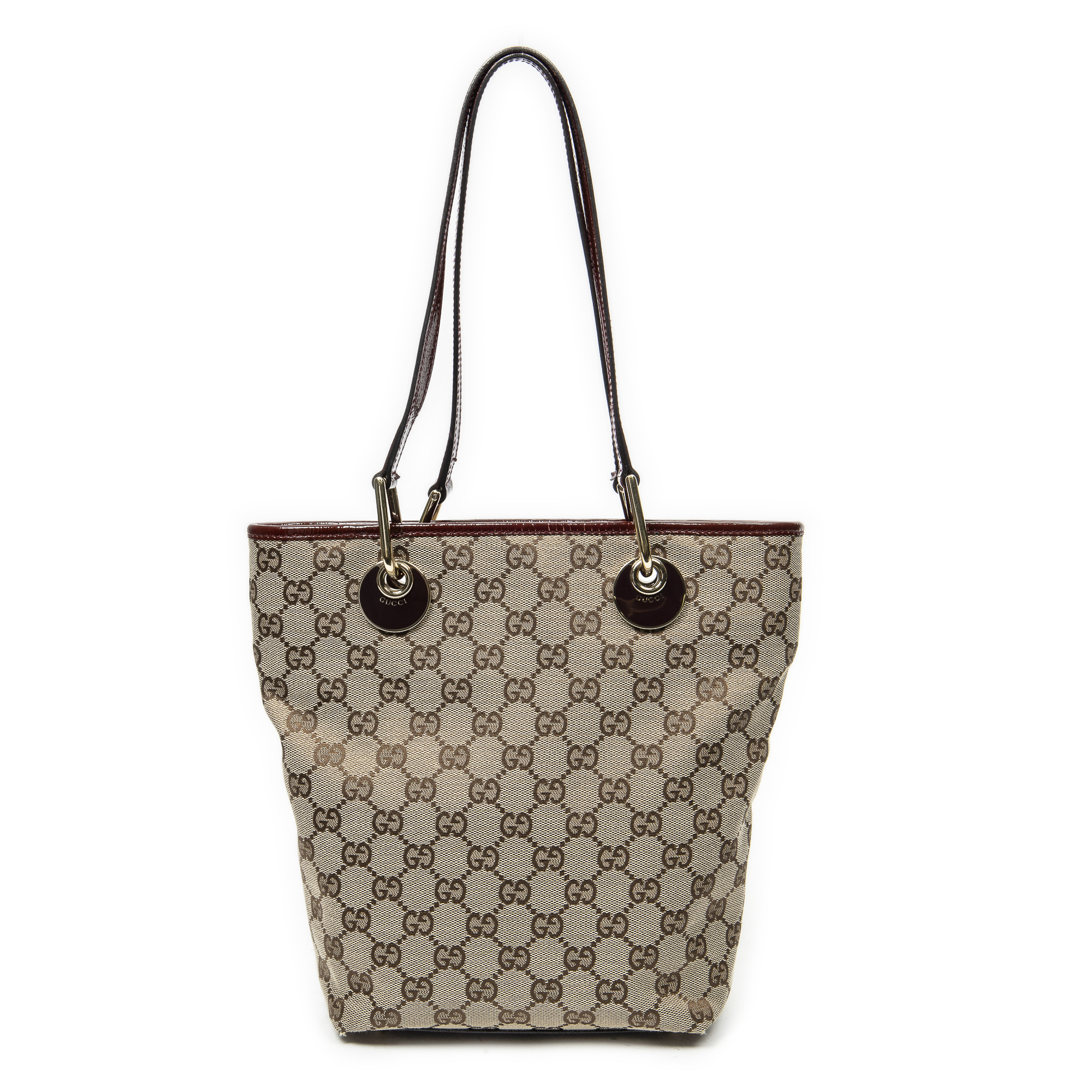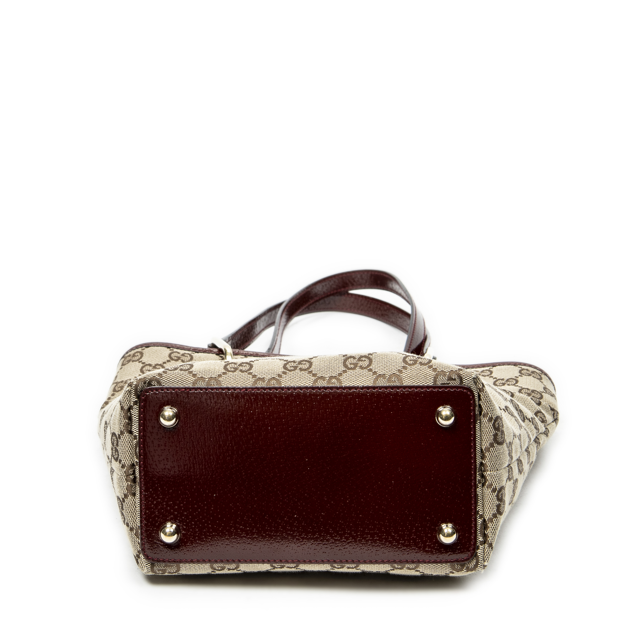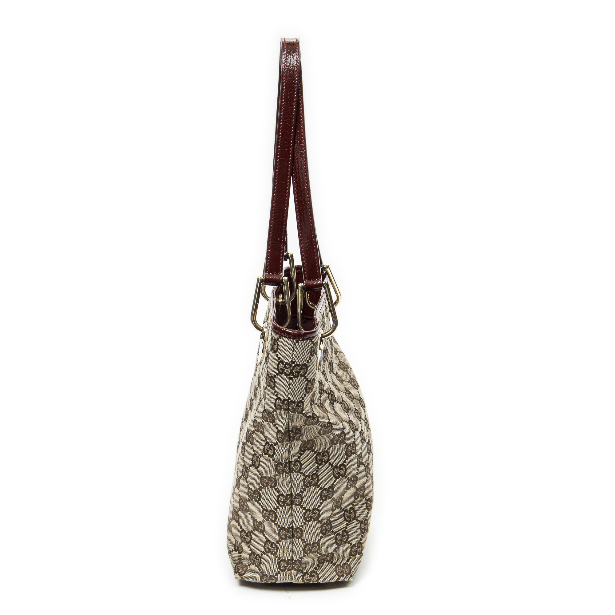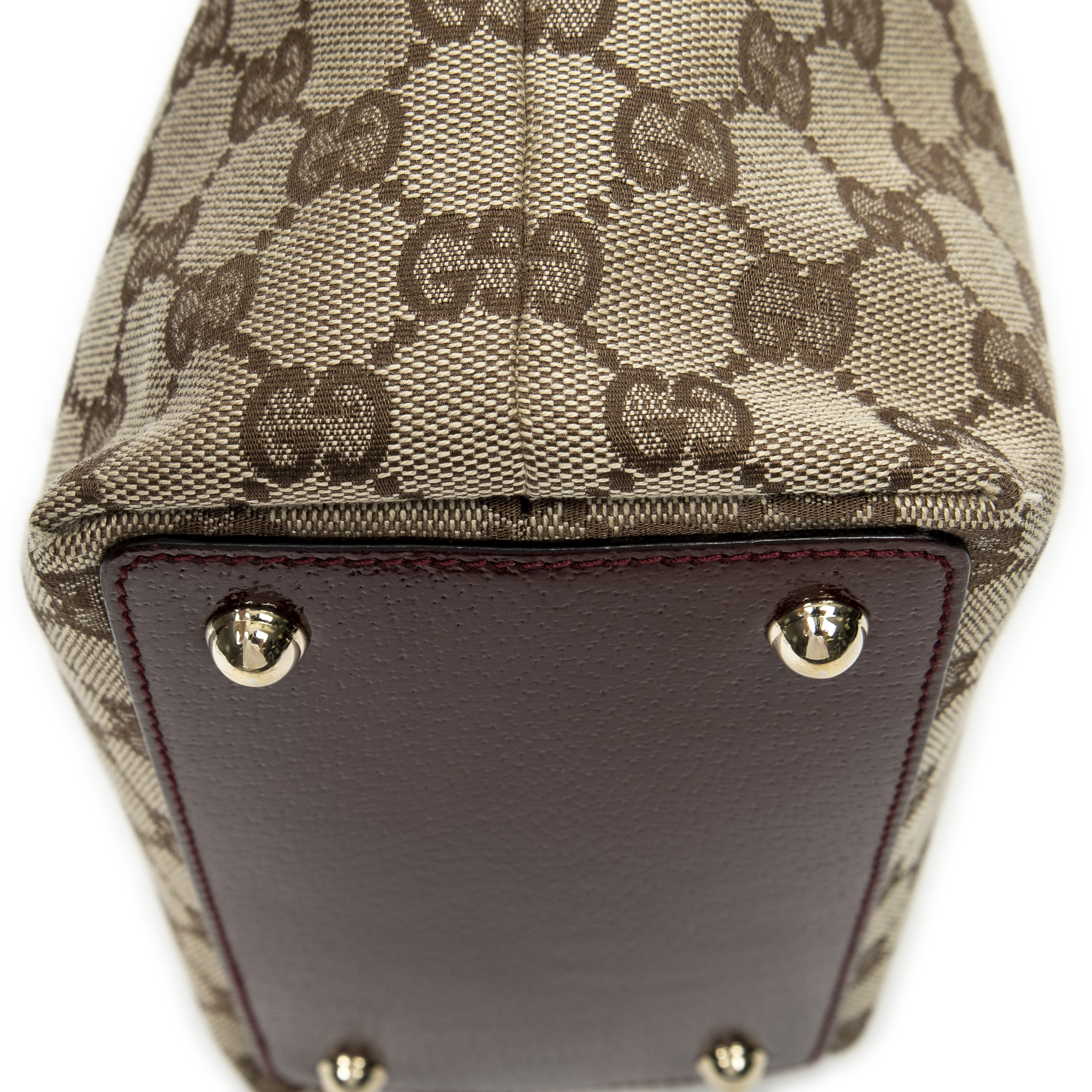 Gucci Shoulder Bag Small Eclipse Shopping in Beige/Red Monogrammed Canvas and Gold hardware. The product is in Excellent Condition (A).