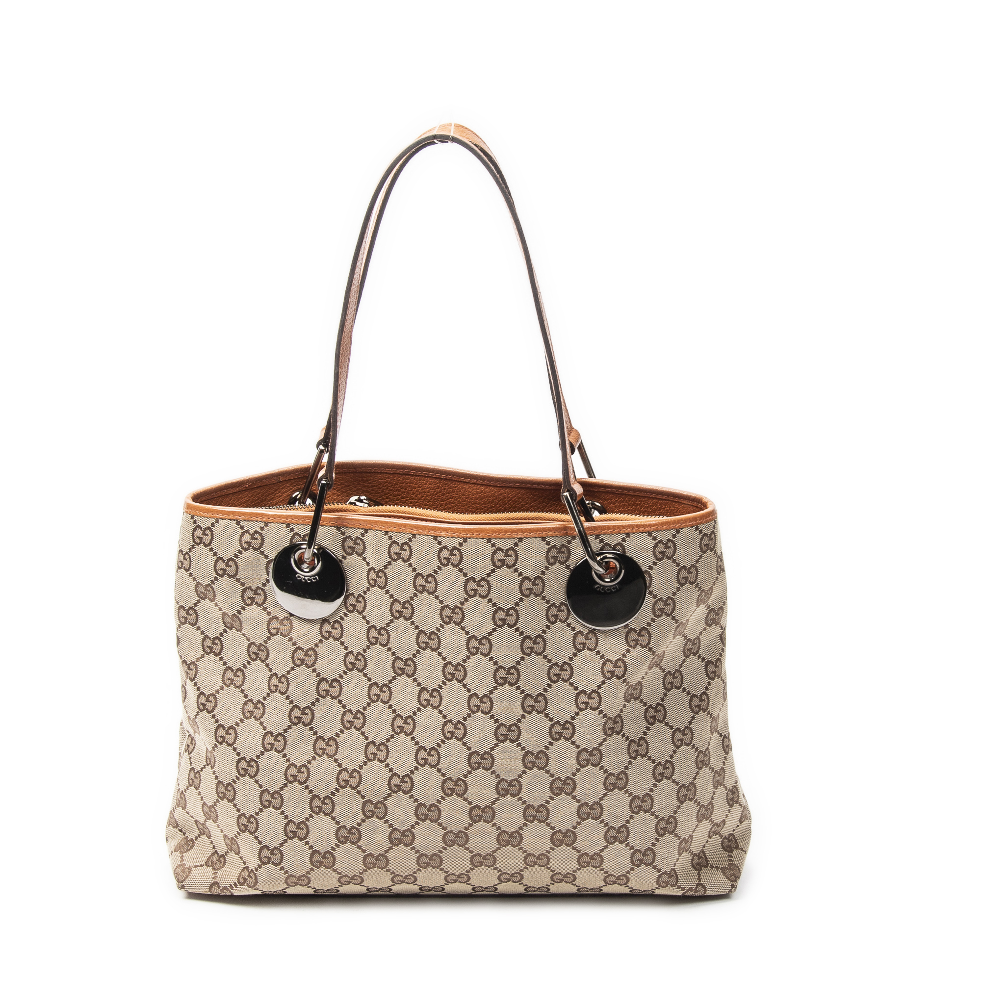 Description : Gucci Shoulder Bag Small Eclipse Tote in Beige/Orange Monogrammed Canvas and Silver hardware. The product is in Excellent Condition (A). Dimensions: 32x24.5x10 cm SKU: ABC4584 Serial number: 120837-001998 Accessories Included: None Delivery: We have a 5 to 7 business days delivery policy, hassle-free and duties/tariffs included! BrandCo Paris finds rare and top condition items at great deals, they are worth your patience! Shop with confidence - All BrandCo Paris items are carefully selected and authenticated by our team of experts. All the items come with an authenticity certificate and packaging delivered by BrandCo Paris. Item Condition Grading Table N (Like New) AA (Perfect Condition) A (Excellent Condition) AB (Very Good Condition) B (Good/Fair)