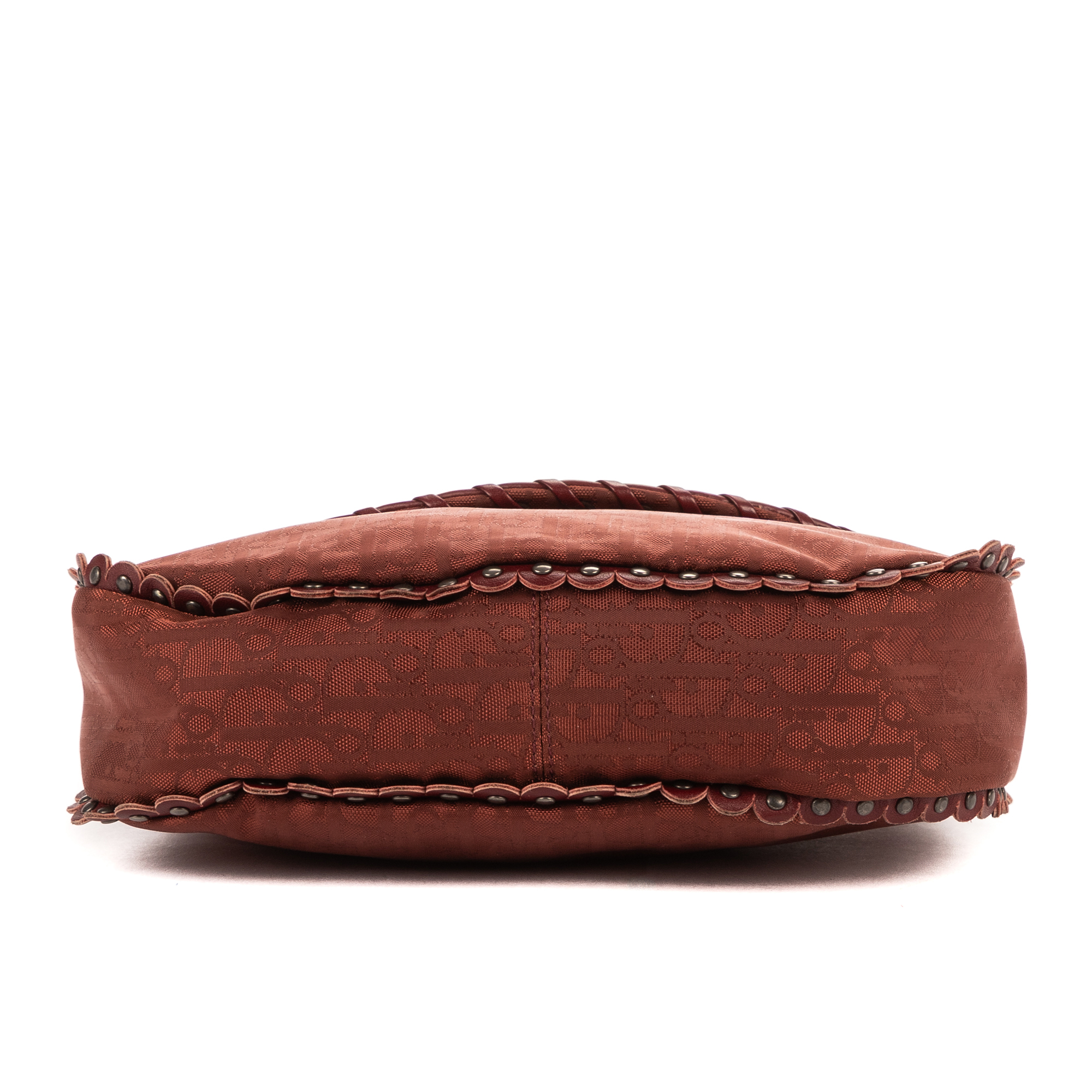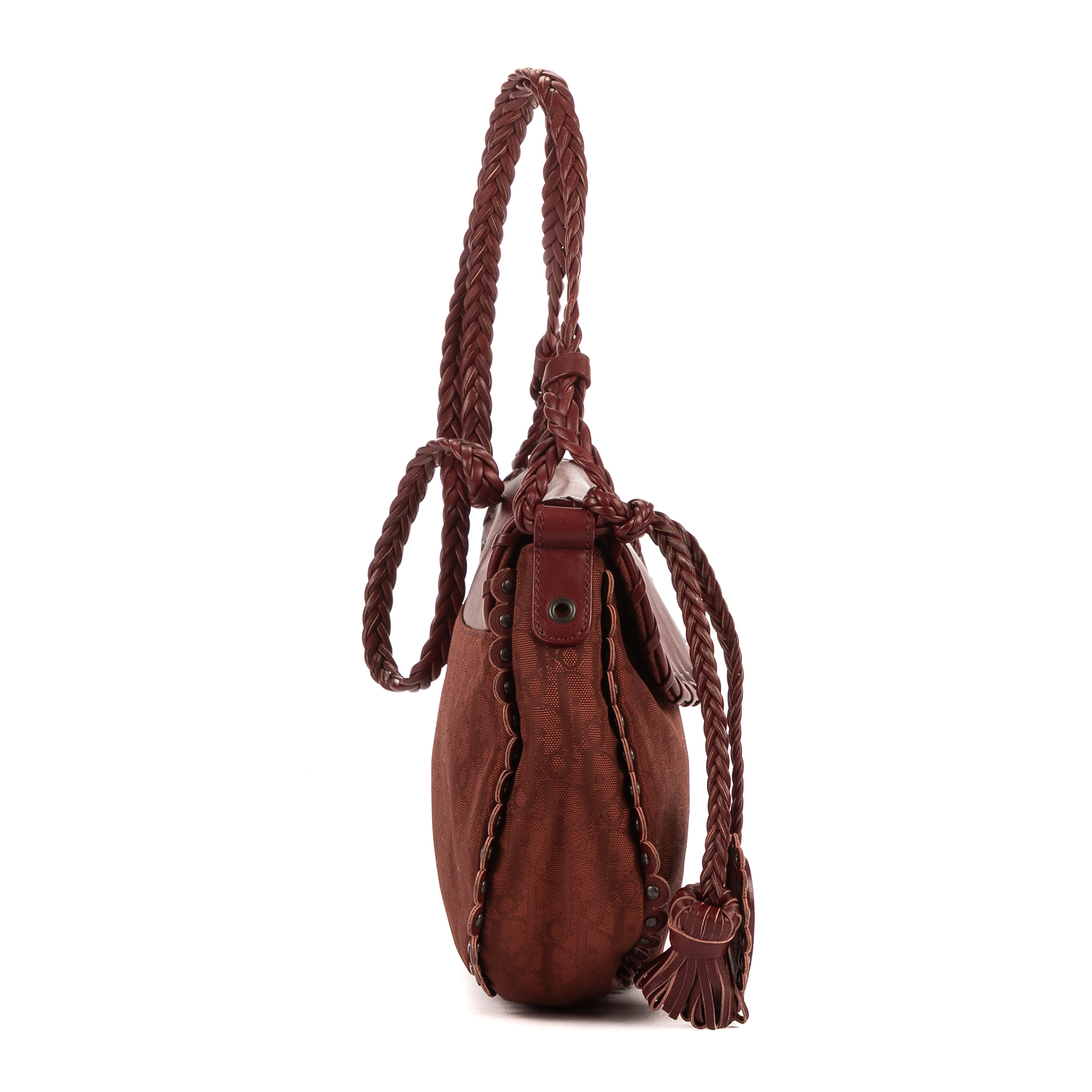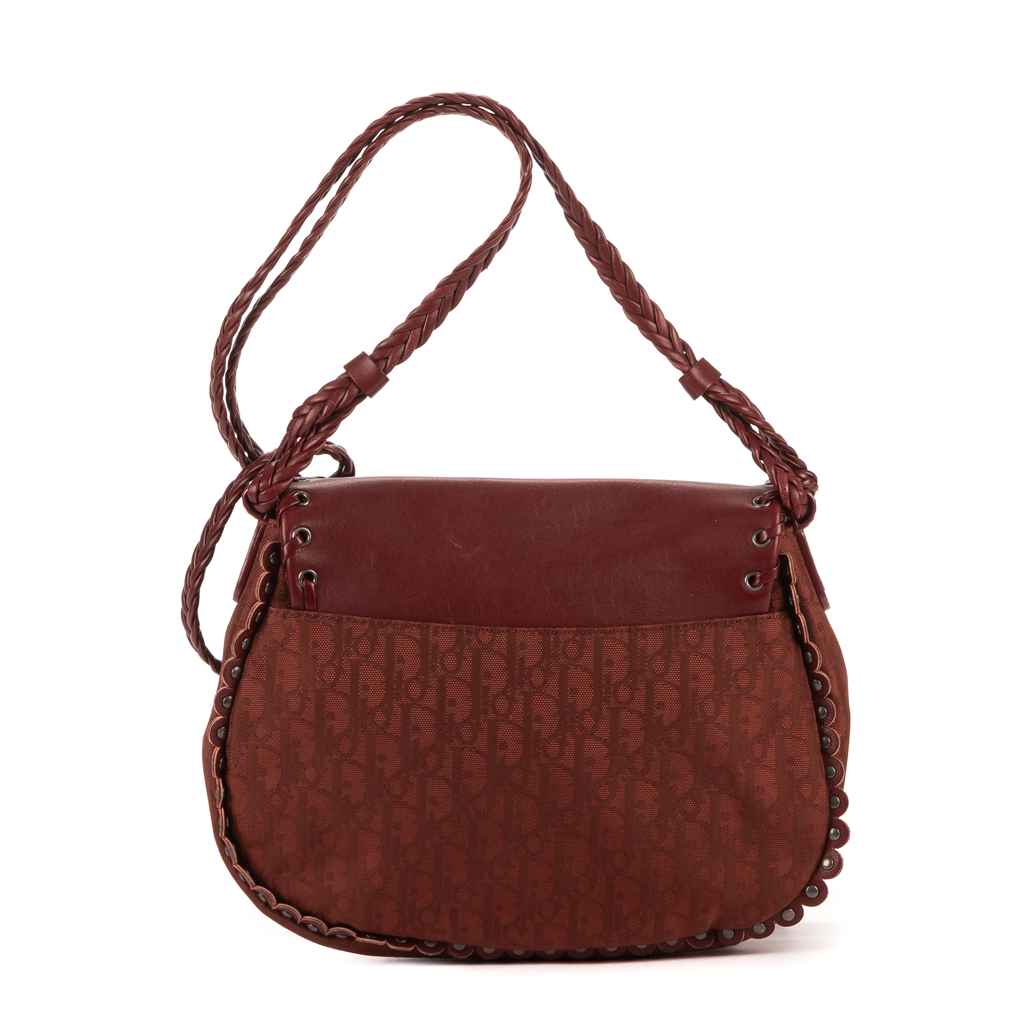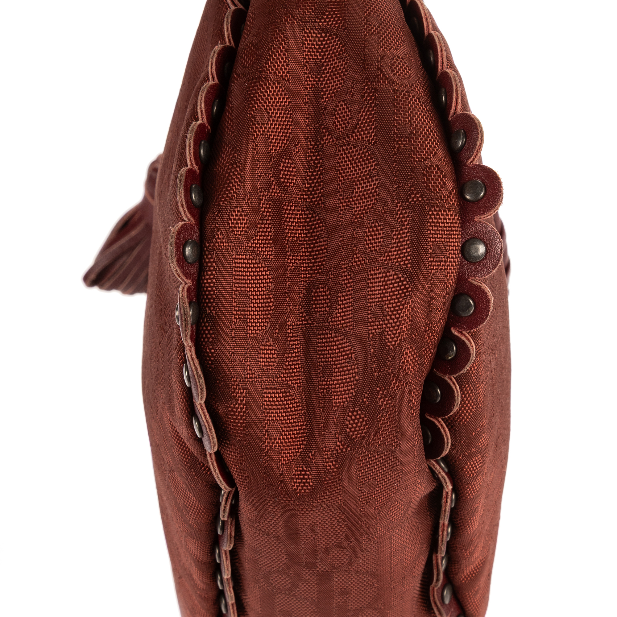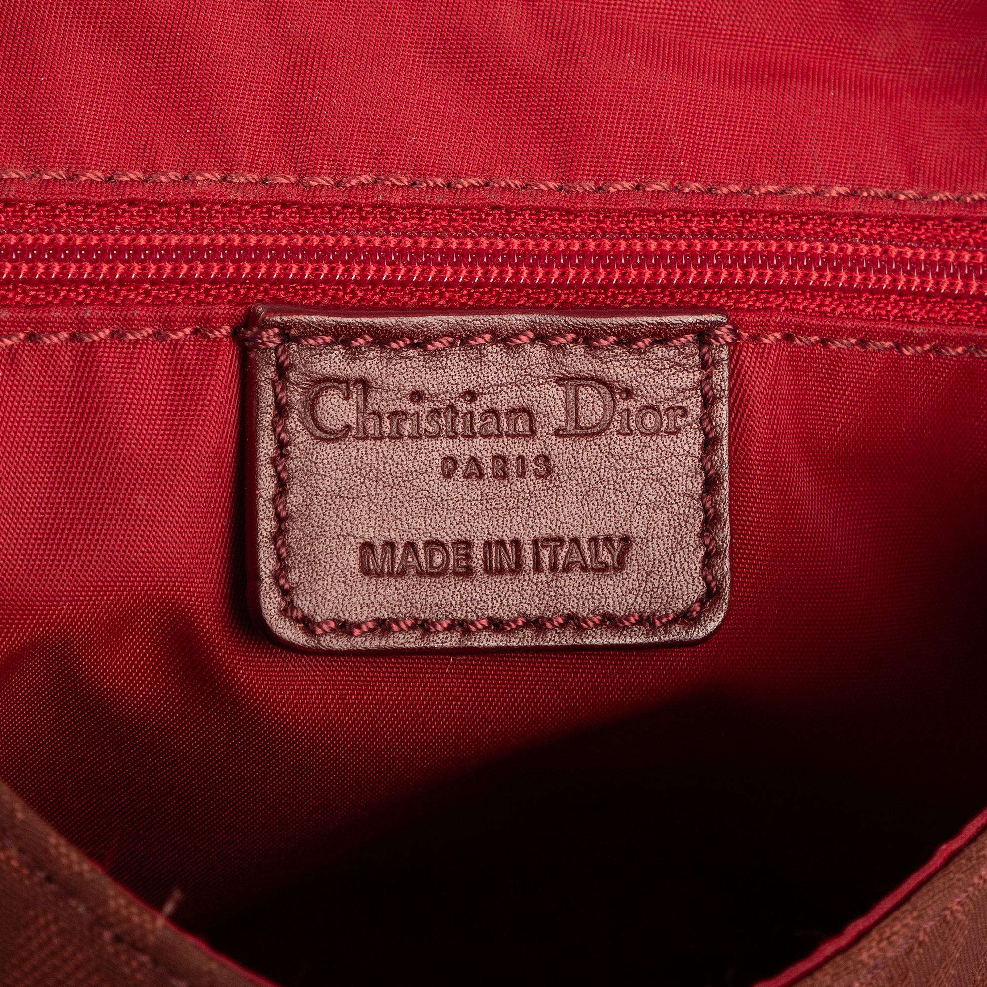 Dior Shoulder Bag Small Ethnic Crossbody in Maroon Diorissimo Nylon Canvas and Aged Brass hardware. The product is in Excellent Condition (A).