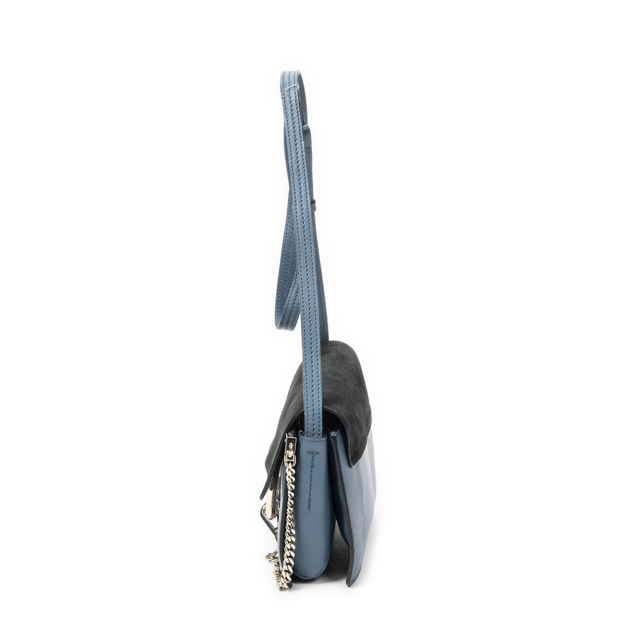 Chloé Shoulder Bag Small Faye in Blue Calfskin Leather and Gold hardware. The product is in Excellent Condition (A).