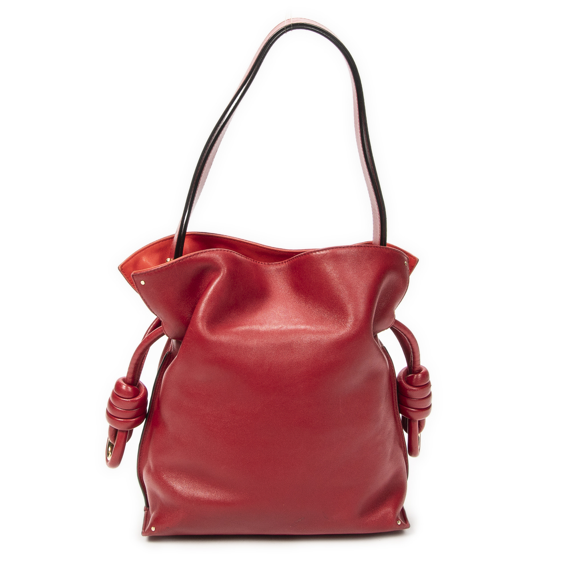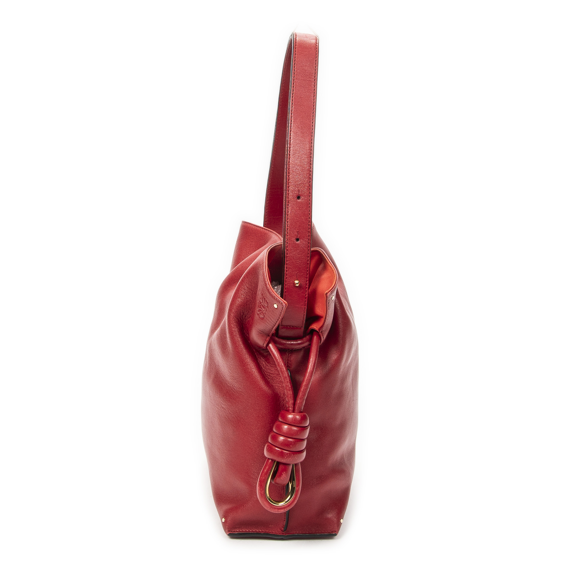 Loewe Shoulder Bag Small Flamenco Knot in Red Calfskin Leather and Gold hardware. The product is in Very Good Condition (AB).