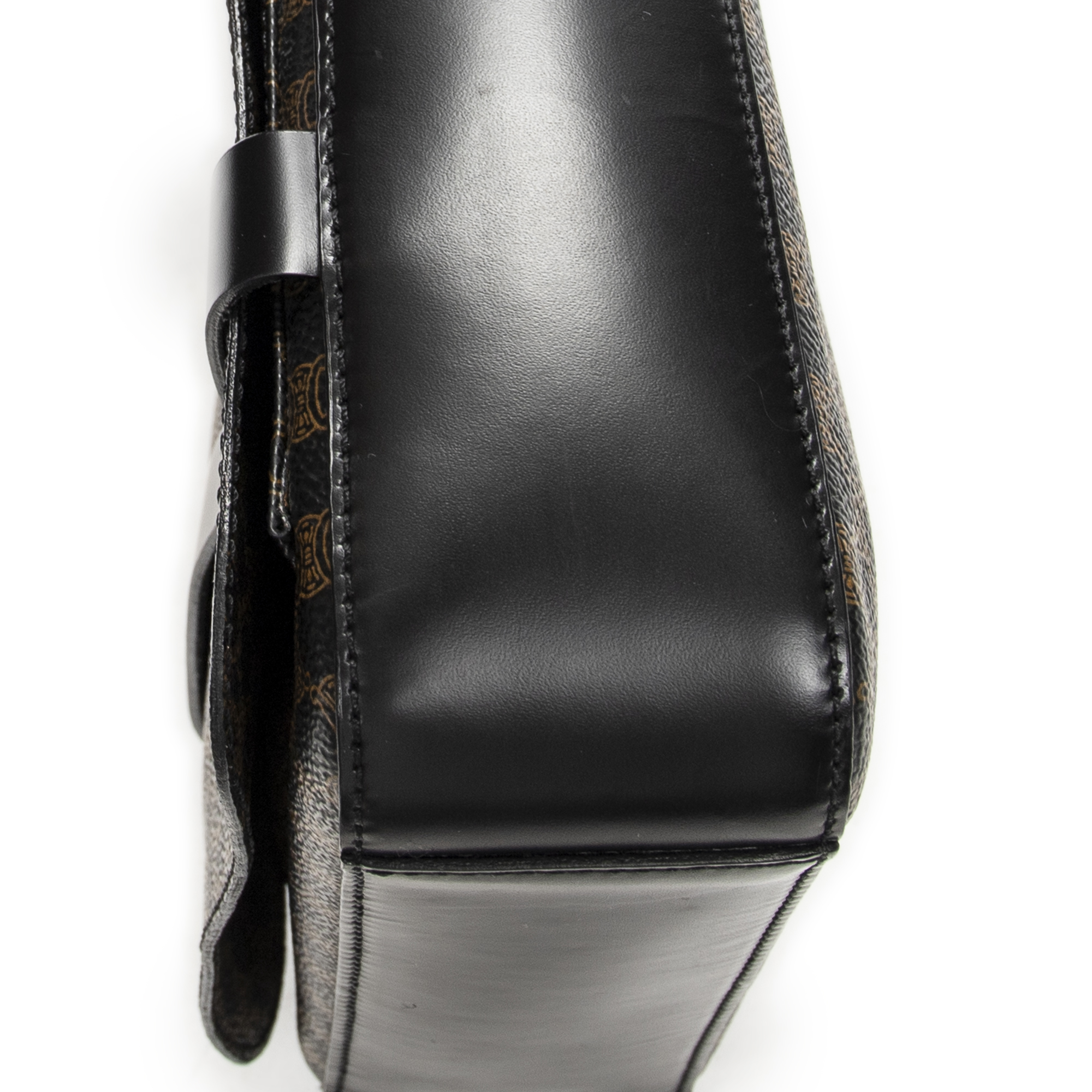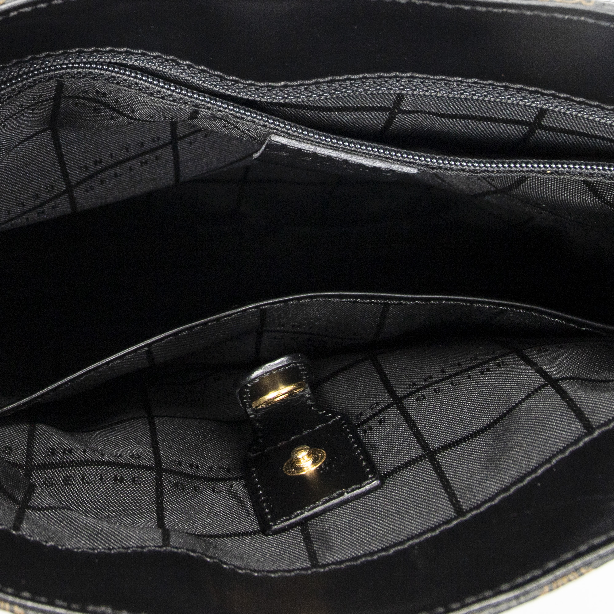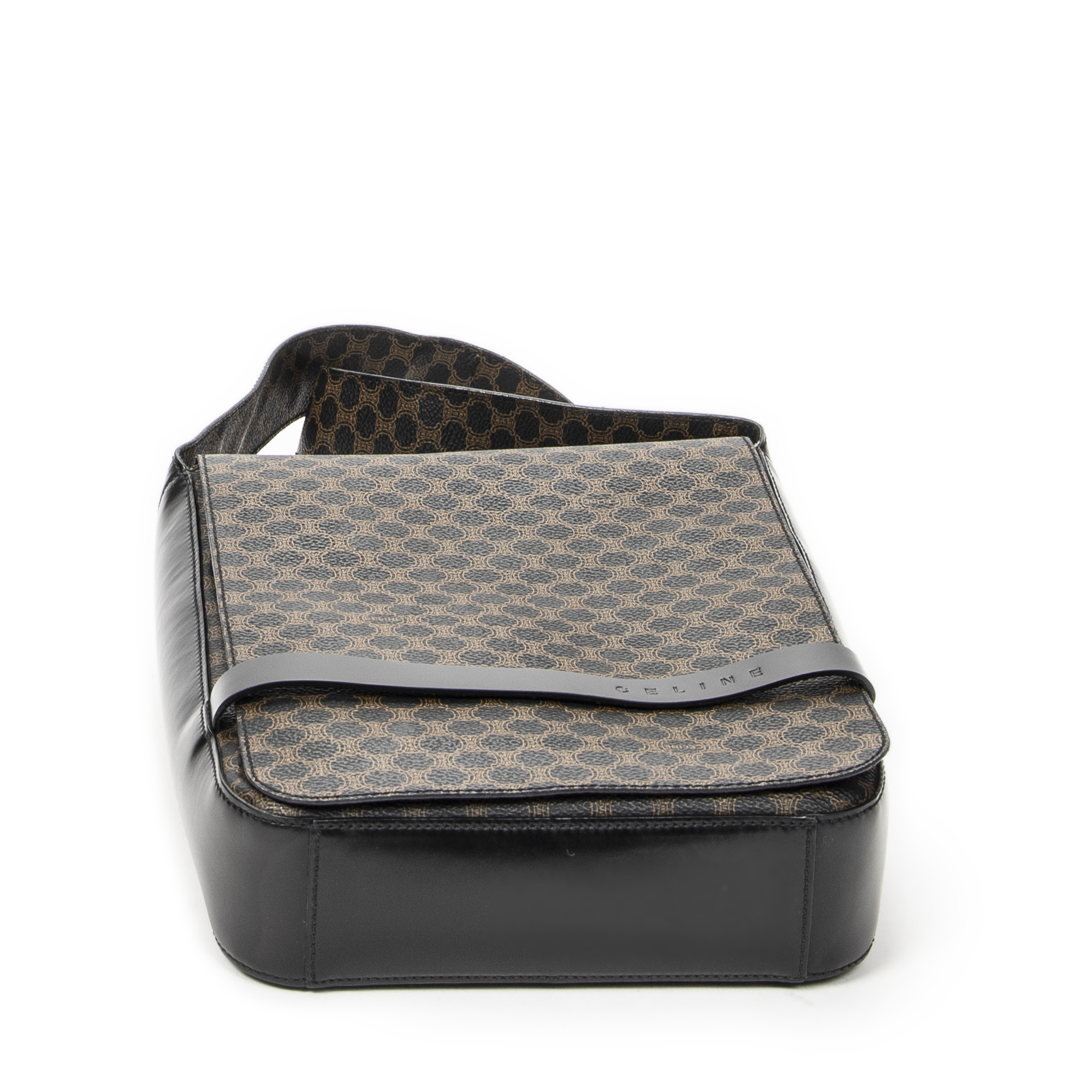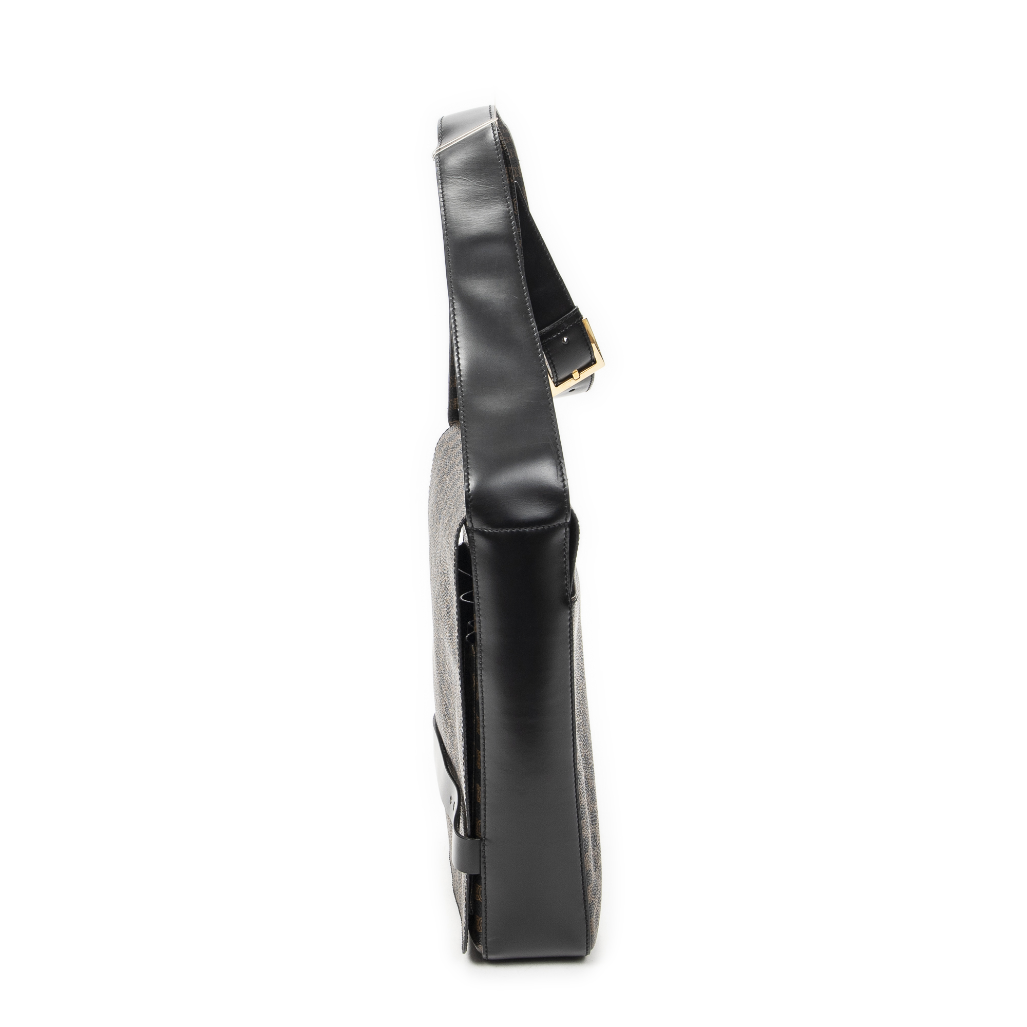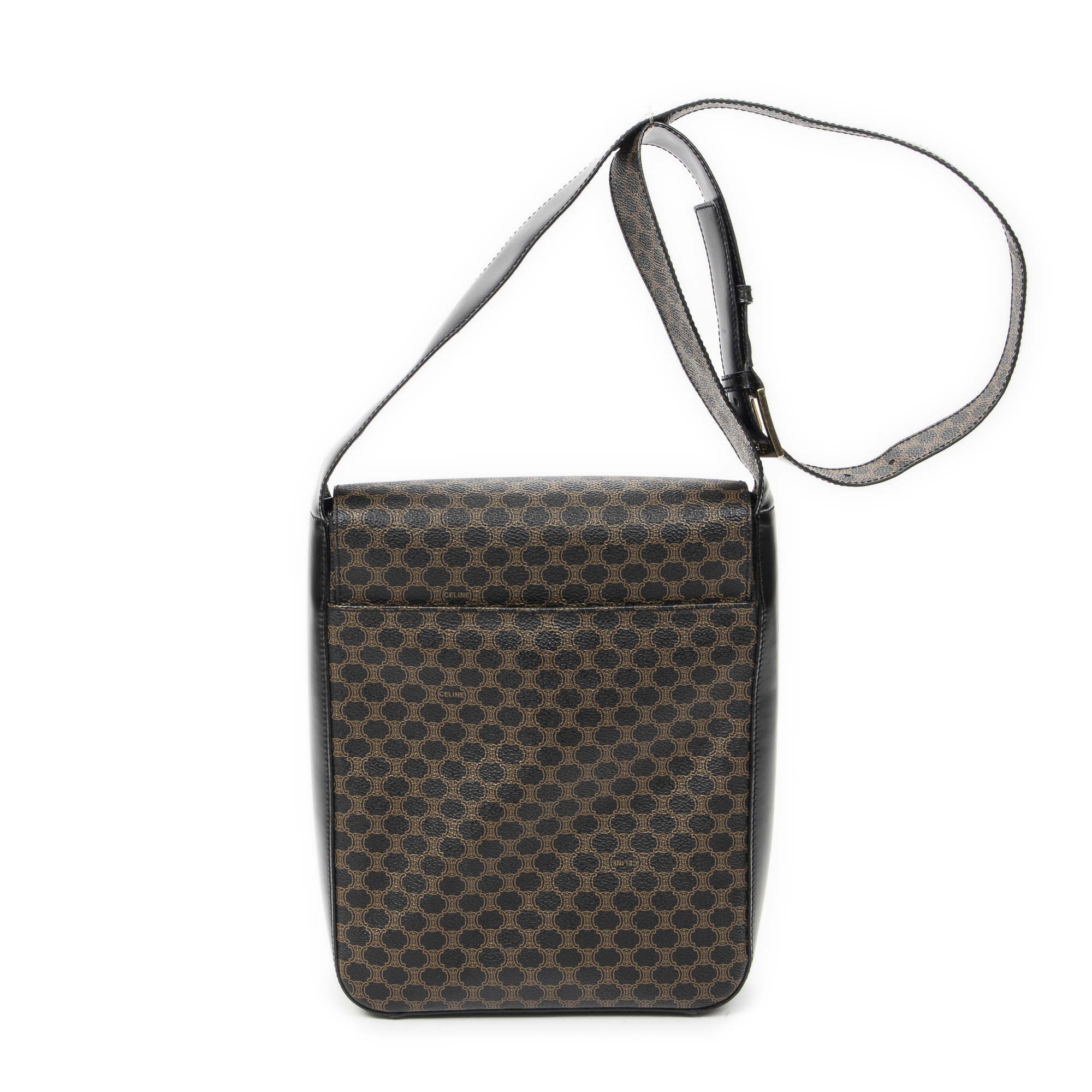Celine Shoulder Bag Small Flap Messenger in Black/Brown Macadam Coated Canvas and Gold hardware. The product is in Excellent Condition (A).