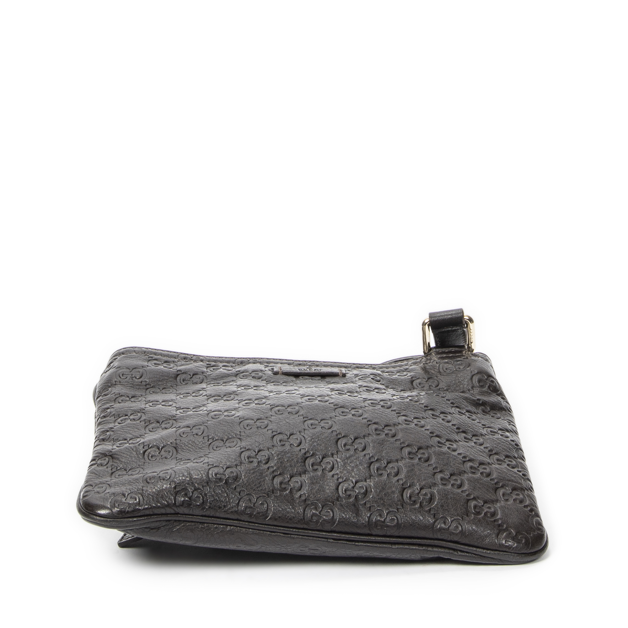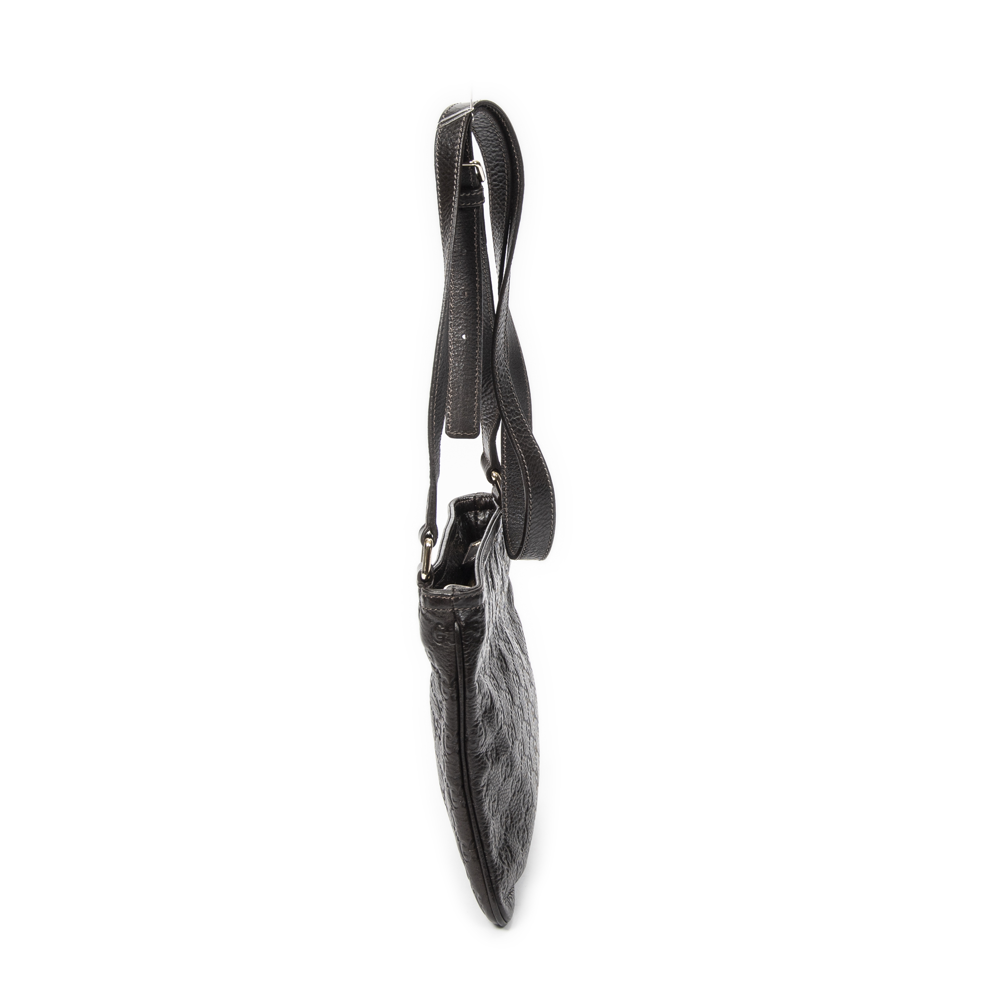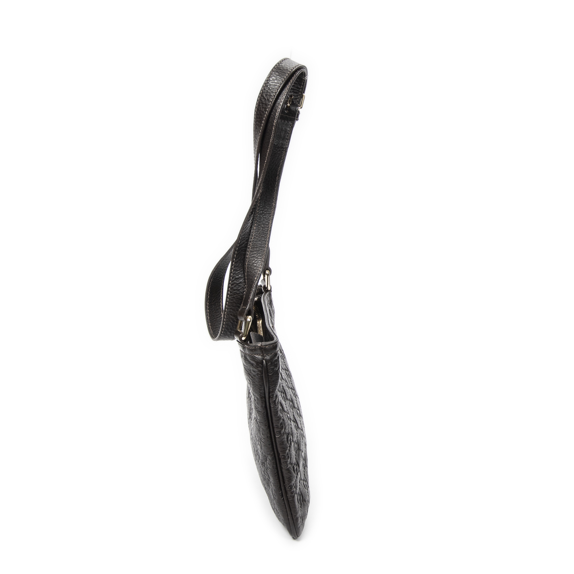 Gucci Shoulder Bag Small Flat Messenger in Dark Brown Guccissima Leather and Gold hardware. The product is in Excellent Condition (A).