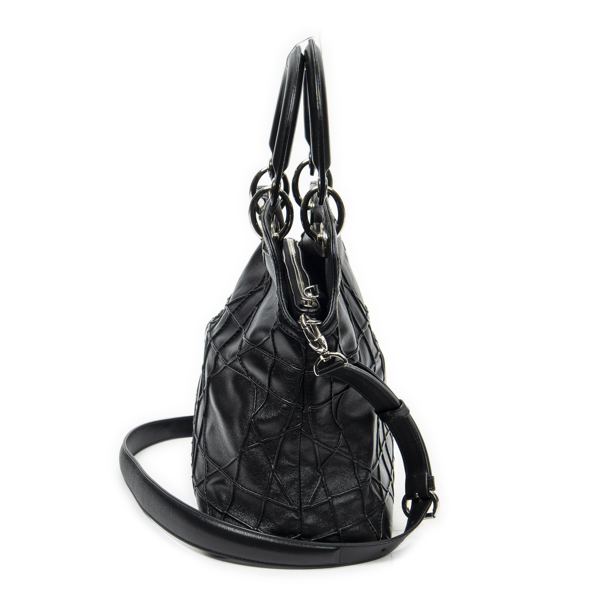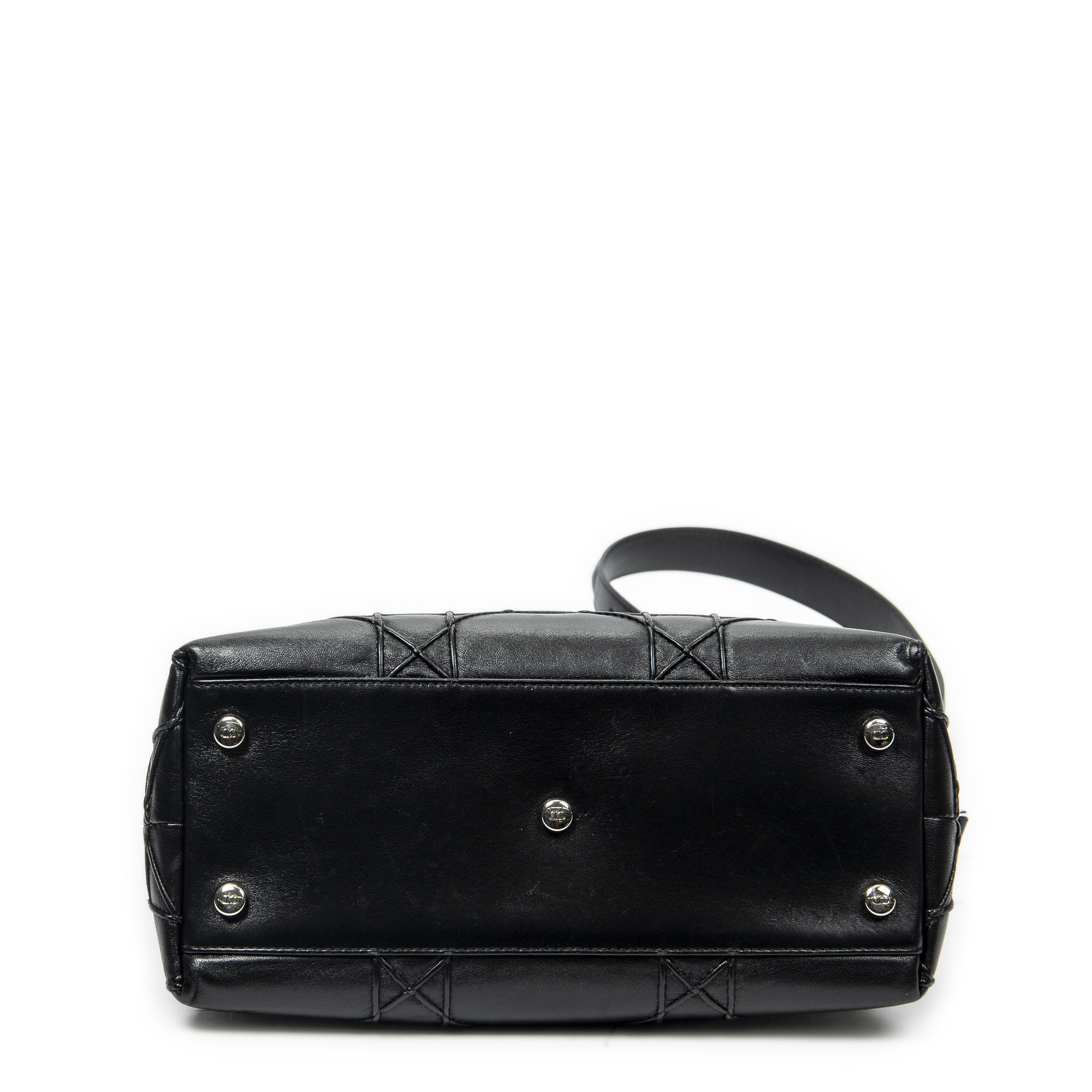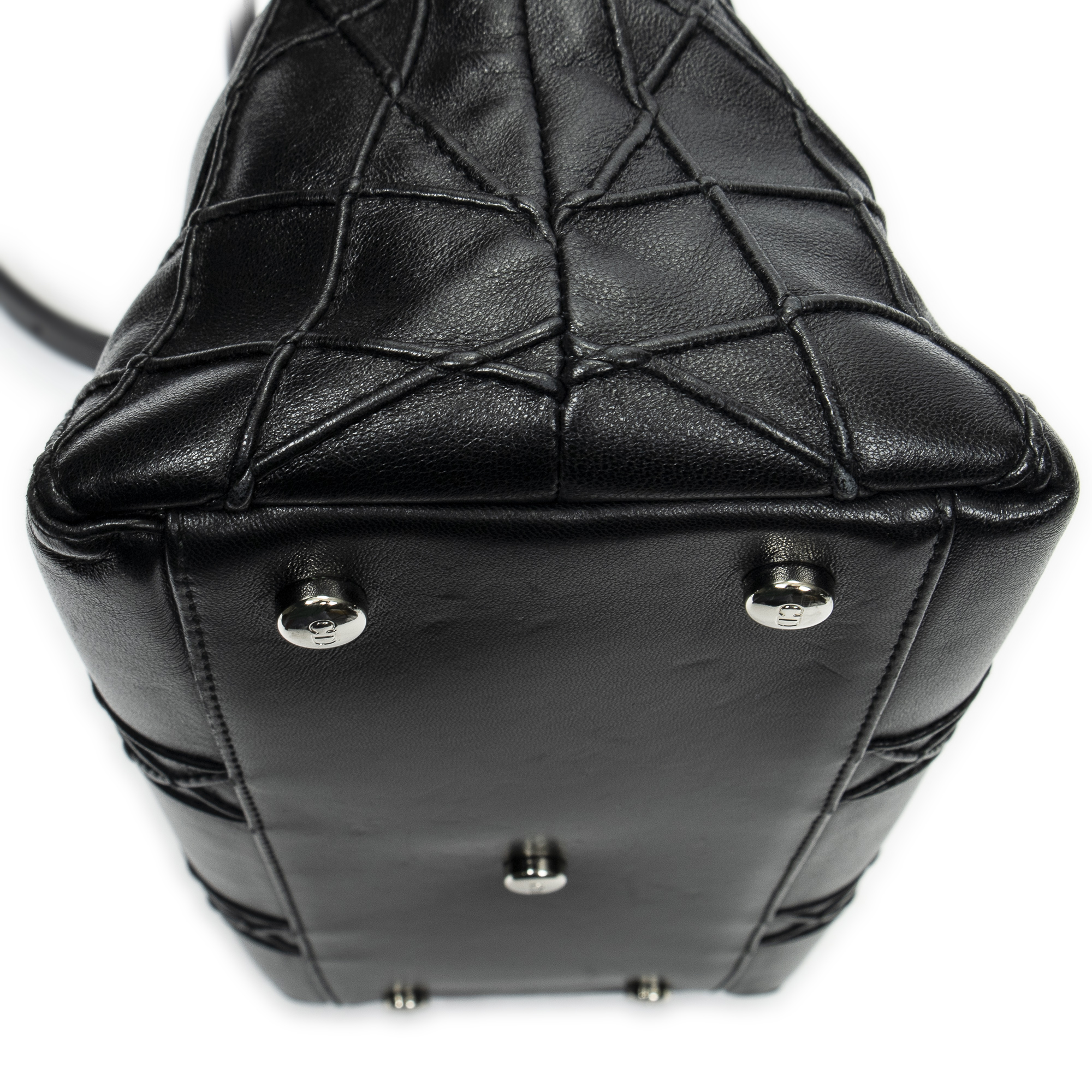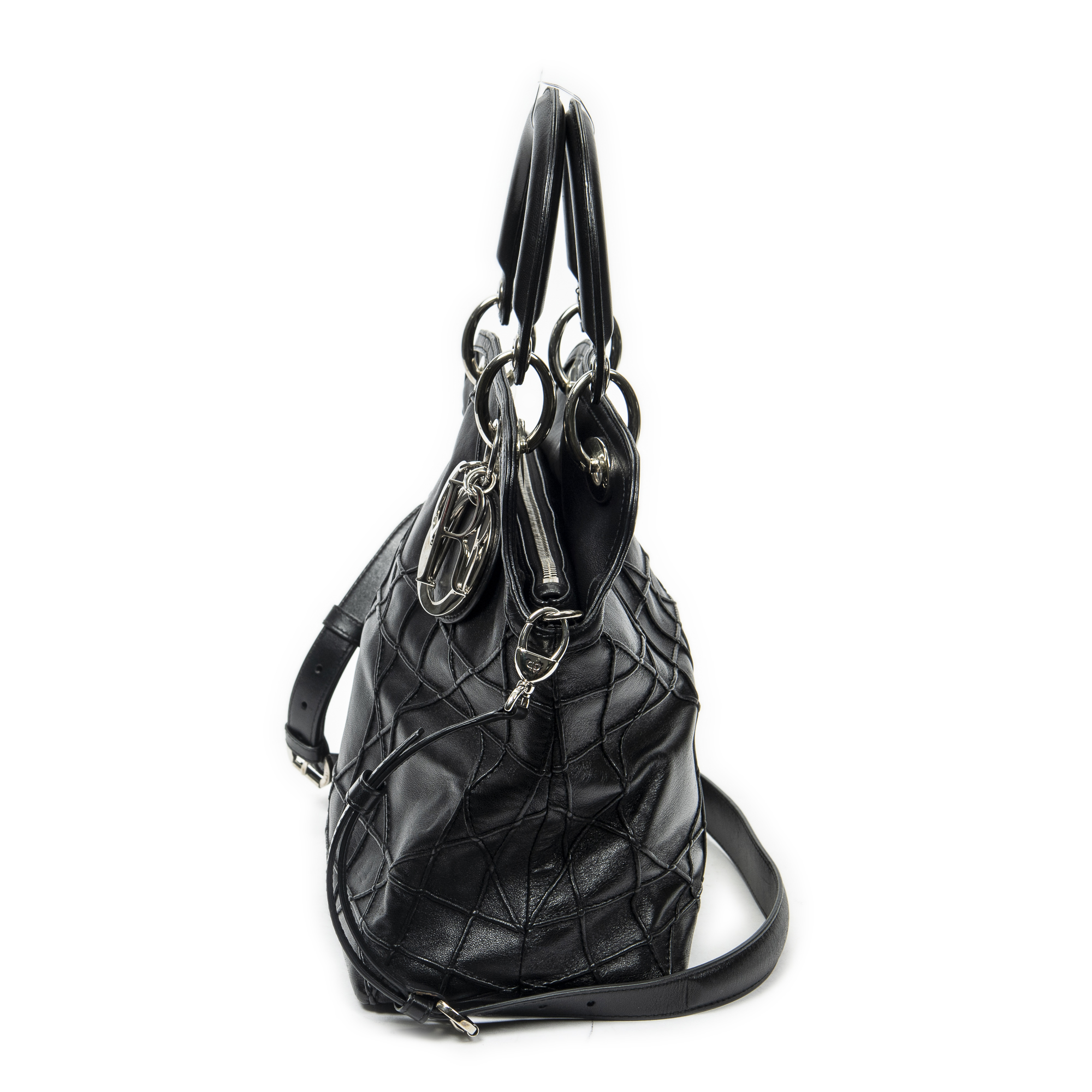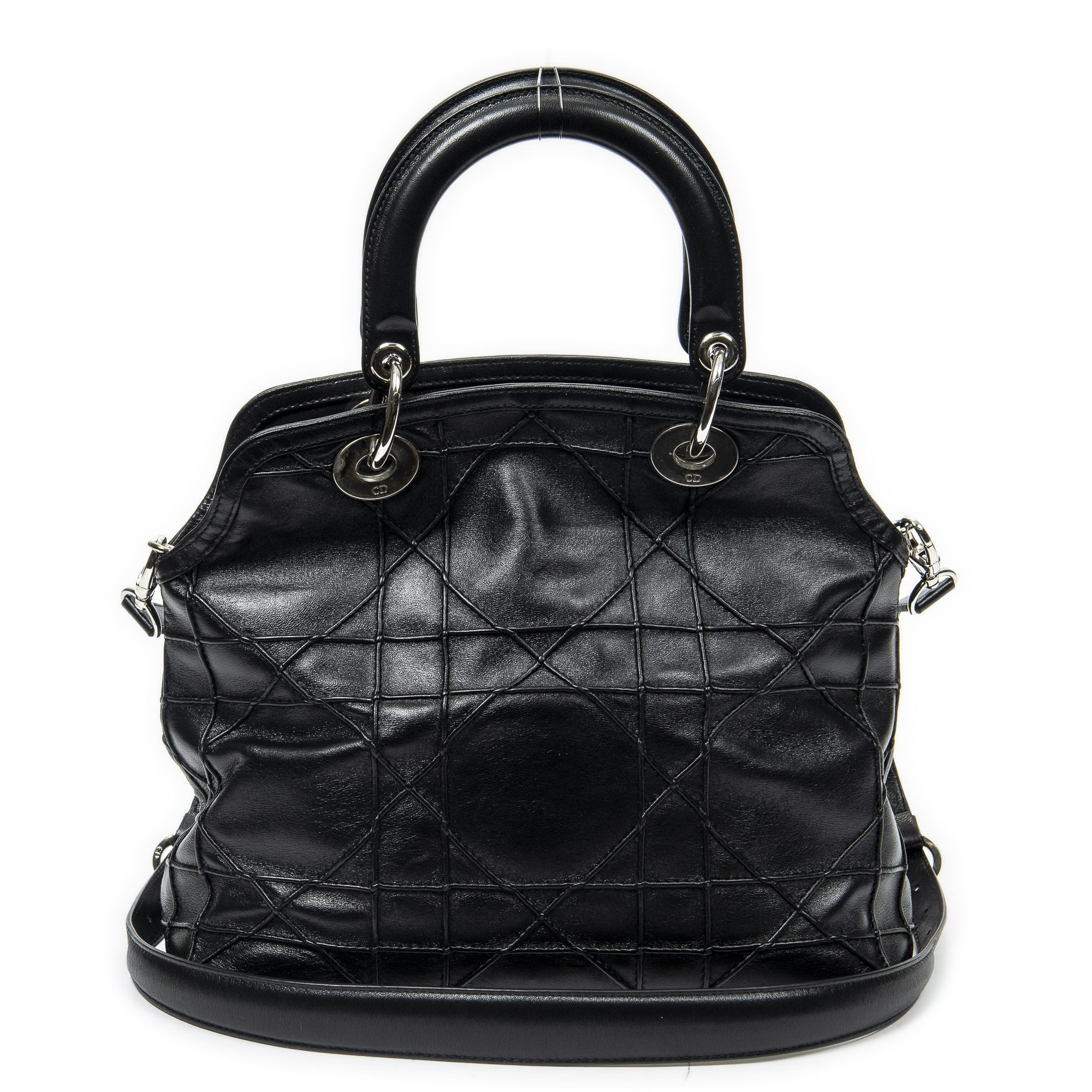 Dior Shoulder Bag Small Granville Tote in Black Cannage Quilted Leather and Silver hardware. The product is in Excellent Condition (A).