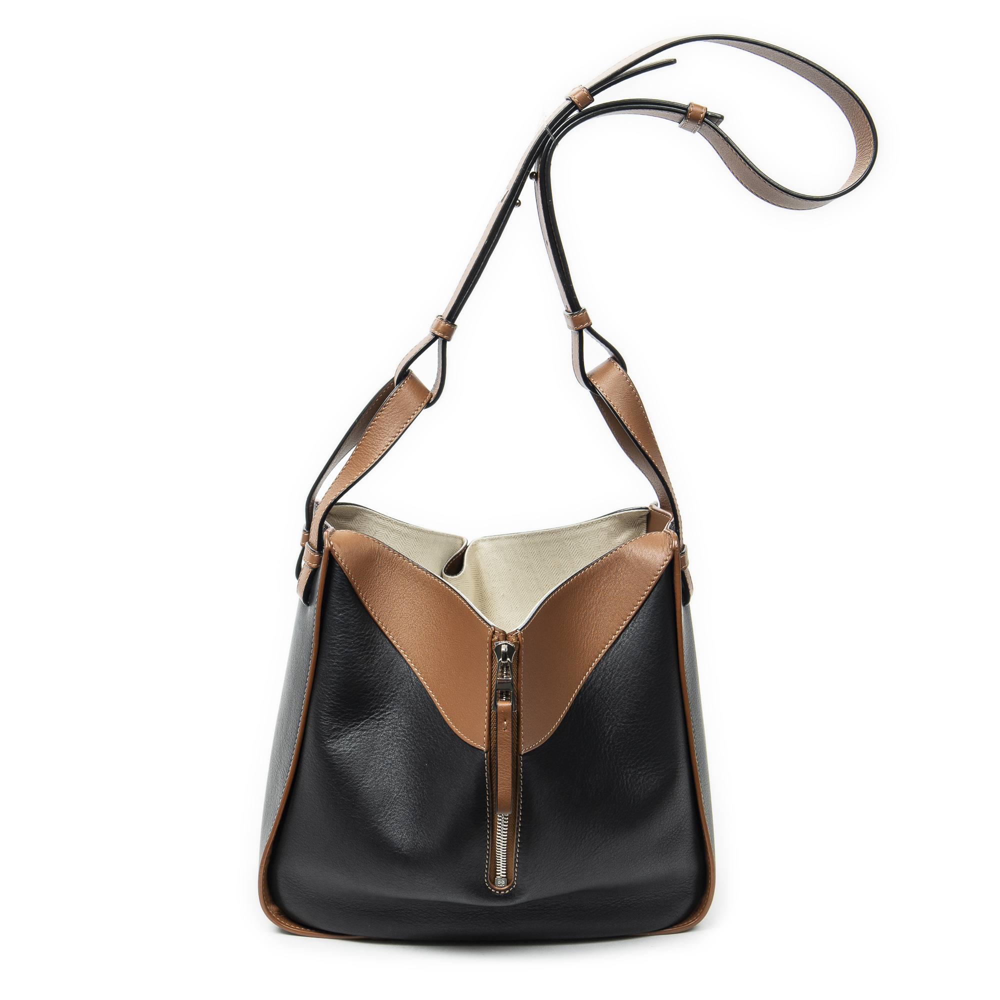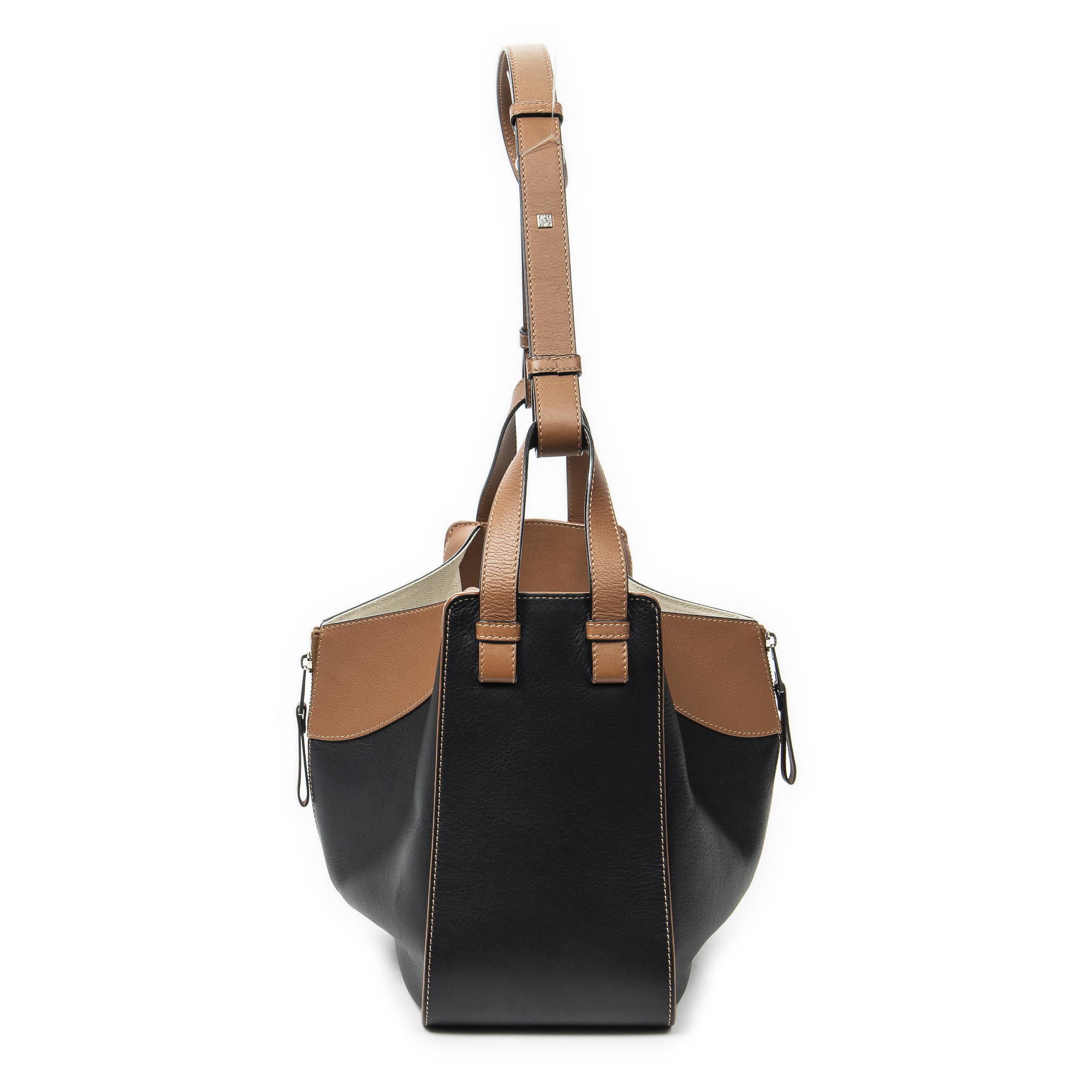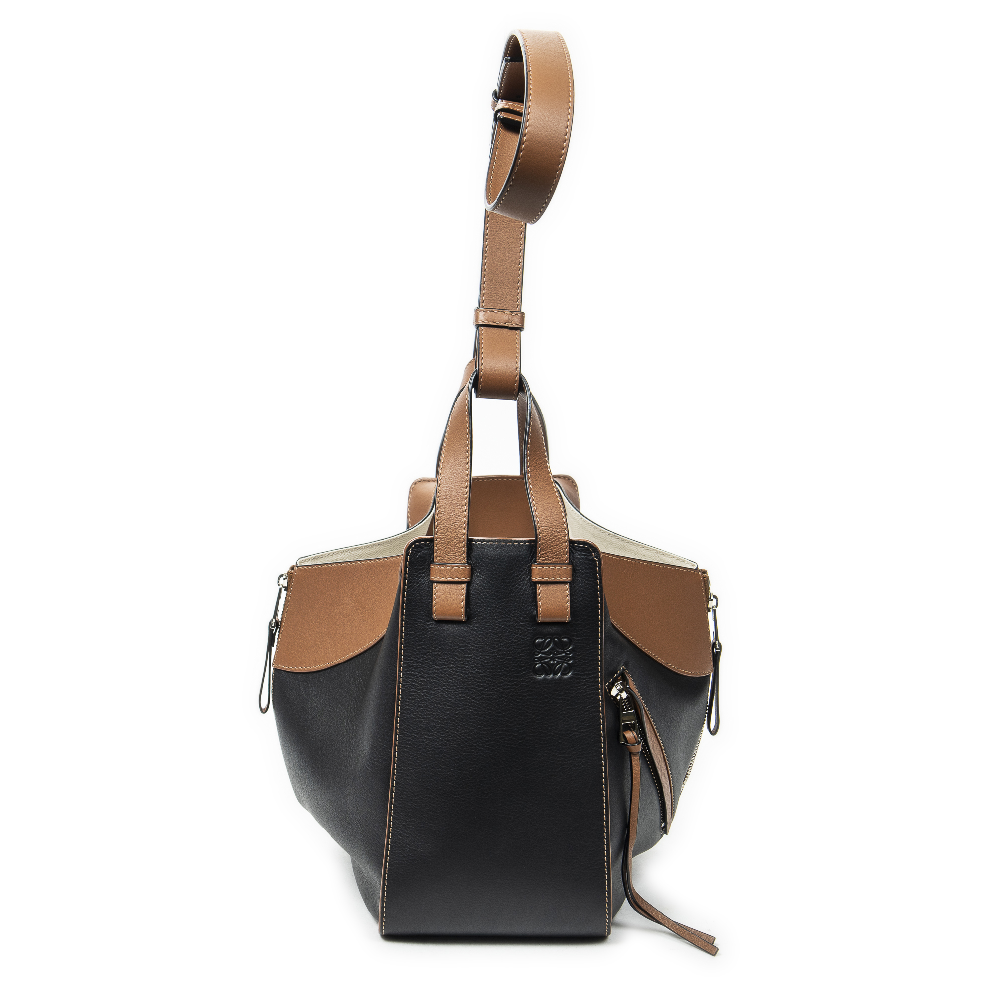 Loewe Shoulder bag Small Hammock in Brown/Black Calfskin Leather and Silver hardware. The product is in Perfect Condition (AA).