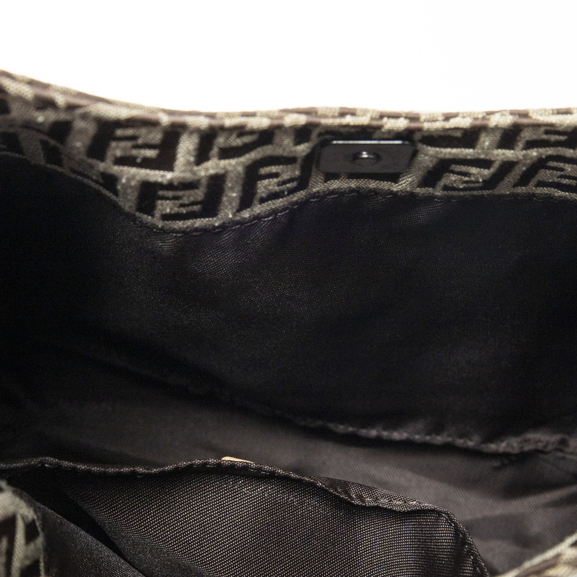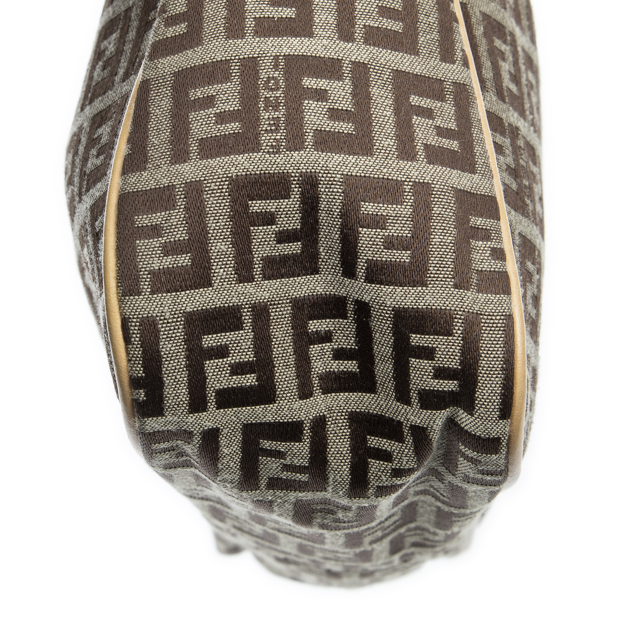 Fendi Shoulder Bag Small Hobo Bag in Tan/Beige Zucchino Canvas and Silver hardware. The product is in Very Good Condition (AB).