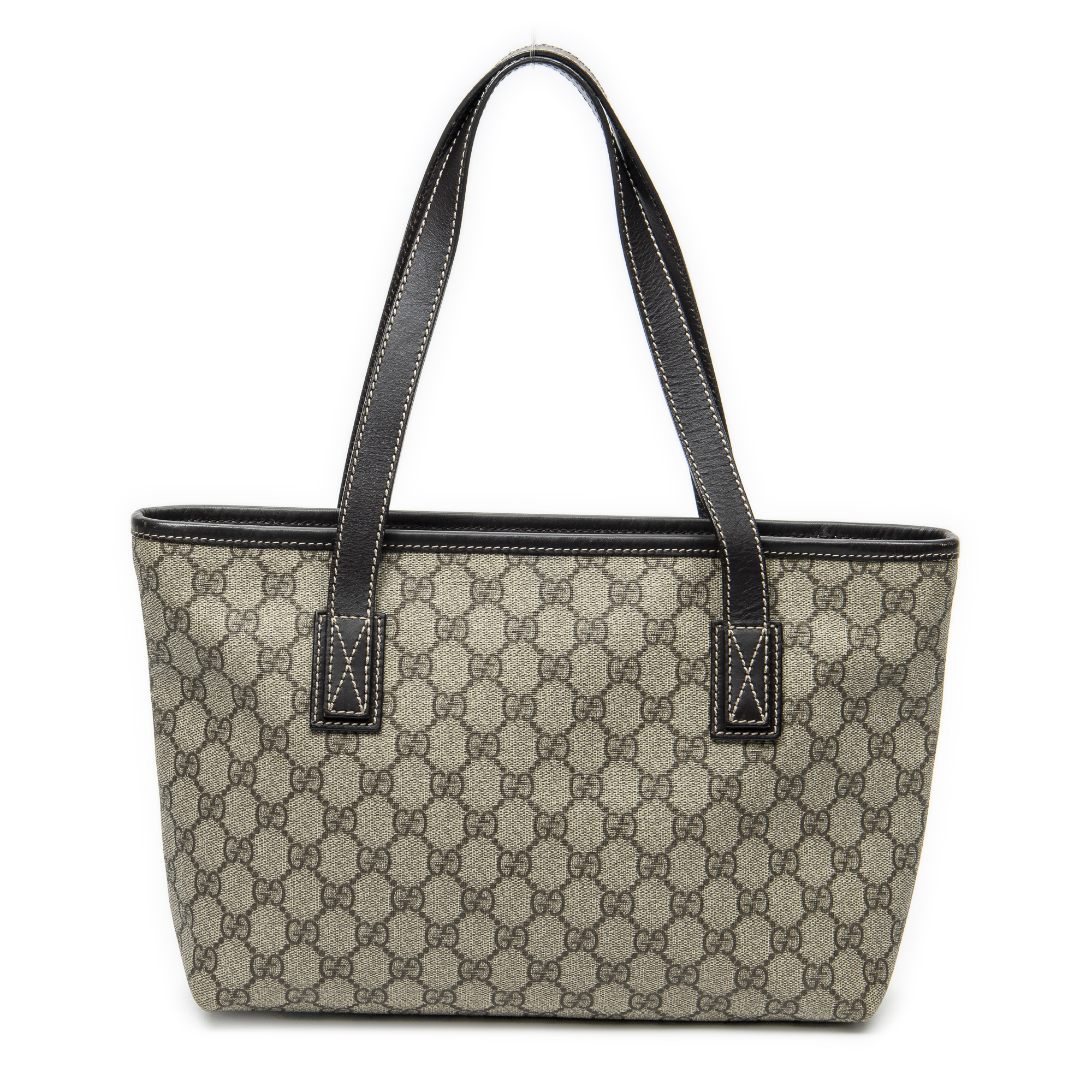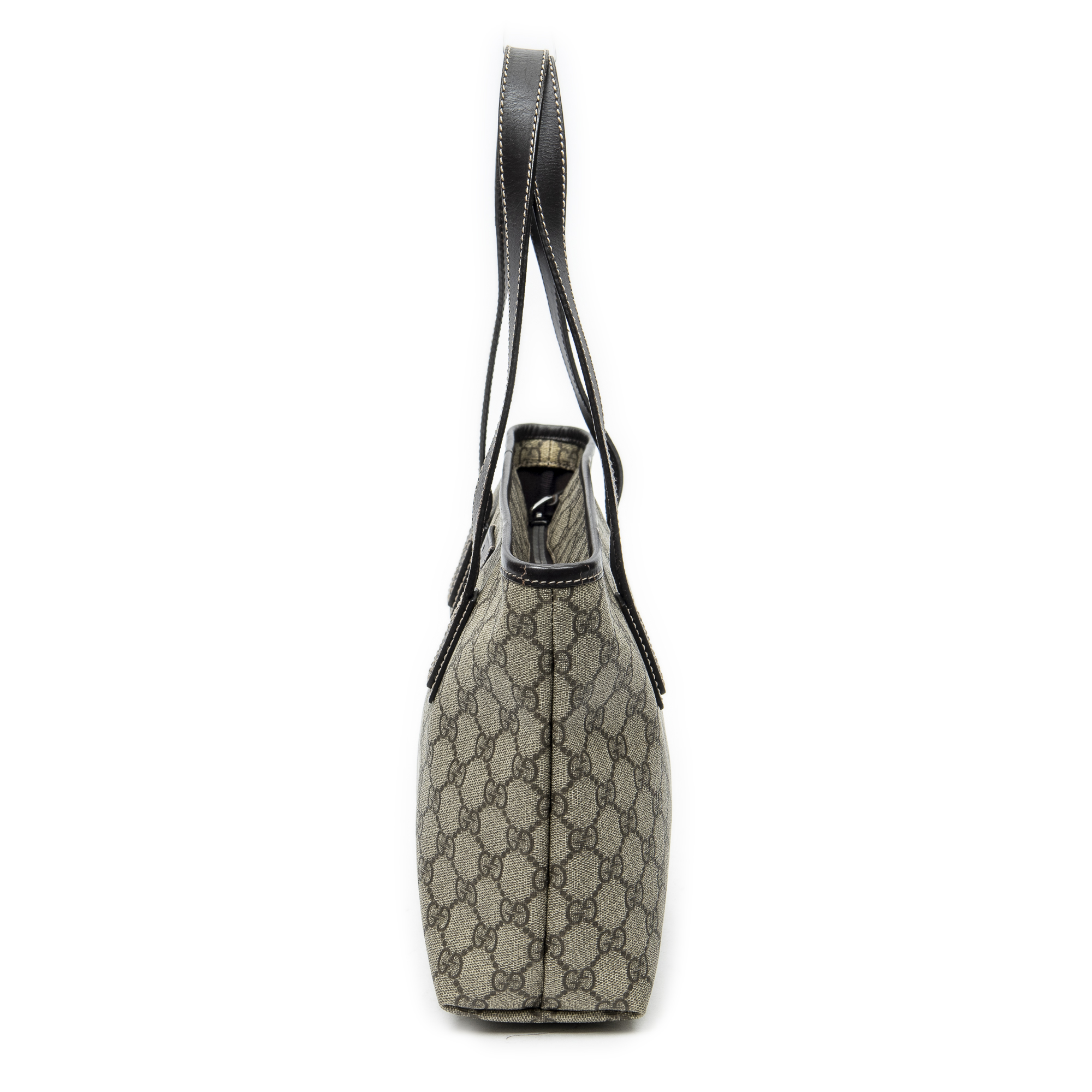 Gucci Shoulder Bag Small Joy Tote in Dark Brown/Beige Supreme Coated Canvas and Silver hardware. The product is in Excellent Condition (A).