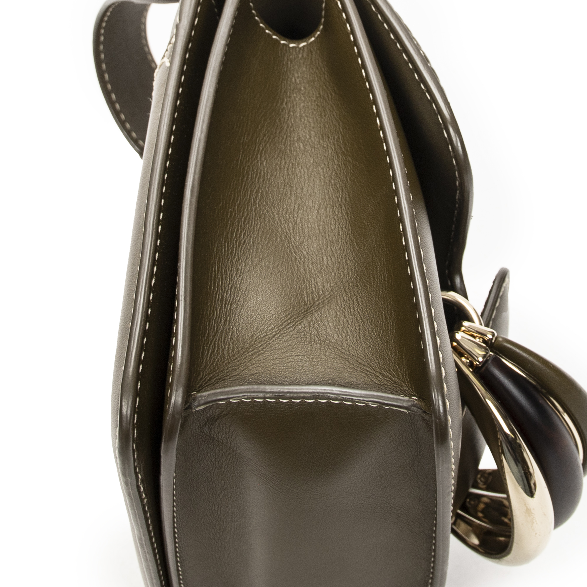 Description : Chloé Shoulder Bag Small Kattie Top Handle in Olive Green Calfskin Leather and Gold hardware. The product is in Excellent Condition (A). Dimensions: 20x16x8 cm SKU: ABC8532 Serial number: 04-22-45-65 Accessories Included: Long Strap; Dustbag Delivery: We have a 5 to 7 business days delivery policy, hassle-free and duties/tariffs included! BrandCo Paris finds rare and top condition items at great deals, they are worth your patience! Shop with confidence - All BrandCo Paris items are carefully selected and authenticated by our team of experts. All the items come with an authenticity certificate and packaging delivered by BrandCo Paris. Item Condition Grading Table N (Like New) AA (Perfect Condition) A (Excellent Condition) AB (Very Good Condition) B (Good/Fair)