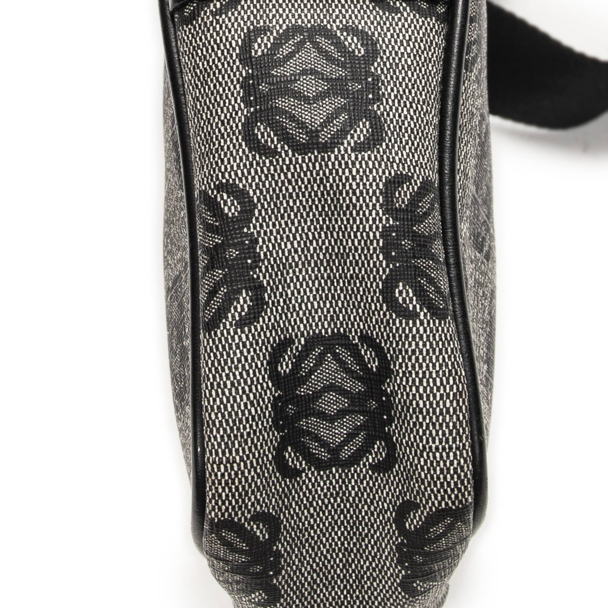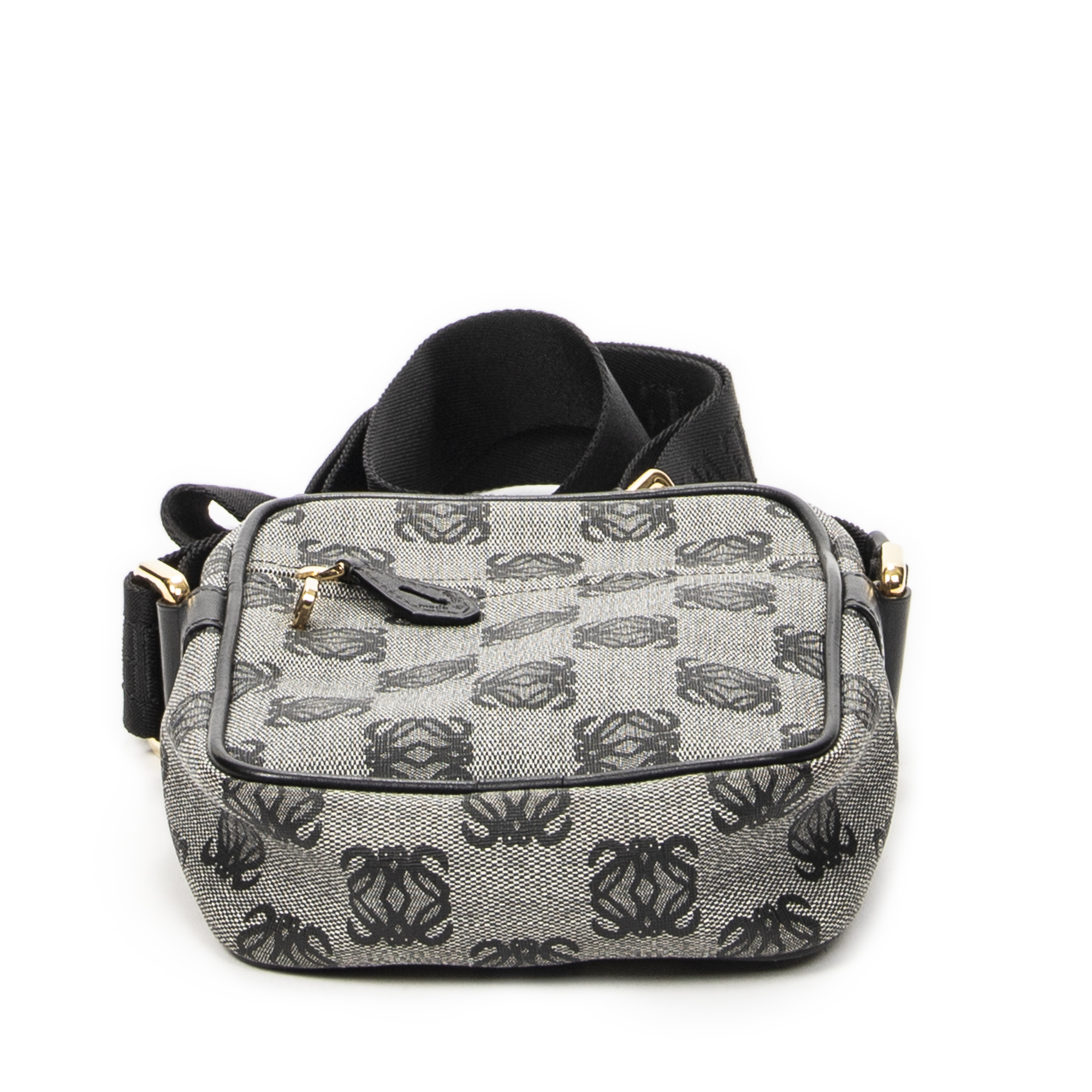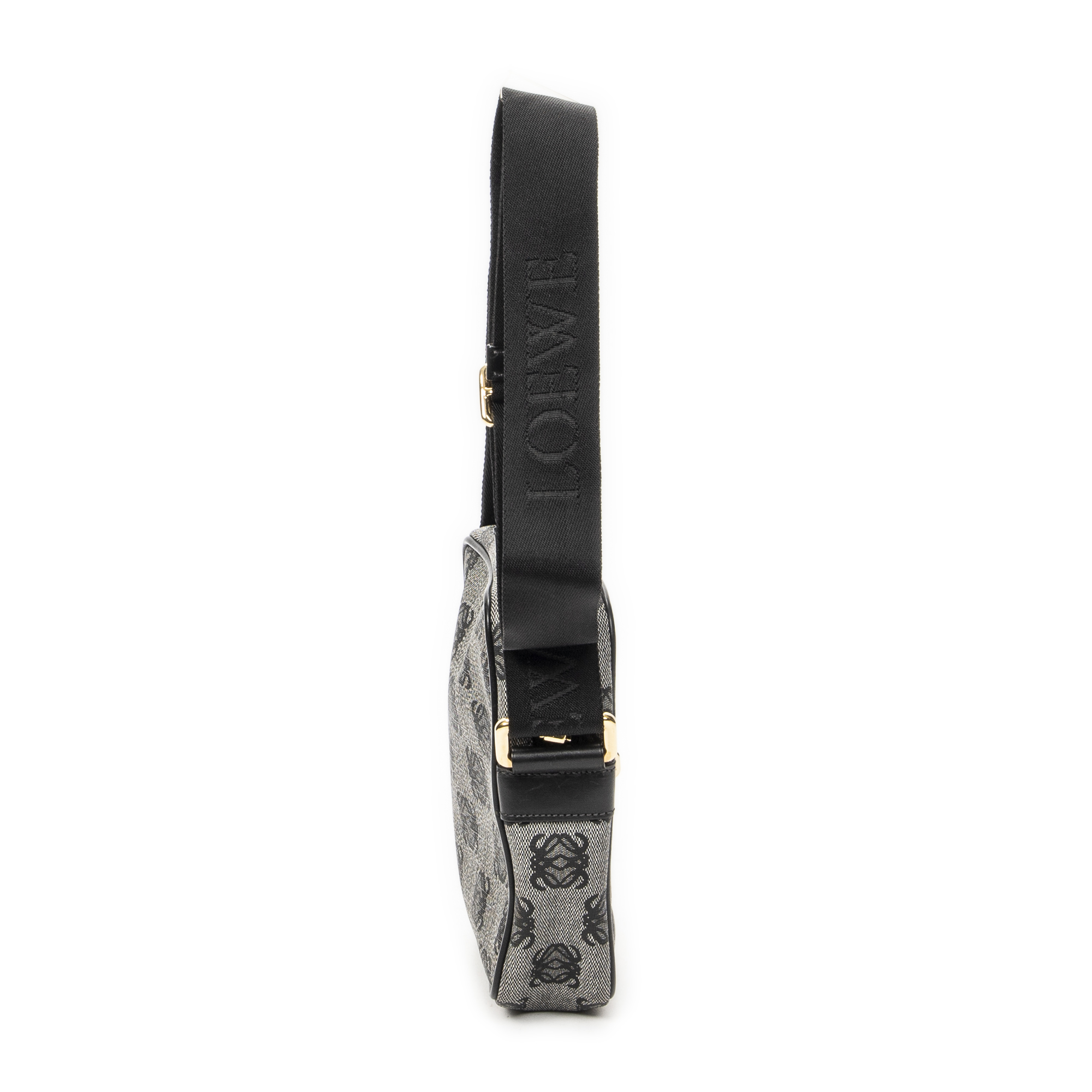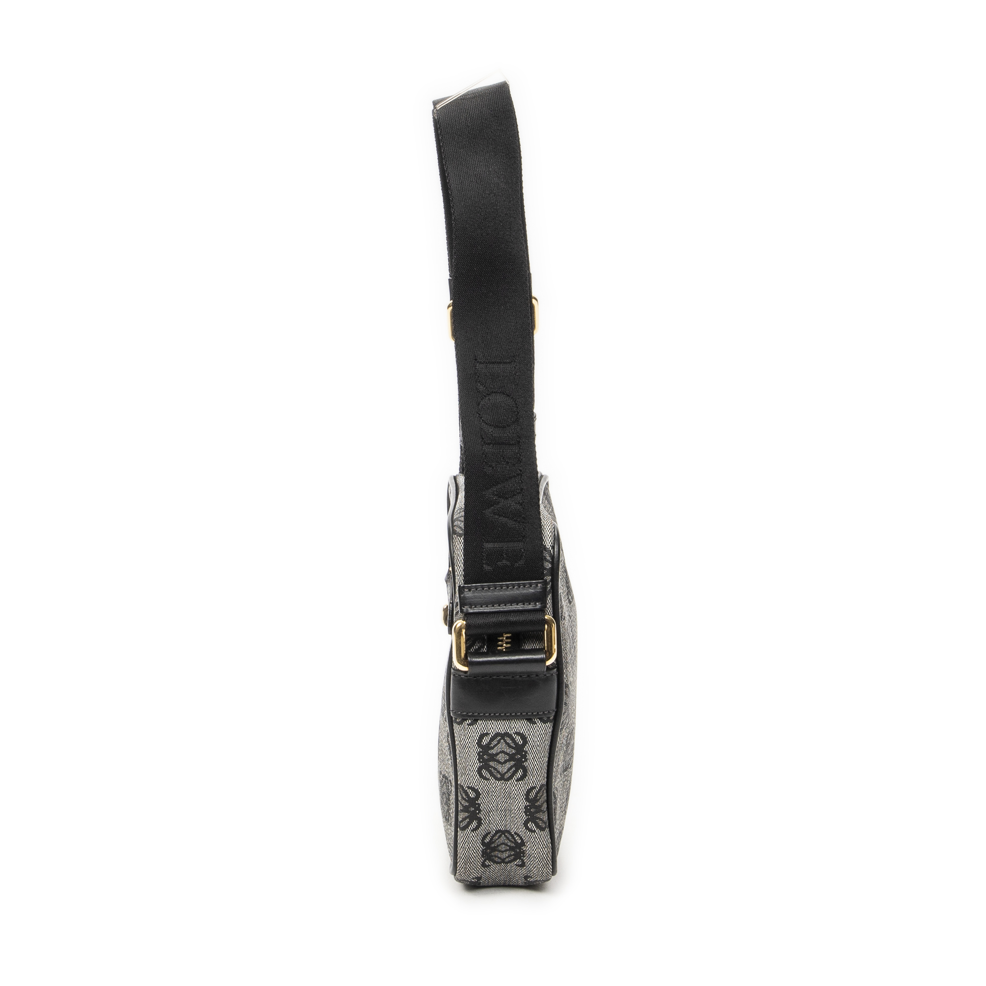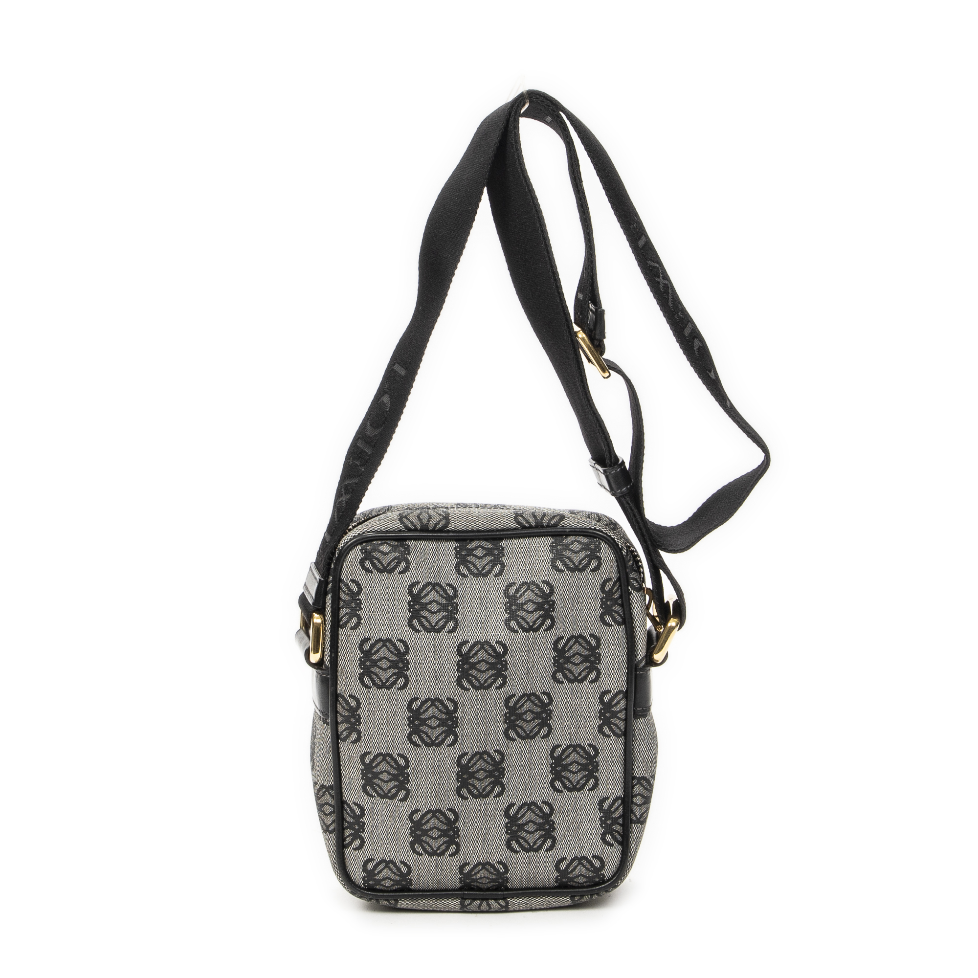 Loewe Shoulder Bag Small Messenger Crossbody in Black/Grey Anagram Print Coated Canvas and Gold hardware. The product is in Excellent Condition (A).