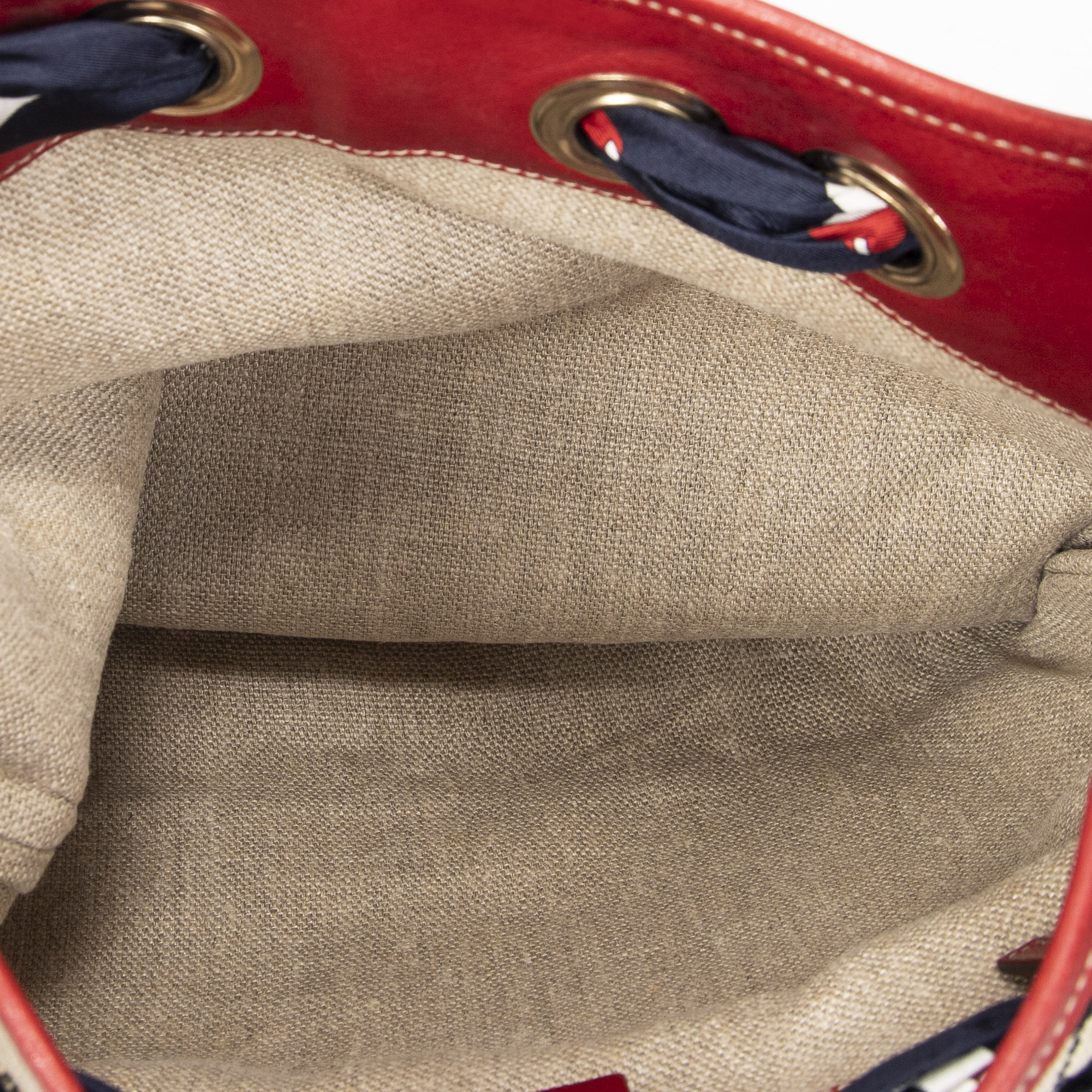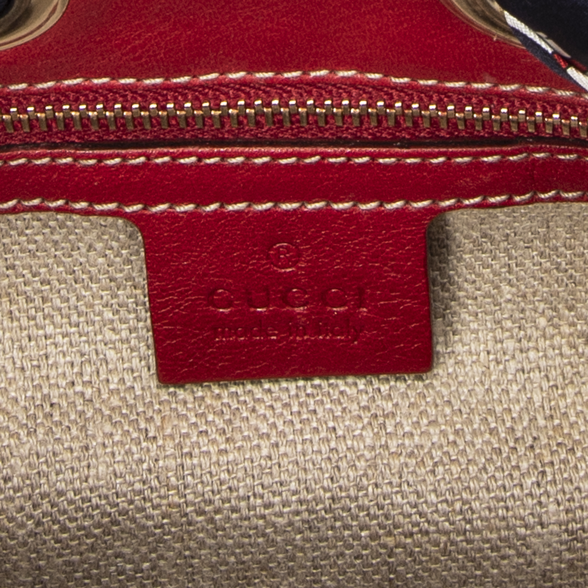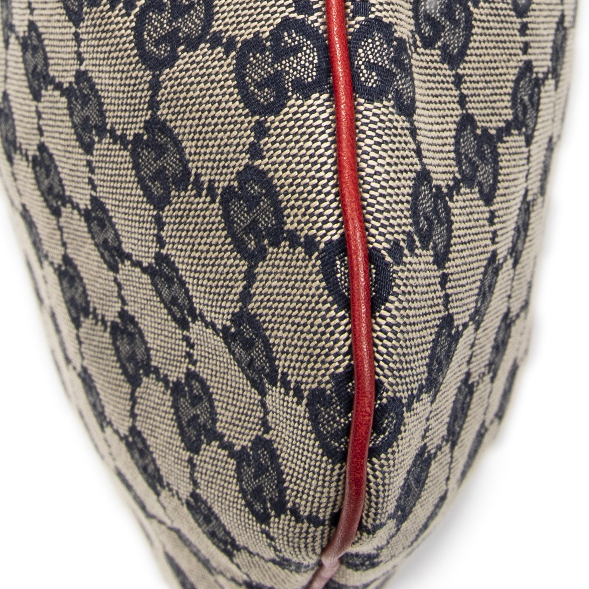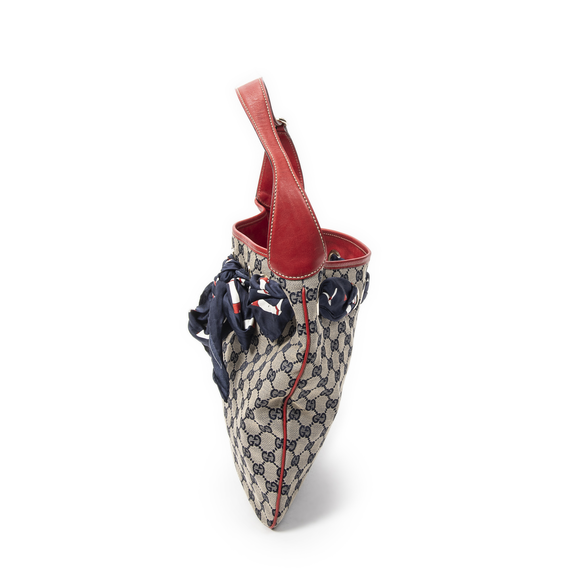 Gucci Shoulder Bag Small Positano Hobo in Red/Navy/Beige Monogrammed Canvas and Gold hardware. The product is in Excellent Condition (A).