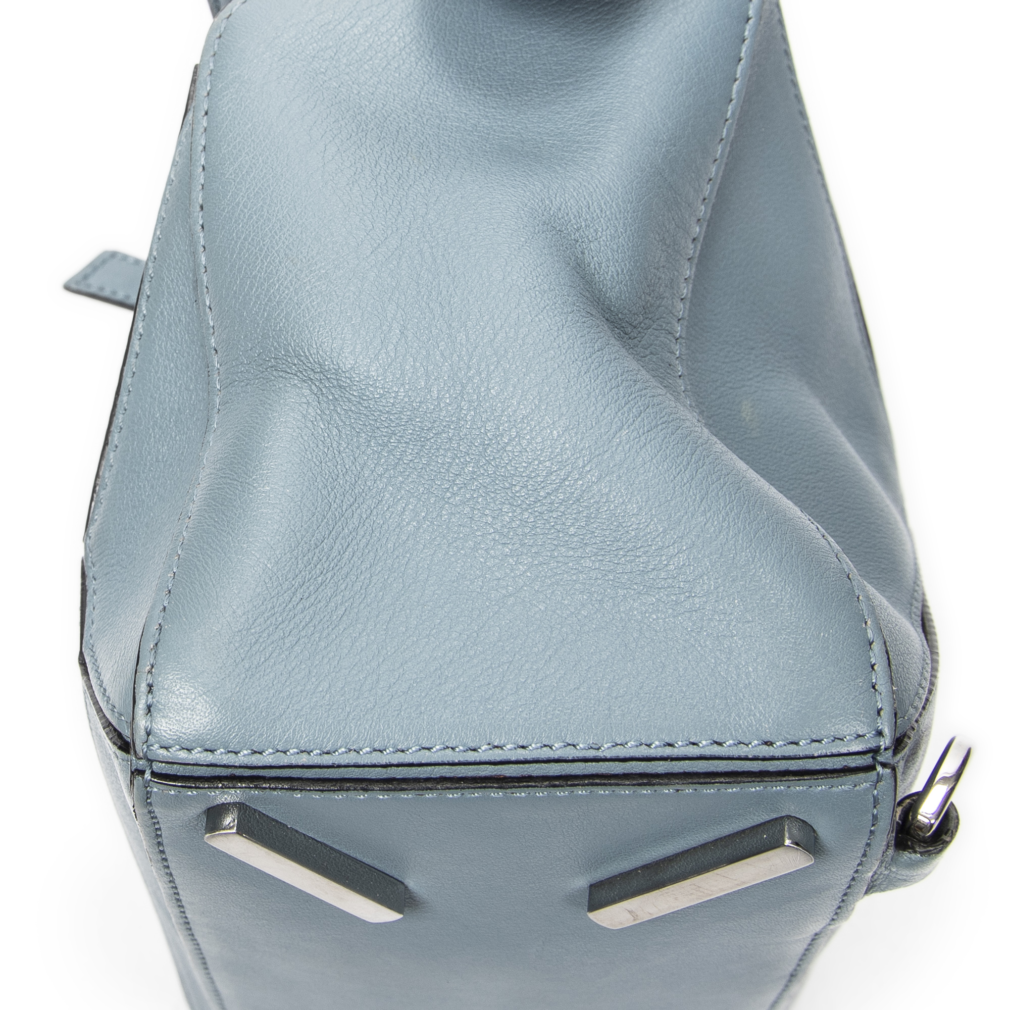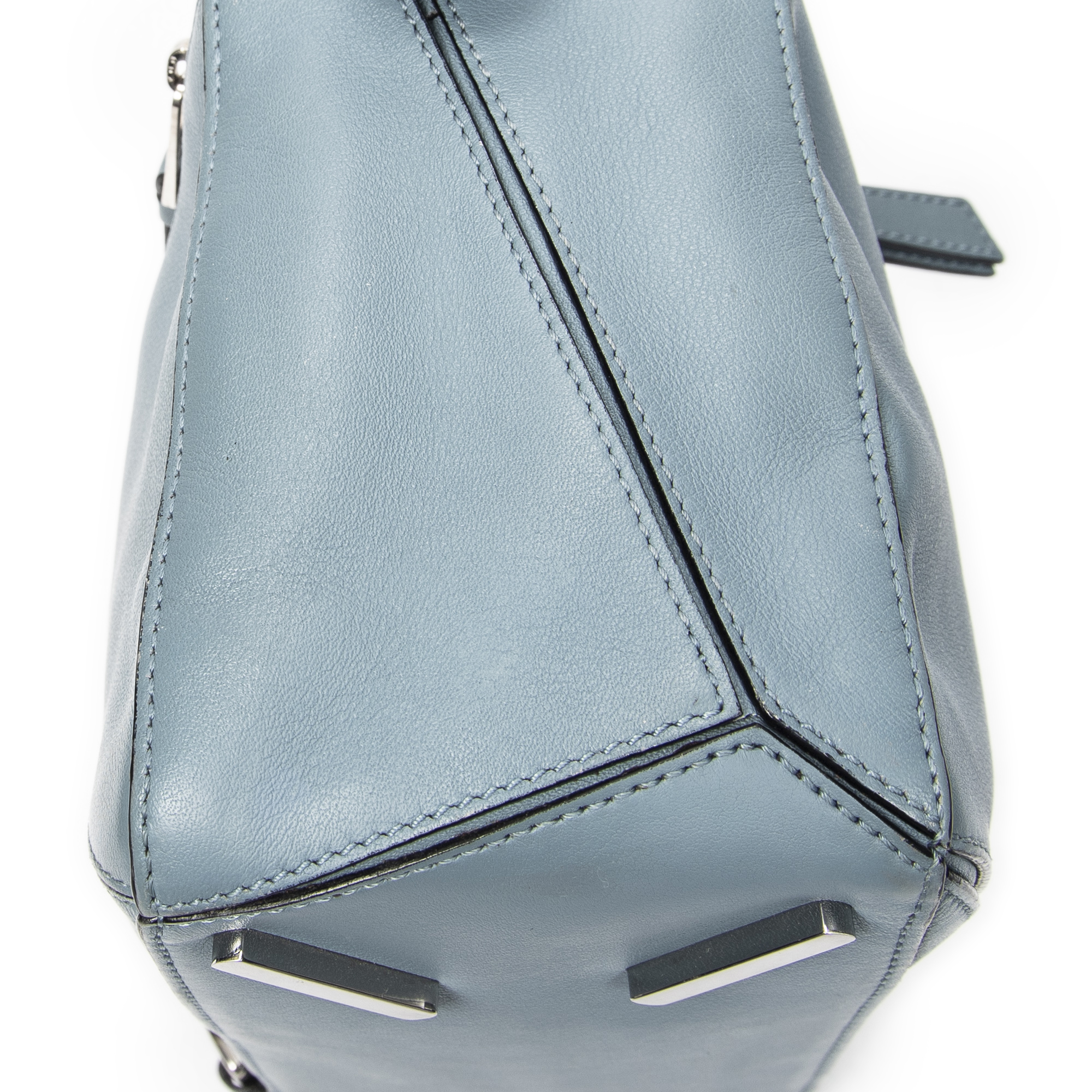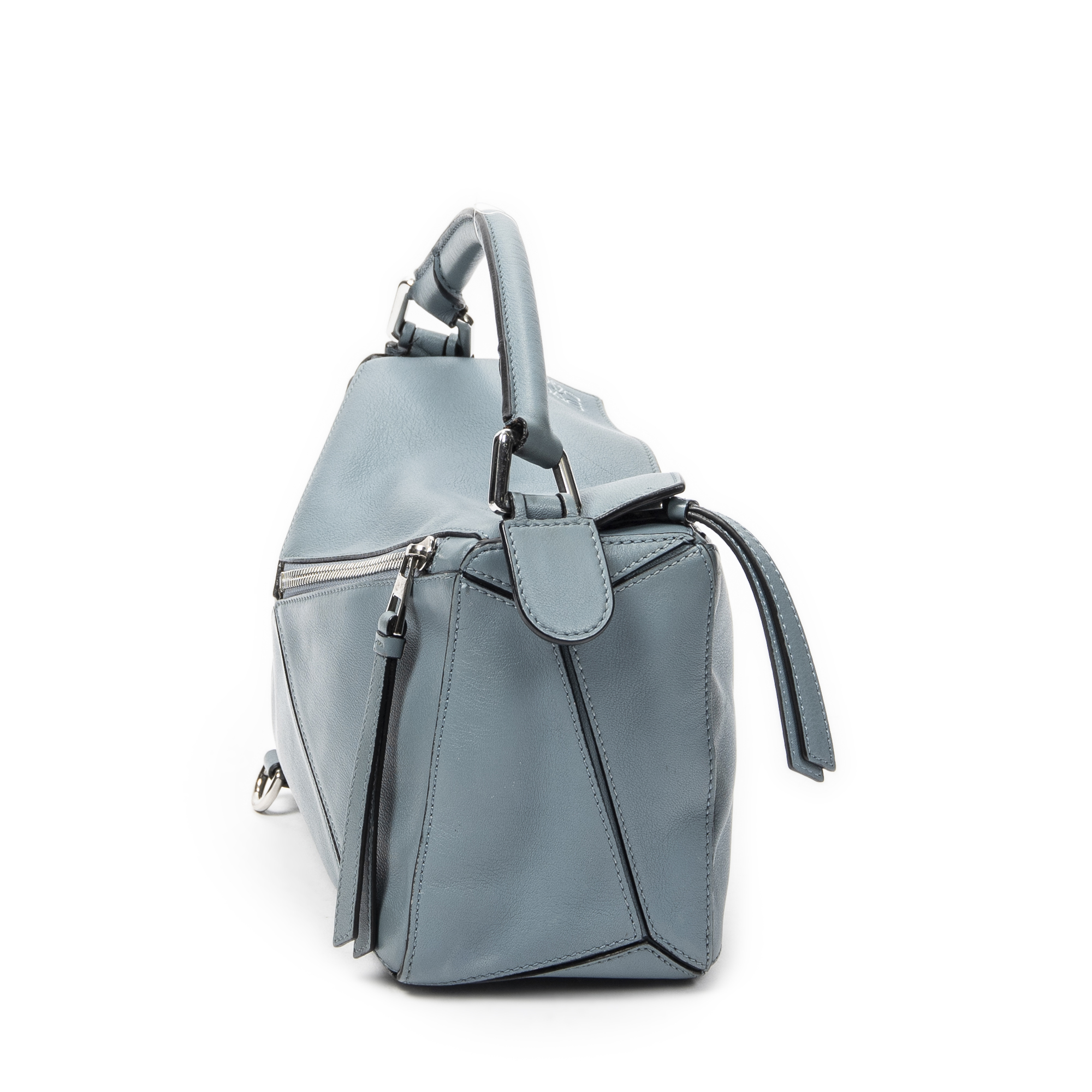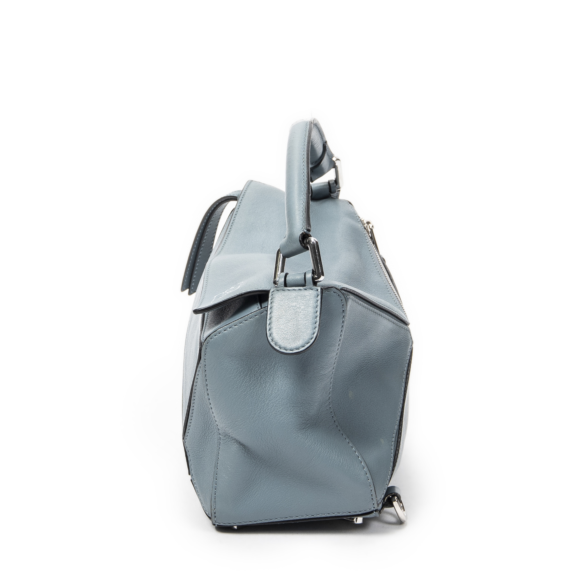 Loewe Shoulder Bag Small Puzzle Bag in Blue Calfskin Leather and Silver hardware. The product is in Excellent Condition (A).