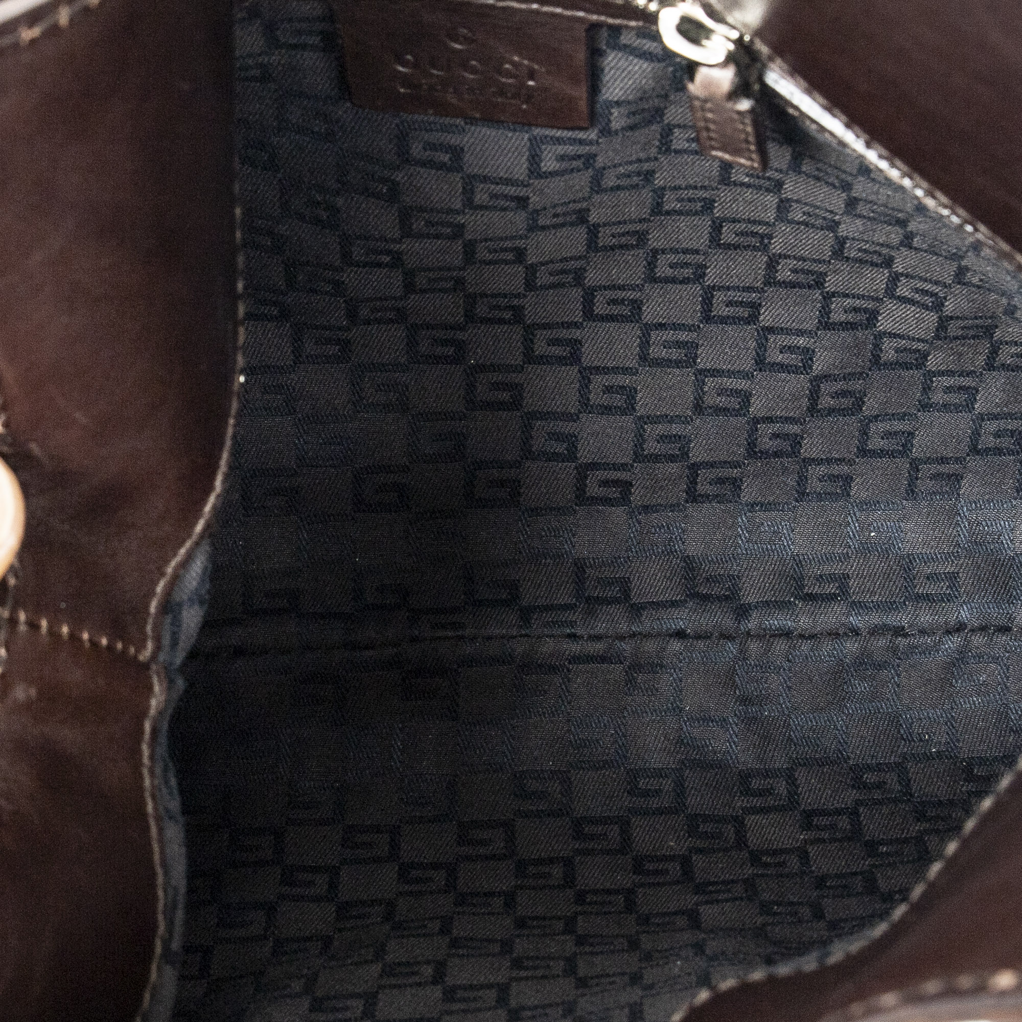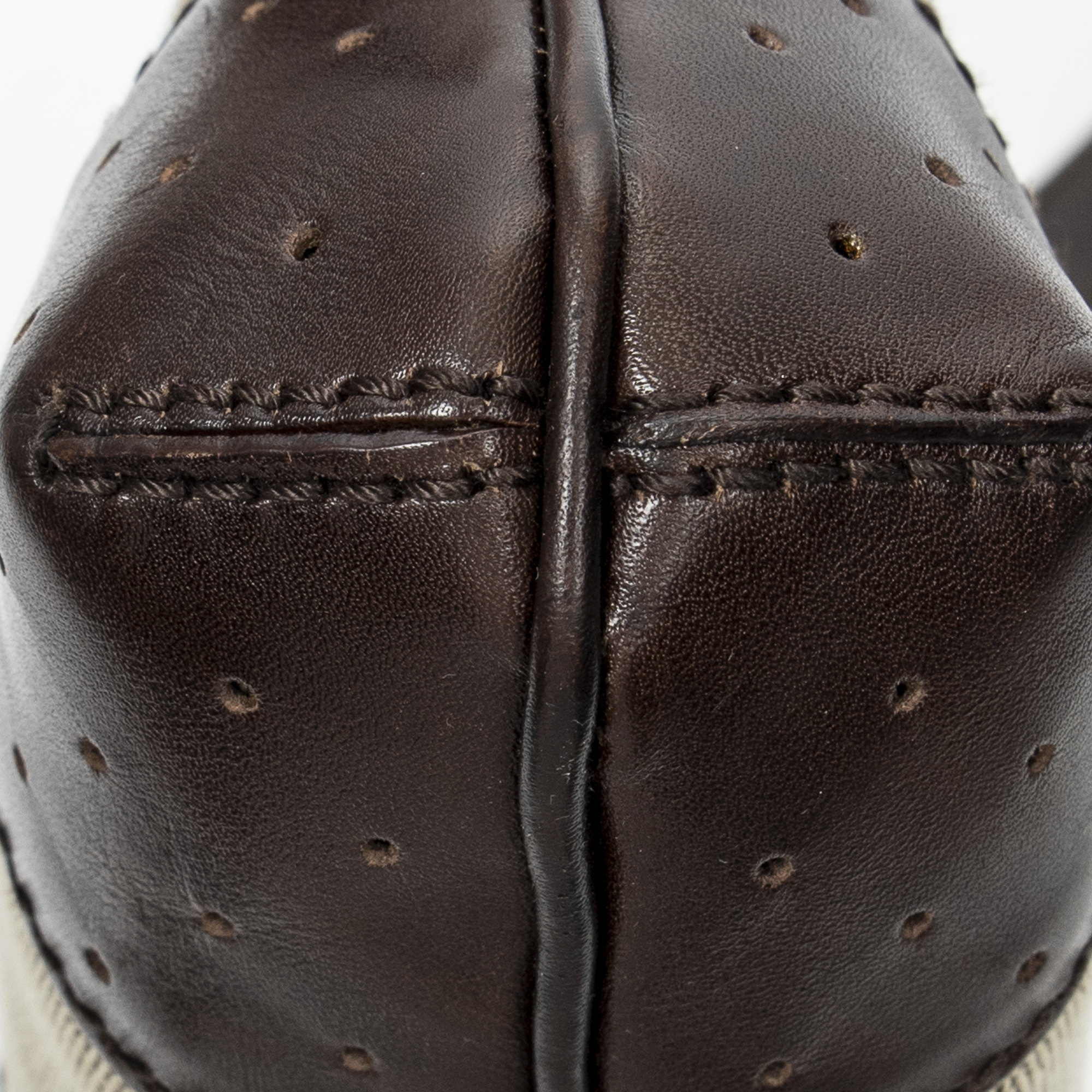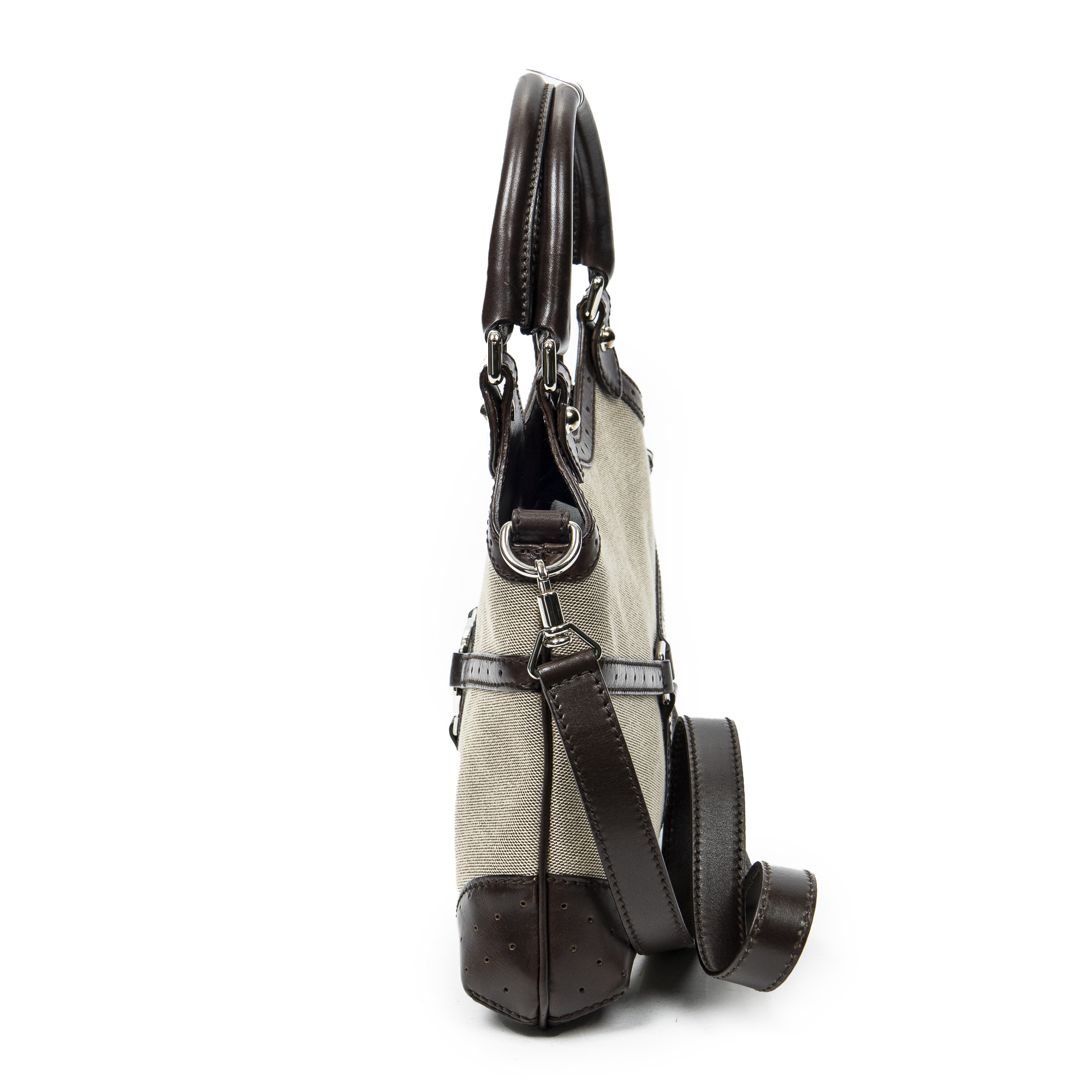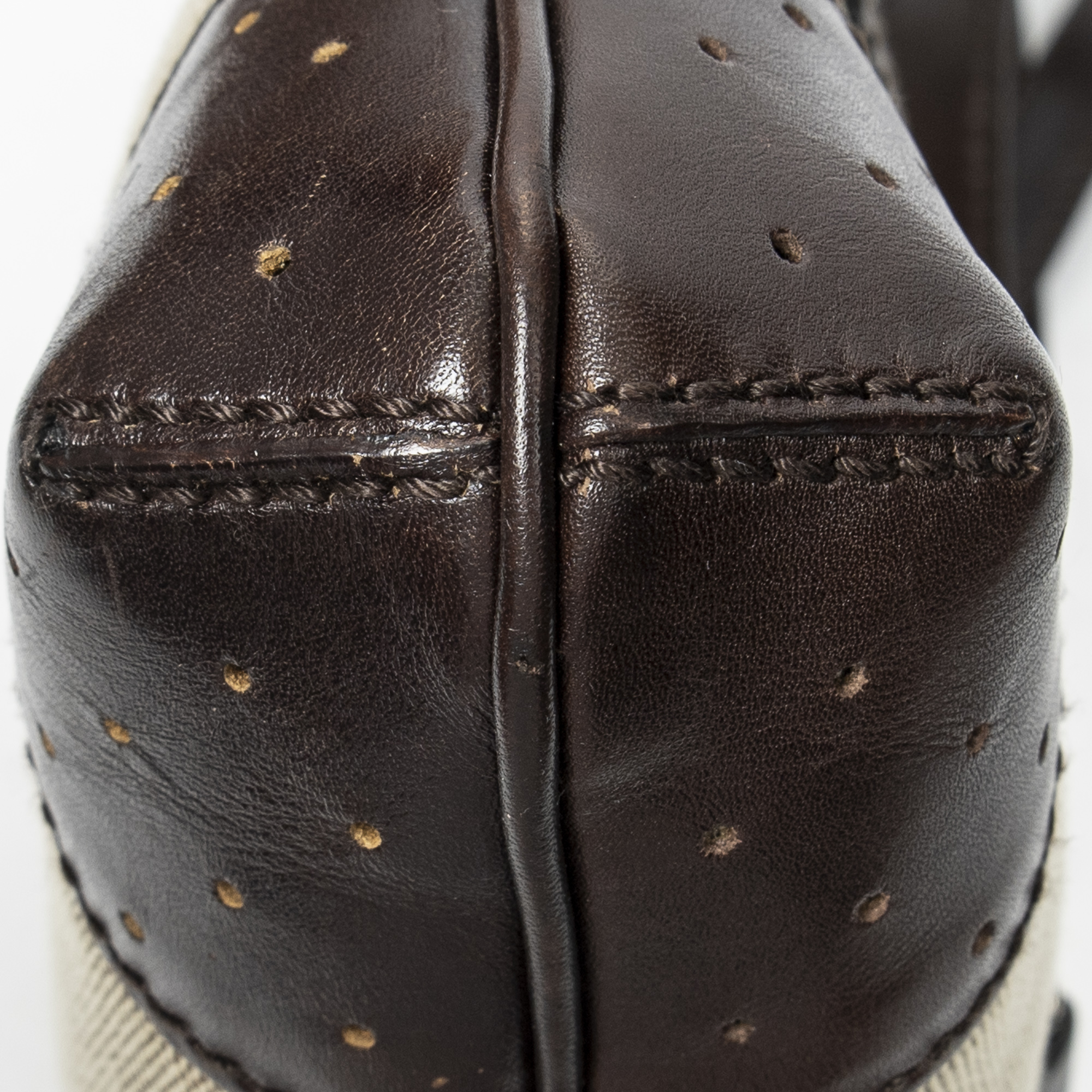 Gucci Shoulder Bag Small Reins Shoulder Bag in Dark Brown/Beige Canvas and Silver hardware. The product is in Excellent Condition (A).