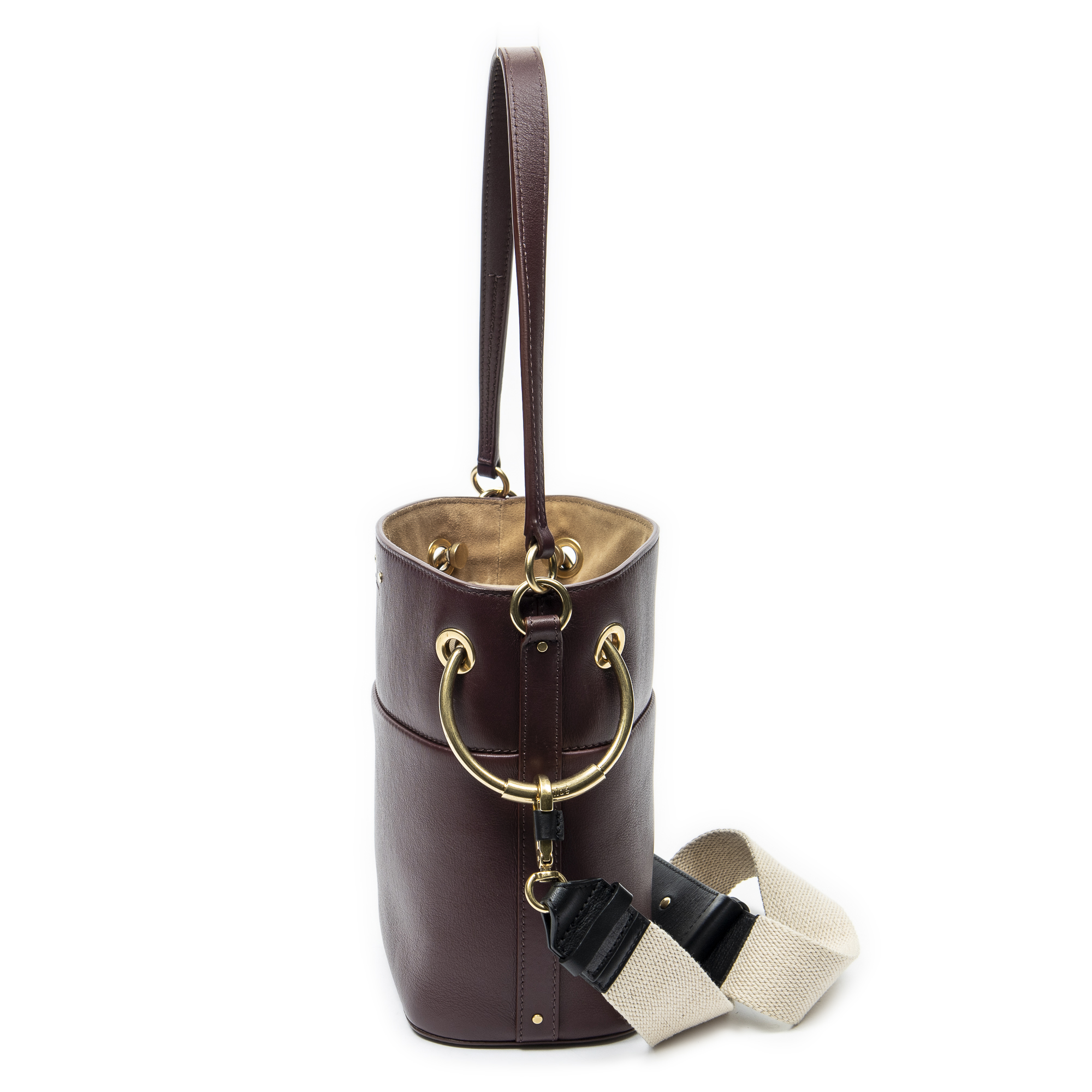 Chloé Shoulder Bag Small Roy Bucket Bag in Burgundy Calfskin Leather and Gold hardware. The product is in Excellent Condition (A).