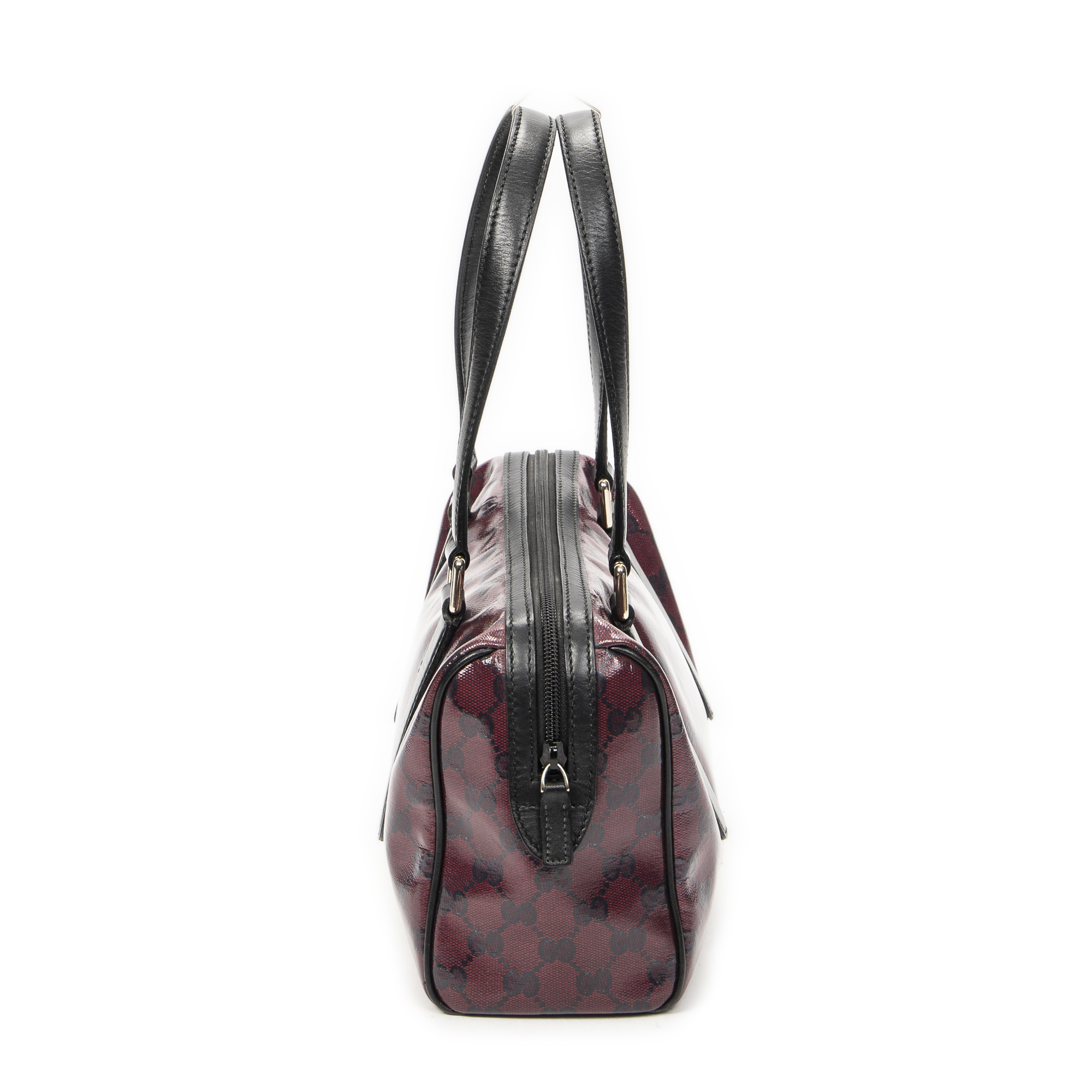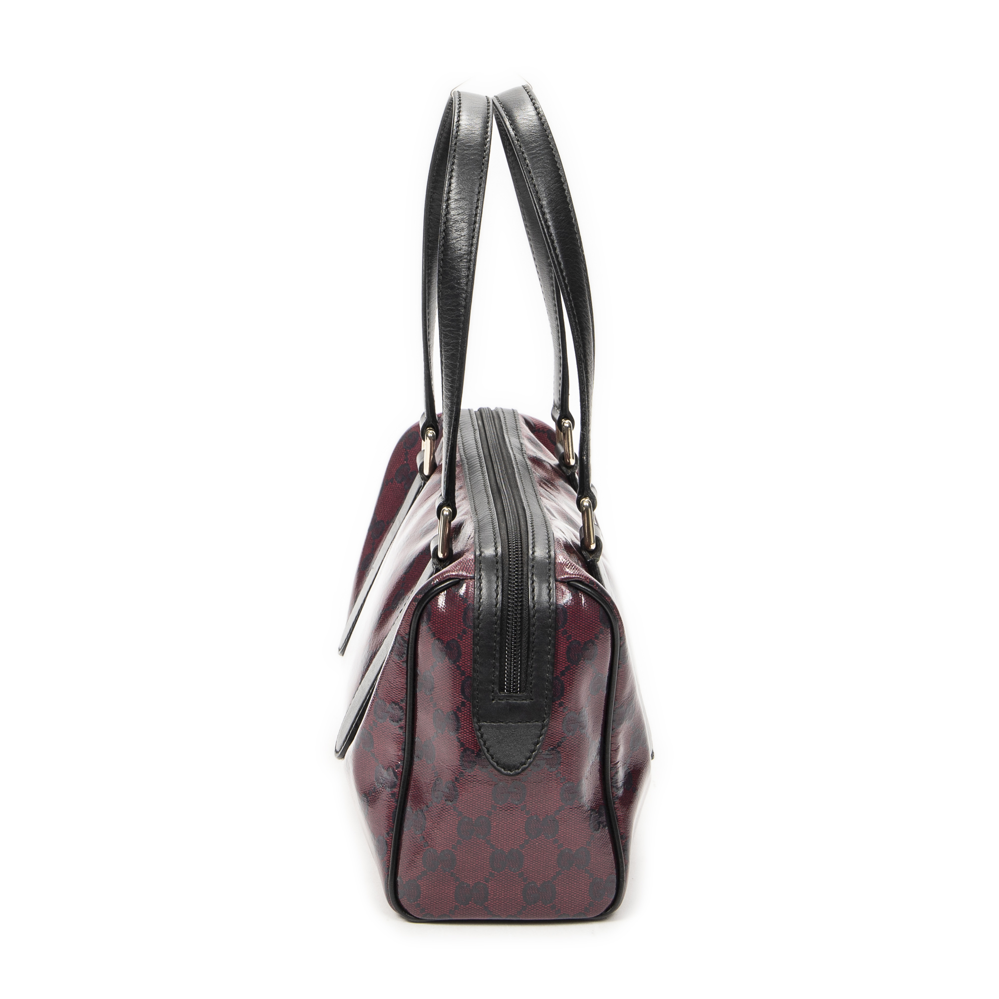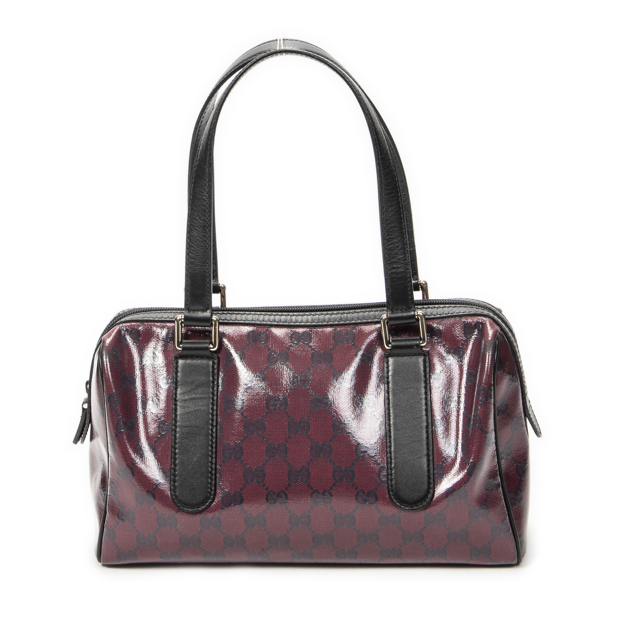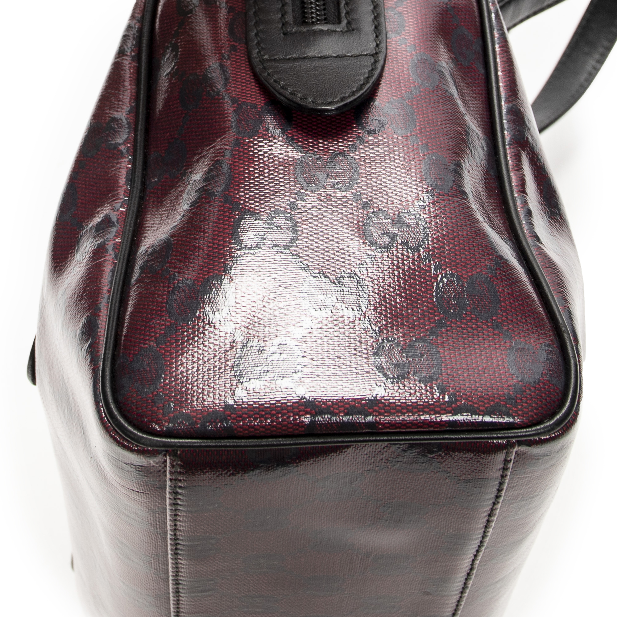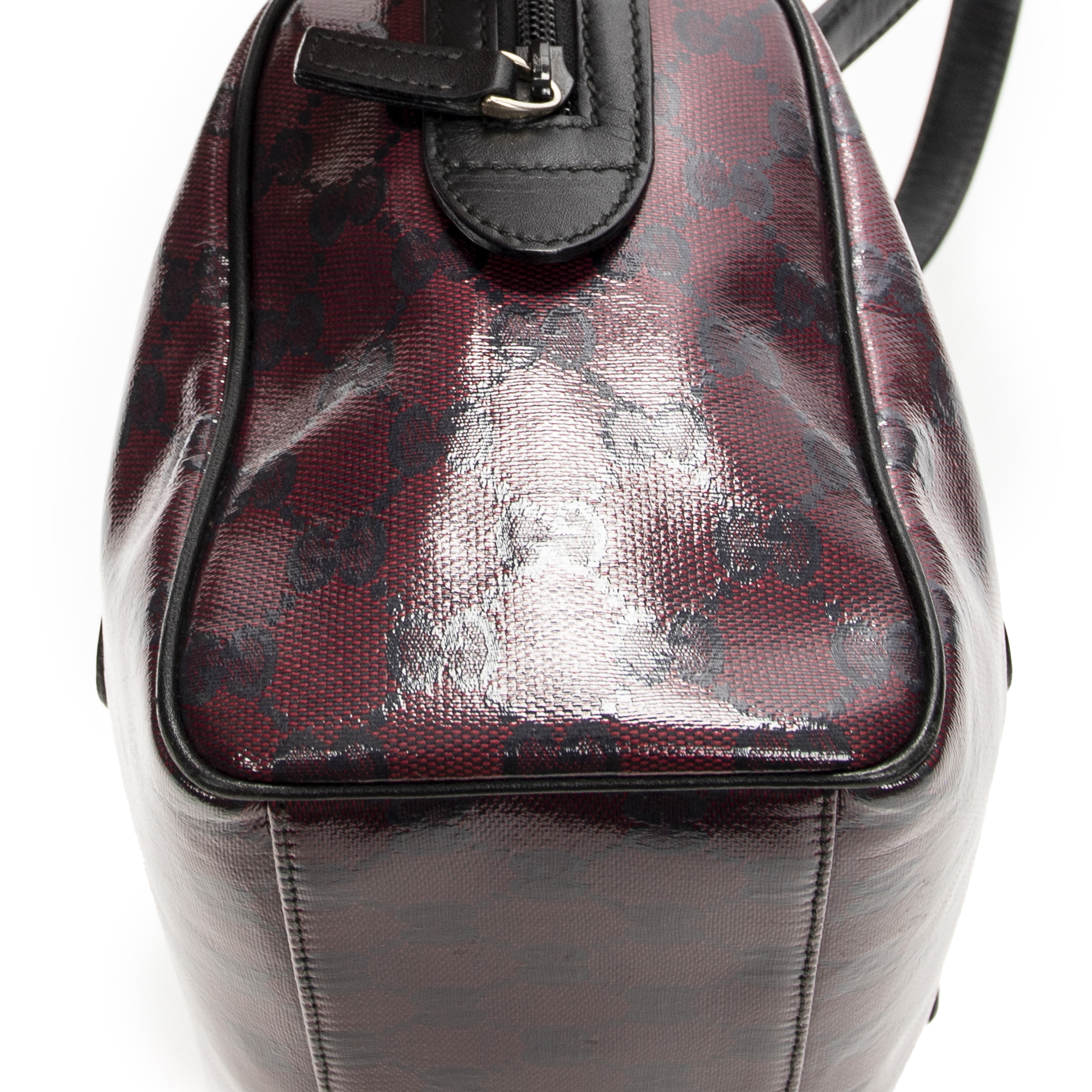 Gucci Shoulder Bag Small Shoulder Boston in Red/Black Crystal Coated Canvas and Gold hardware. The product is in Excellent Condition (A).
