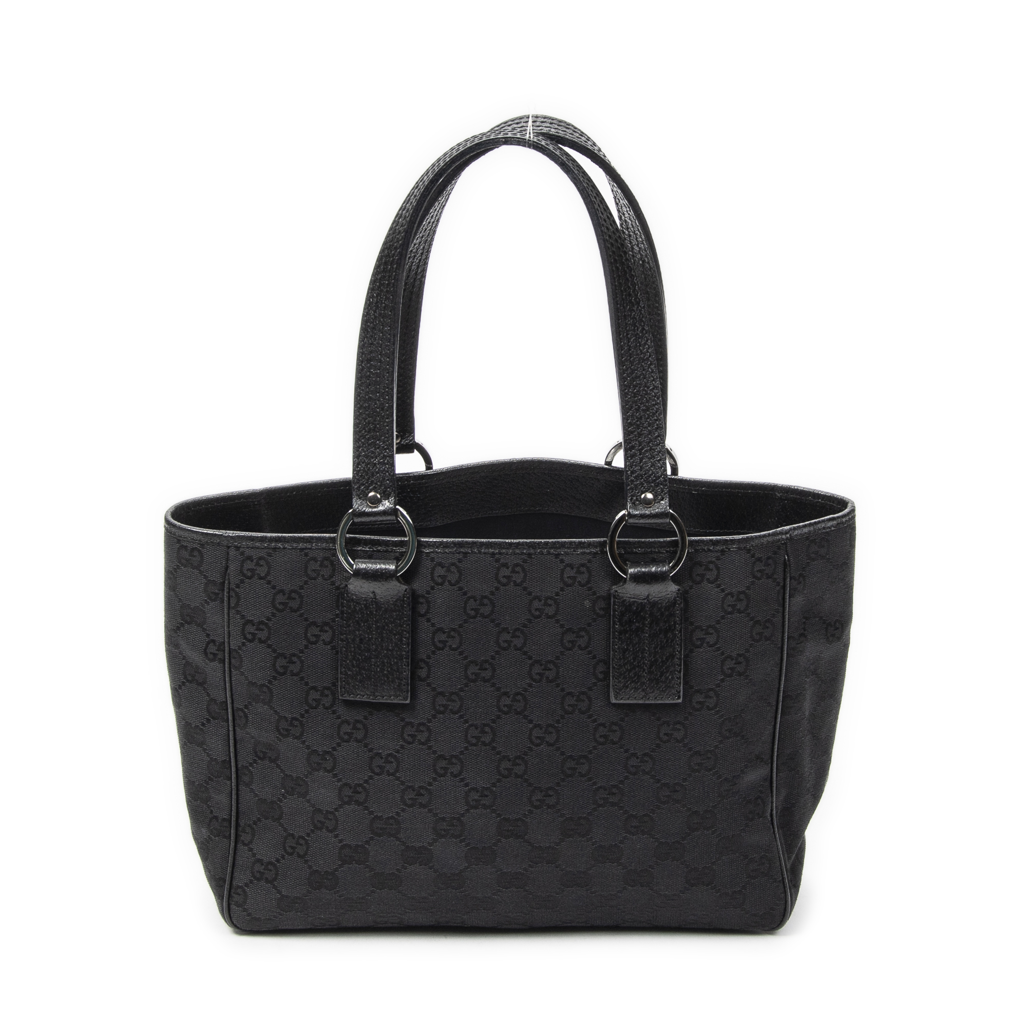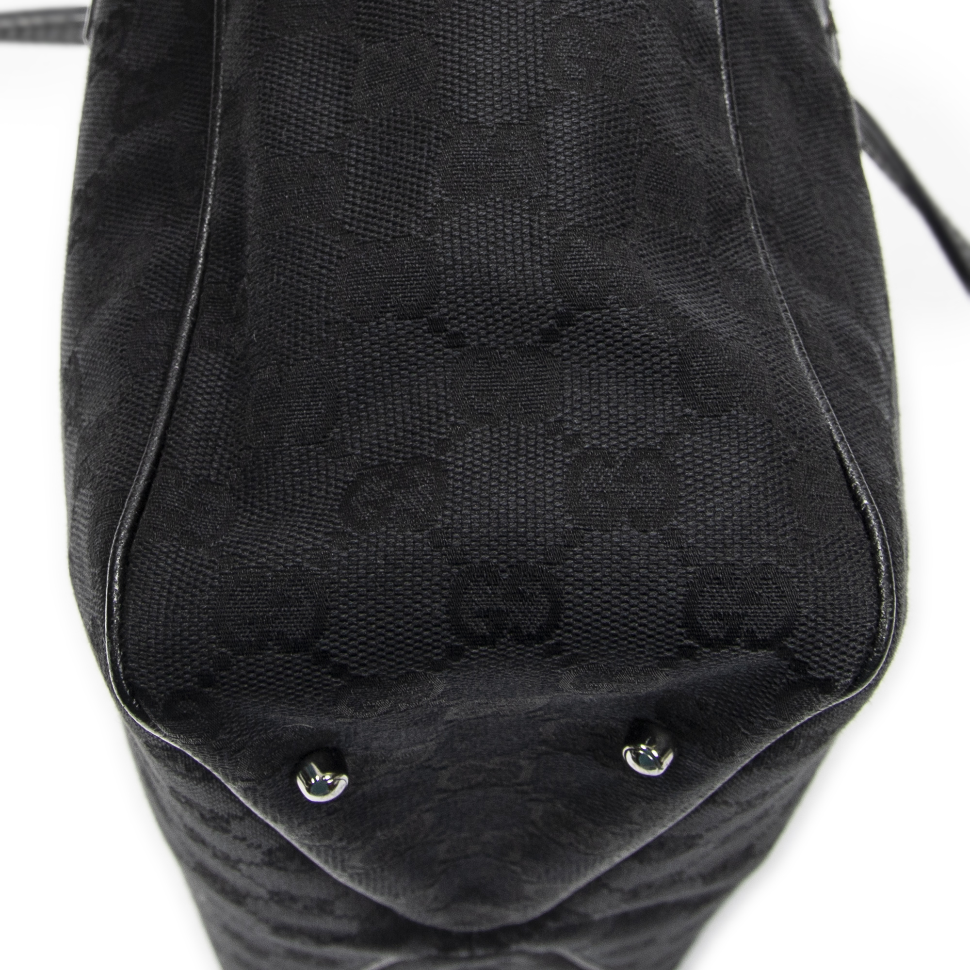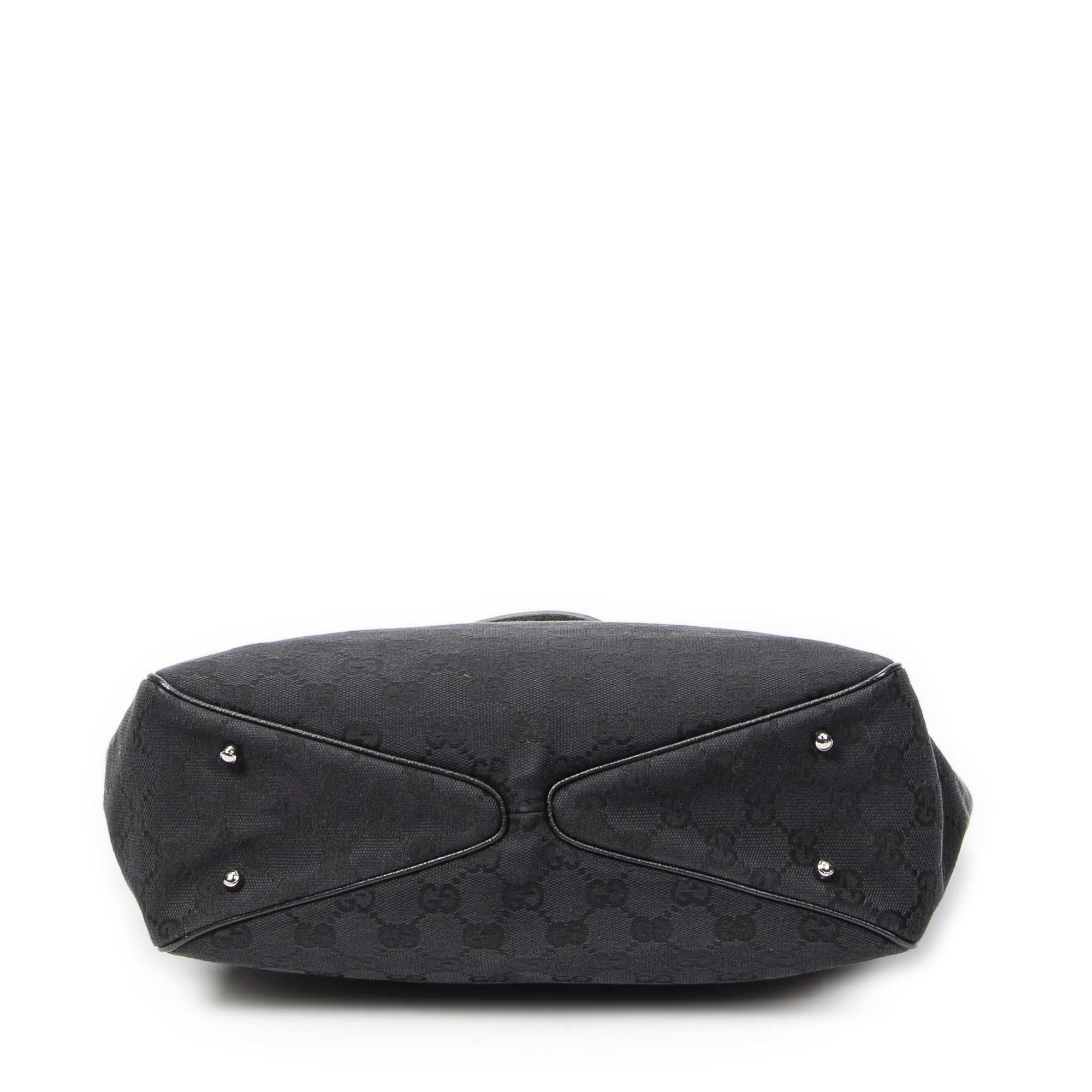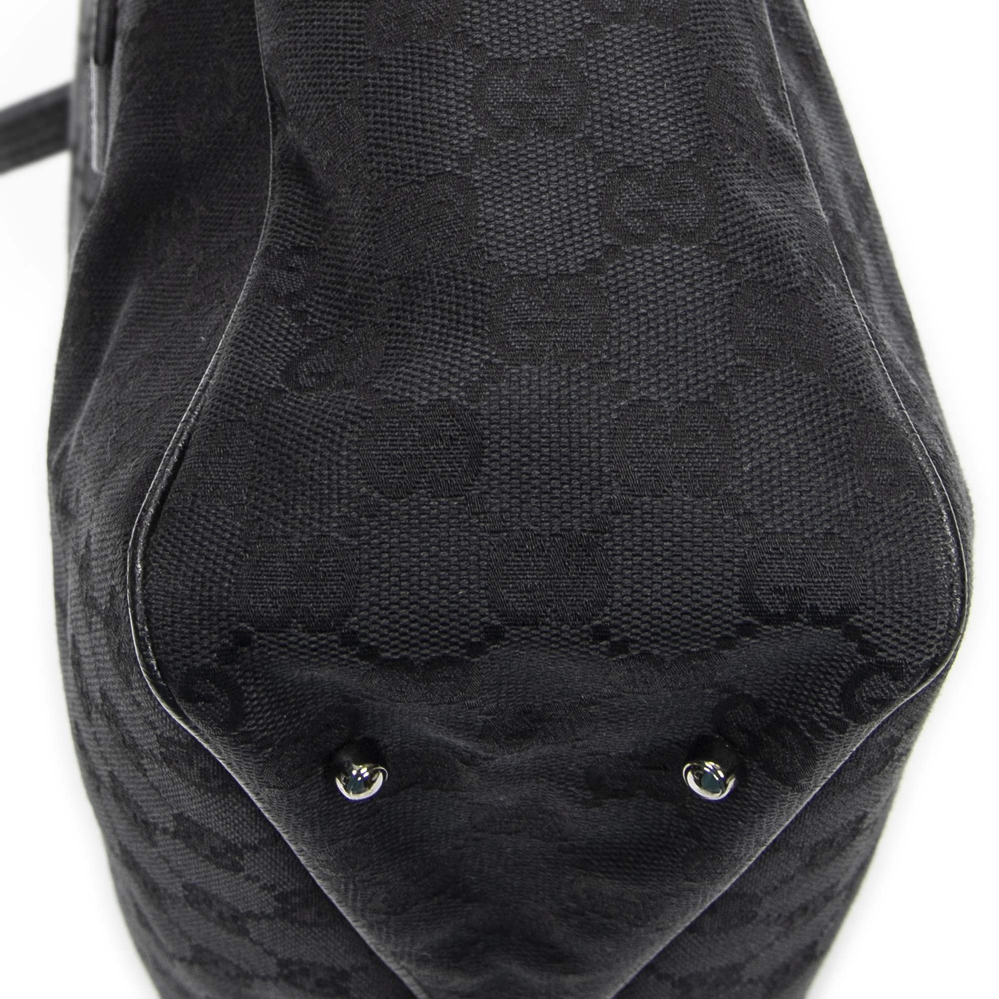 Gucci Shoulder Bag Small Shoulder Tote in Black Monogrammed Canvas and Silver hardware. The product is in Excellent Condition (A).